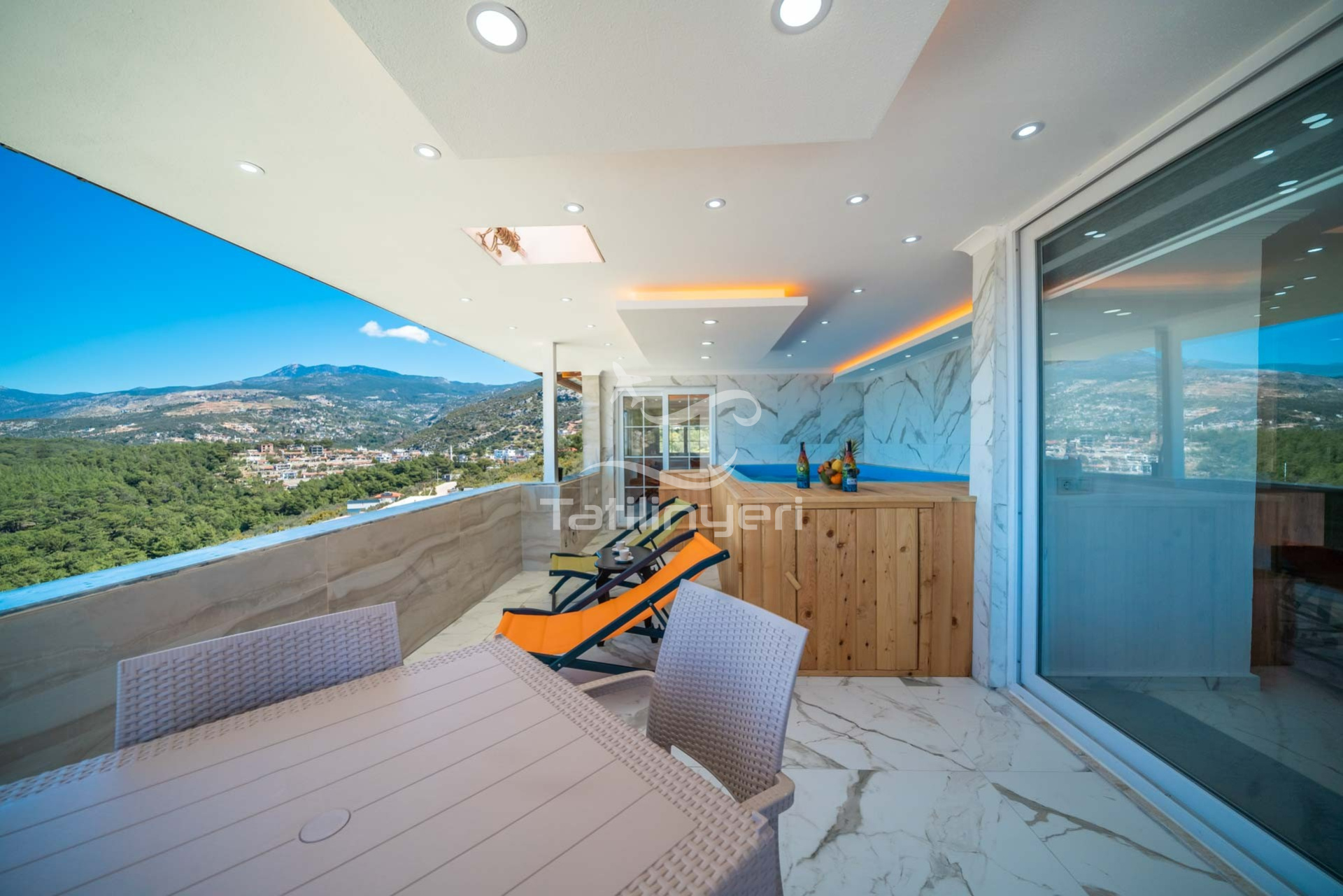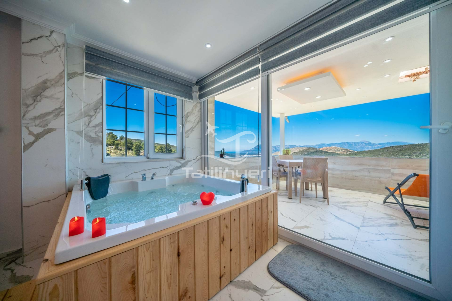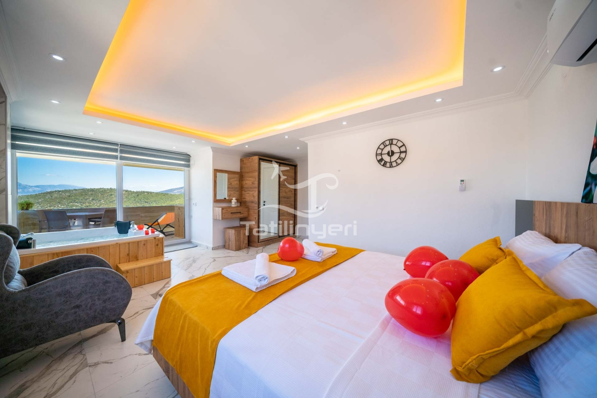 Suit Diana, Antalya Kaş Kalkan Akbel mevkisinde yer alan 4 kişi kapasiteli doğa manzaralı özel jakuzili havuzu ile şık bir suittir. Uzaktan Patara Plajı manzarasına sahiptir. Amerikan mutfağa sahip olan suitimiz de 2 yatak odası mevcut olup toplam 3 banyosu bulunmaktadır. Suitimizin ebeveyn yatak odasında jakuzide yer almaktadır.