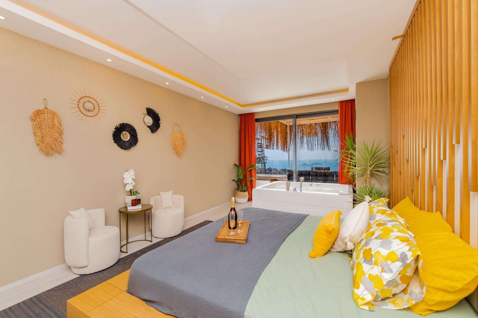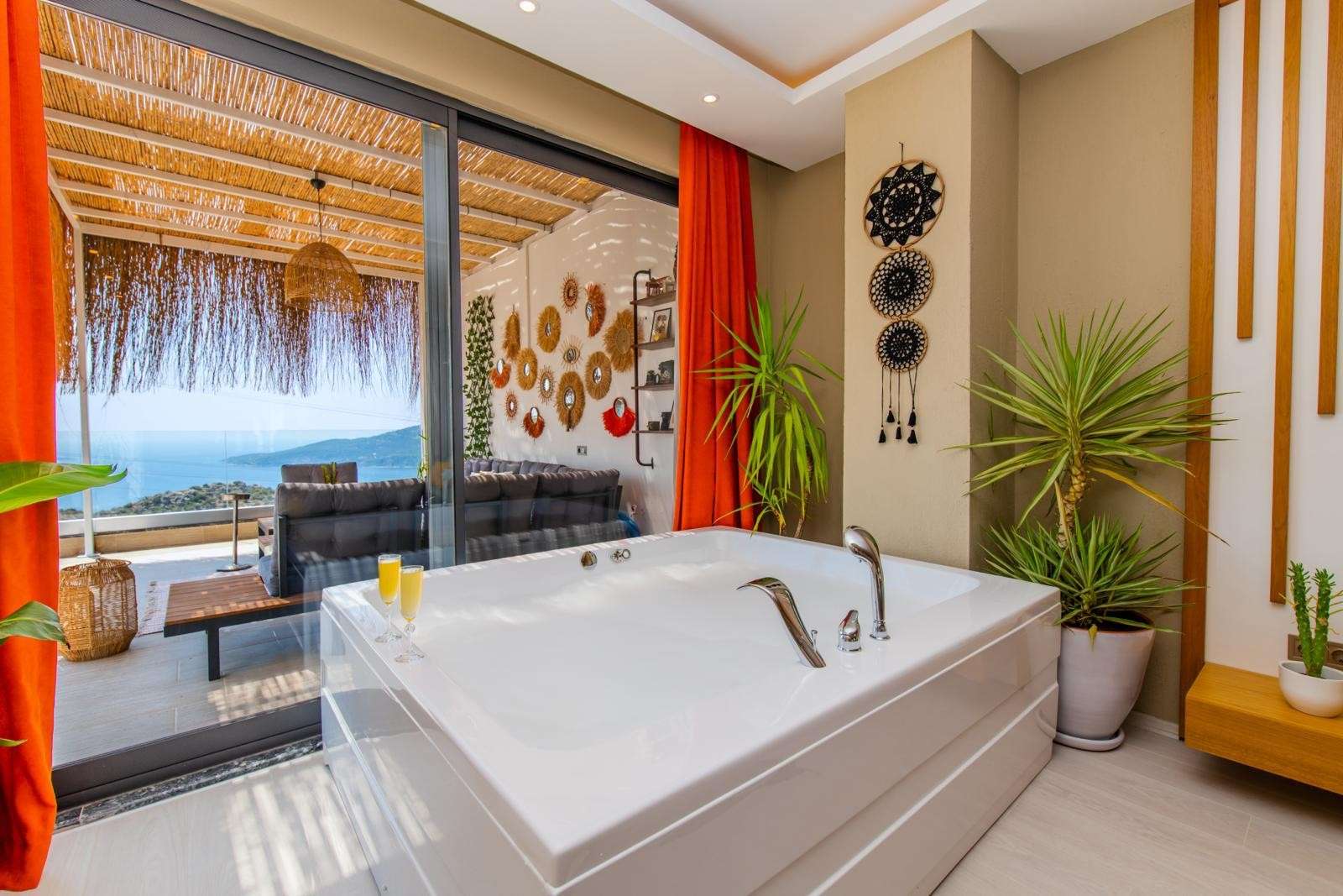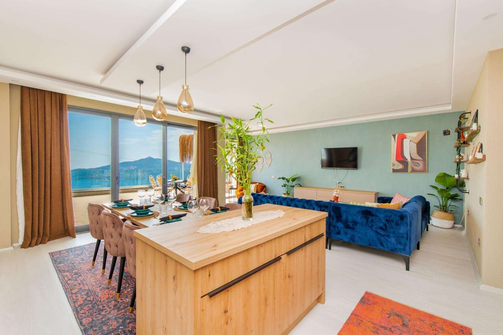 Kalkan Kördere mevkiinde konumlanan, serinleme havuzu bulunan şirin bir dairemizdir. Merkezi konumda bulunmasıyla araçsız tatil planı yapan ve tamamen geziye yönelen misafirlerimiz için oldukça uygun bir daire seçeneğimizdir. Misafirlerimiz günlük ihtiyaçlarını da kolaylıkla sağlayabilirler. Kalkan Kördere mevkiinde yer alan villamız, merkeze yakın bir konumda bulunmaktadır. Dünyaca ünlü Kaputaş Plajı'na yaklaşık 10-15 dk mesafededir. Gece hayatına ve şehir hayatına yakın konumda olmasıyla ön plana çıkmaktadır. Dairemiz tek yatak odalı olup, içerisinde çift kişilik yatak, banyo, jakuzi ve klima bulunmaktadır. Salon içerisinde ise mutfak, klima, televizyon ve oturma grubu yer almaktadır.