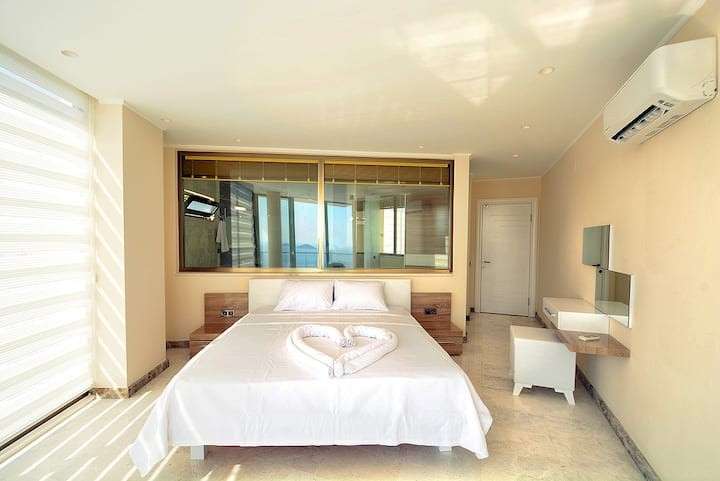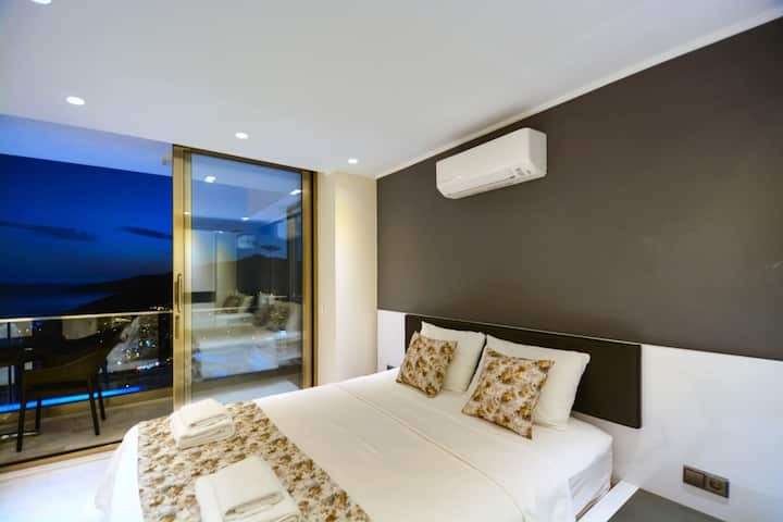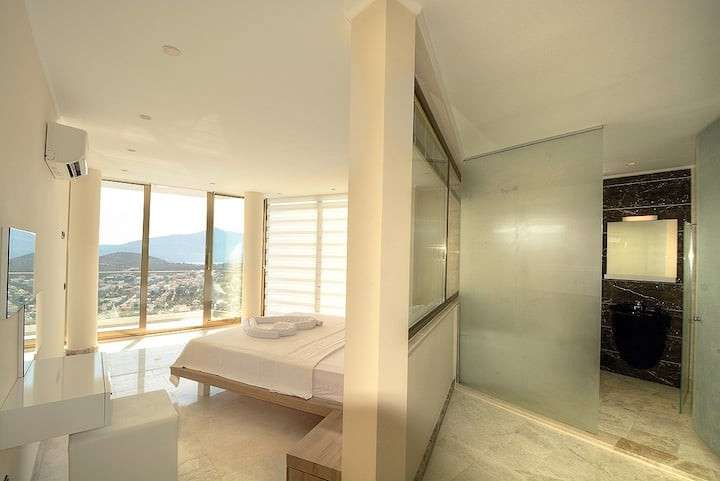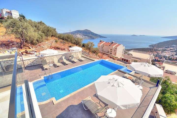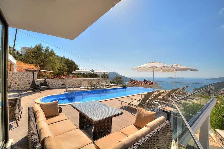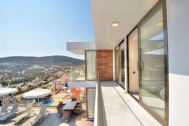 Kalkan, da merkezi konumda bulunan deniz manzarasina sahip 4 yatak odali lüks ve konforlu dekore edilmis Villa Ahıska 8 kisiye kadar konaklama imkani saglamaktadir. Villa Kalkan merkezde market ve restoranta yürüme mesafesindedir ve denize yakin mesafesindedir. İhtiyacınız olan her şeyin mevcut olduğu Villa Ahıska'da sizlere sadece sevdiklerinizle tatilin tadını çıkarmak kalıyor.