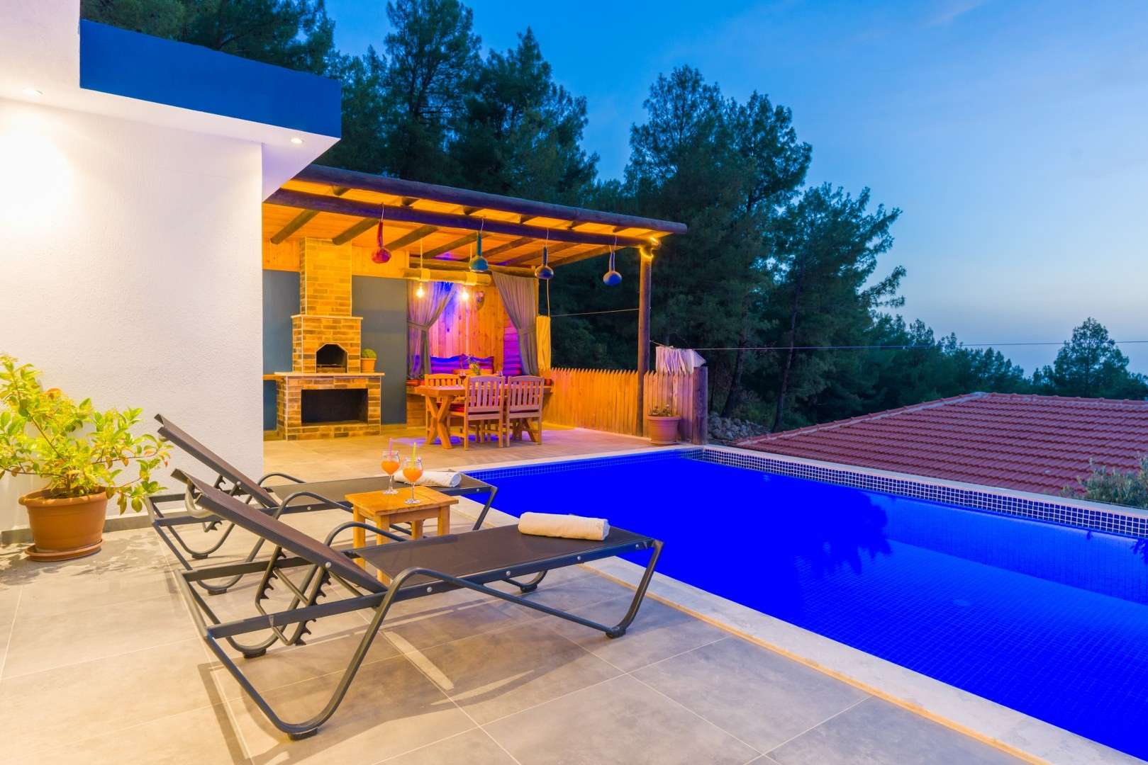 Villa Baha 1 Kalkan İslamlarda eşsiz doğa manzarasına sahiptir. 1 yatak odalı 2 kişi konaklama kapasitelidir. İç ve bahçe tasarımıyla oldukça konforludur. Korunaklı havuz terası ile muhafazakar balayı çiftleri için oldukça idealdir. Yatak odasında jakuzi yer almaktadır. Balayı çiftleri için muhafazakar jakuzili kiralık balayı villasıdır.