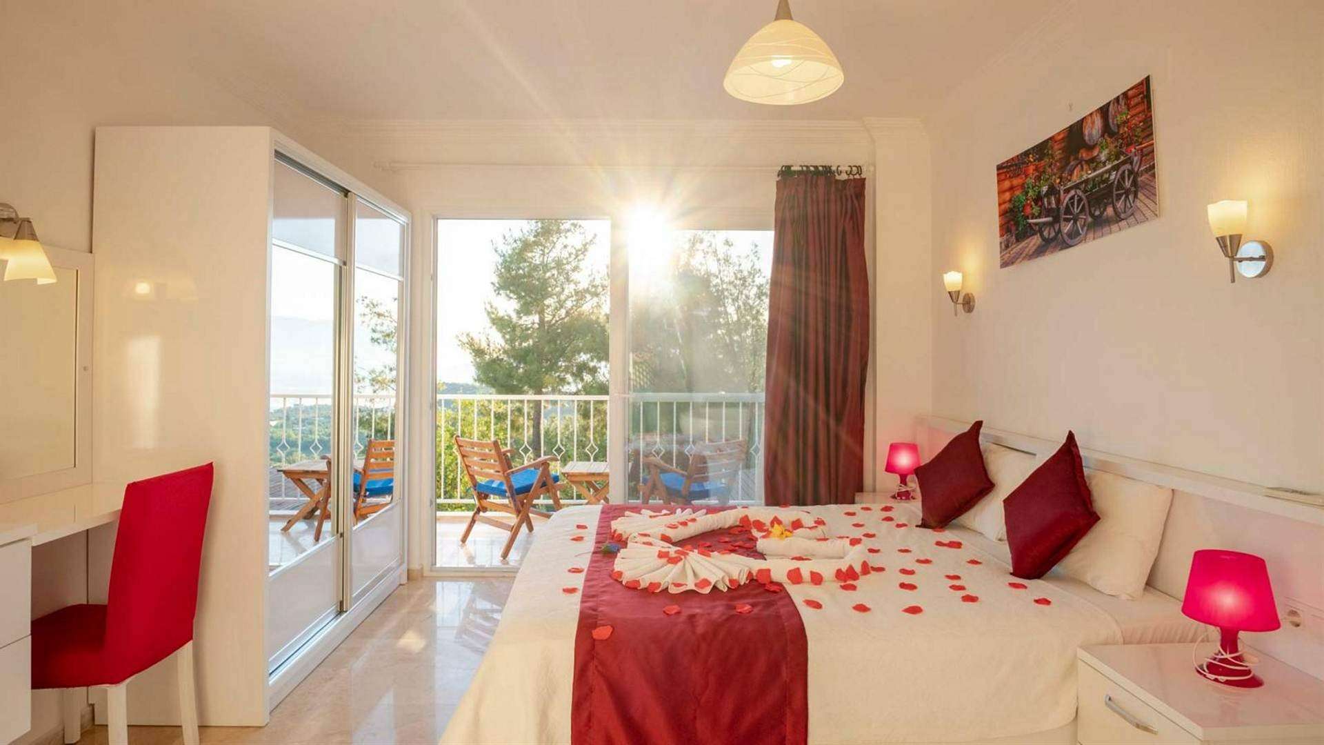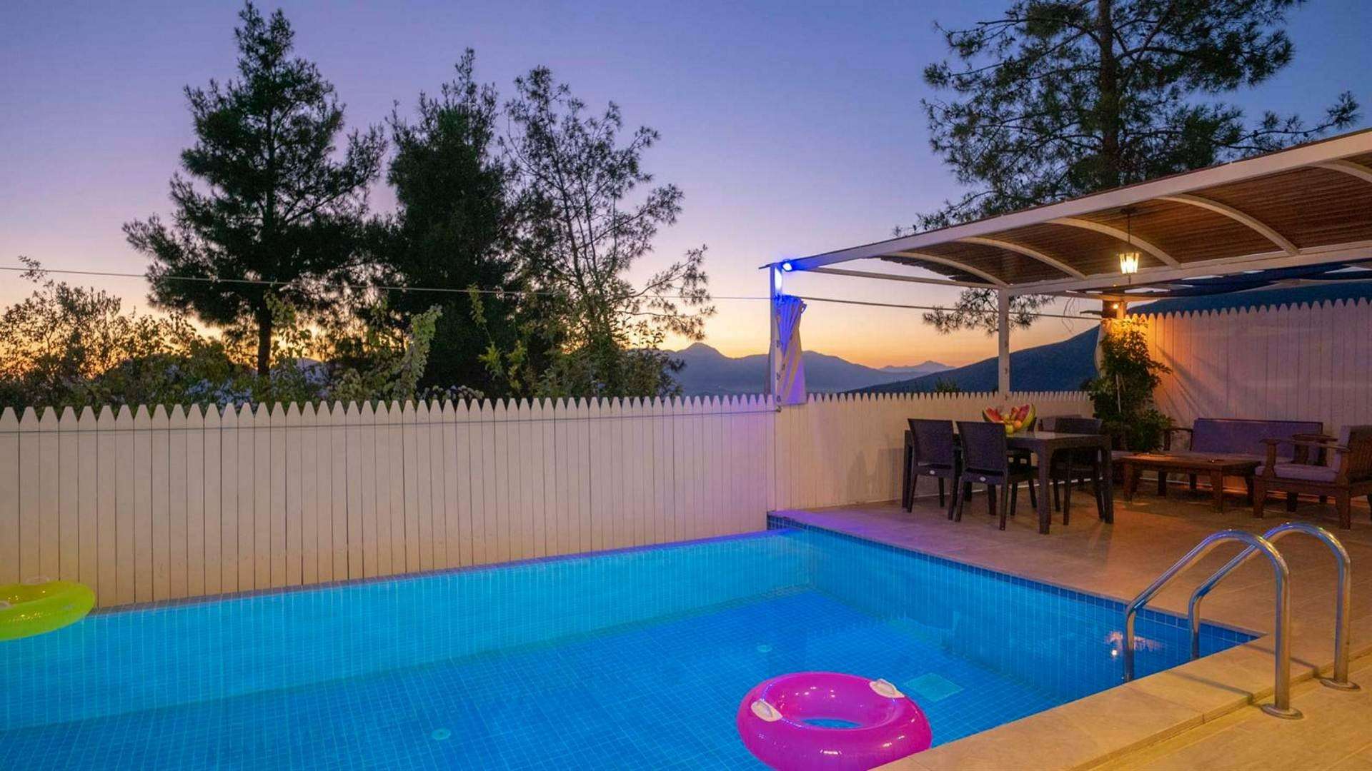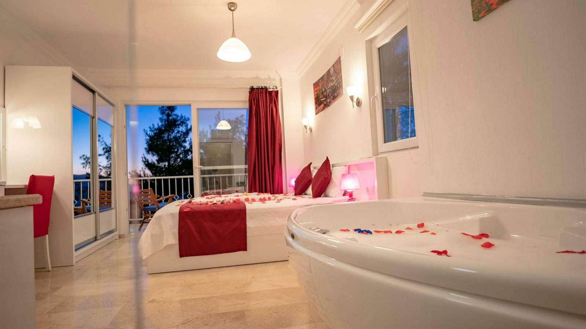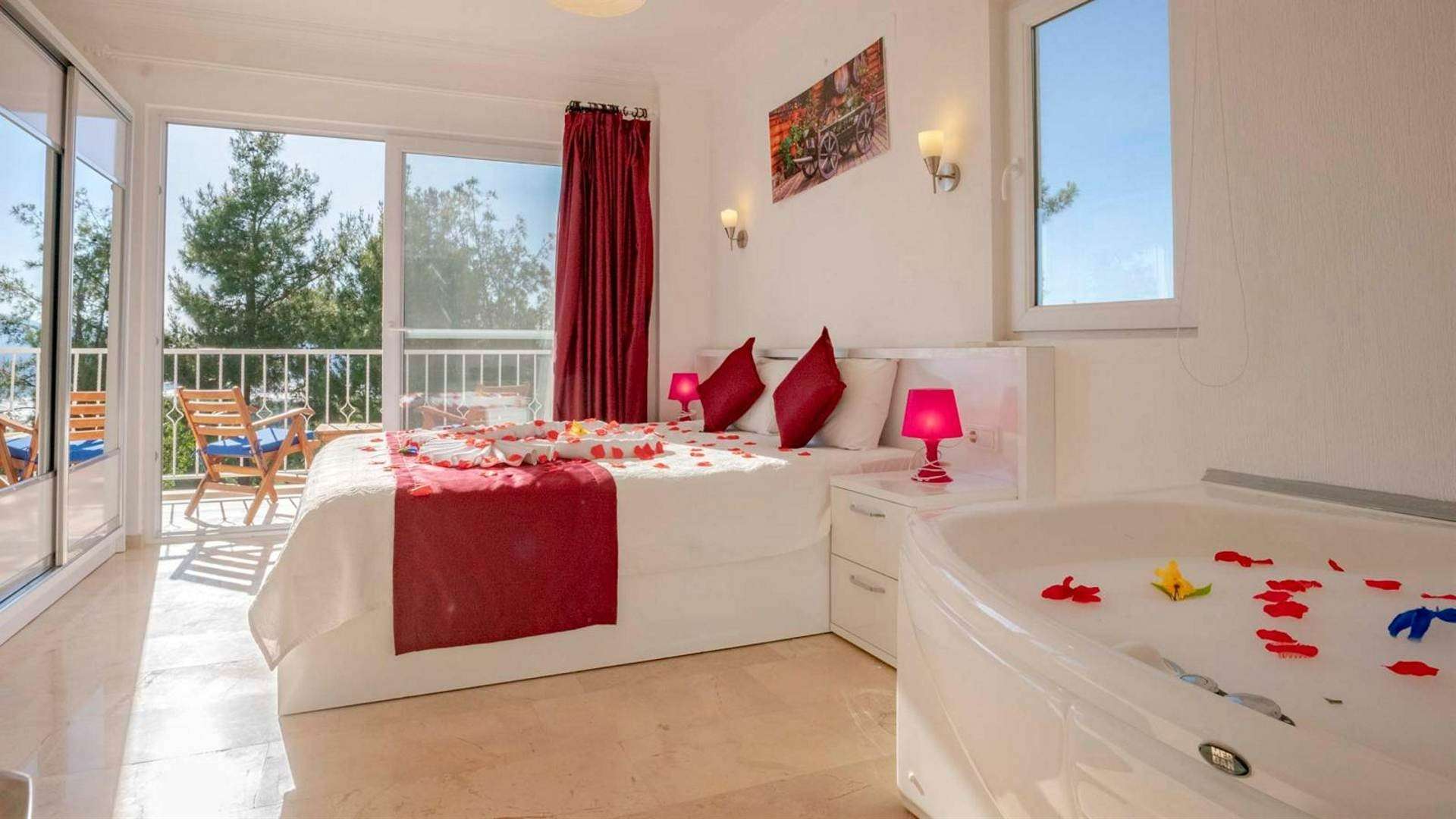 Kalkan Üzümlü mevkiinde bulunan kiralık tatil villası,doğa içinde sessiz sakin bir konumda tatil isteyen çiftlerimiz için oldukça uygun bir seçenektir. Balayı Villası ve Muhafazakar Aile villalar kategorisinde yer alan villamız, 2 yatak odası ile 4 kişilik konaklama kapasitesine sahiptir. Havuzu korunaklı ve bahçesi dışarıdan görünmeyen Villa Balım  mahremiyete önem veren çiftlerimiz için huzur dolu bir tatil fırsatı sunuyor. Ayrıca villamızın yatak odasında tüm yılın vermiş olduğu yorgunluğu atabileceğiniz jakuzi konforu da sağlanmaktadır.