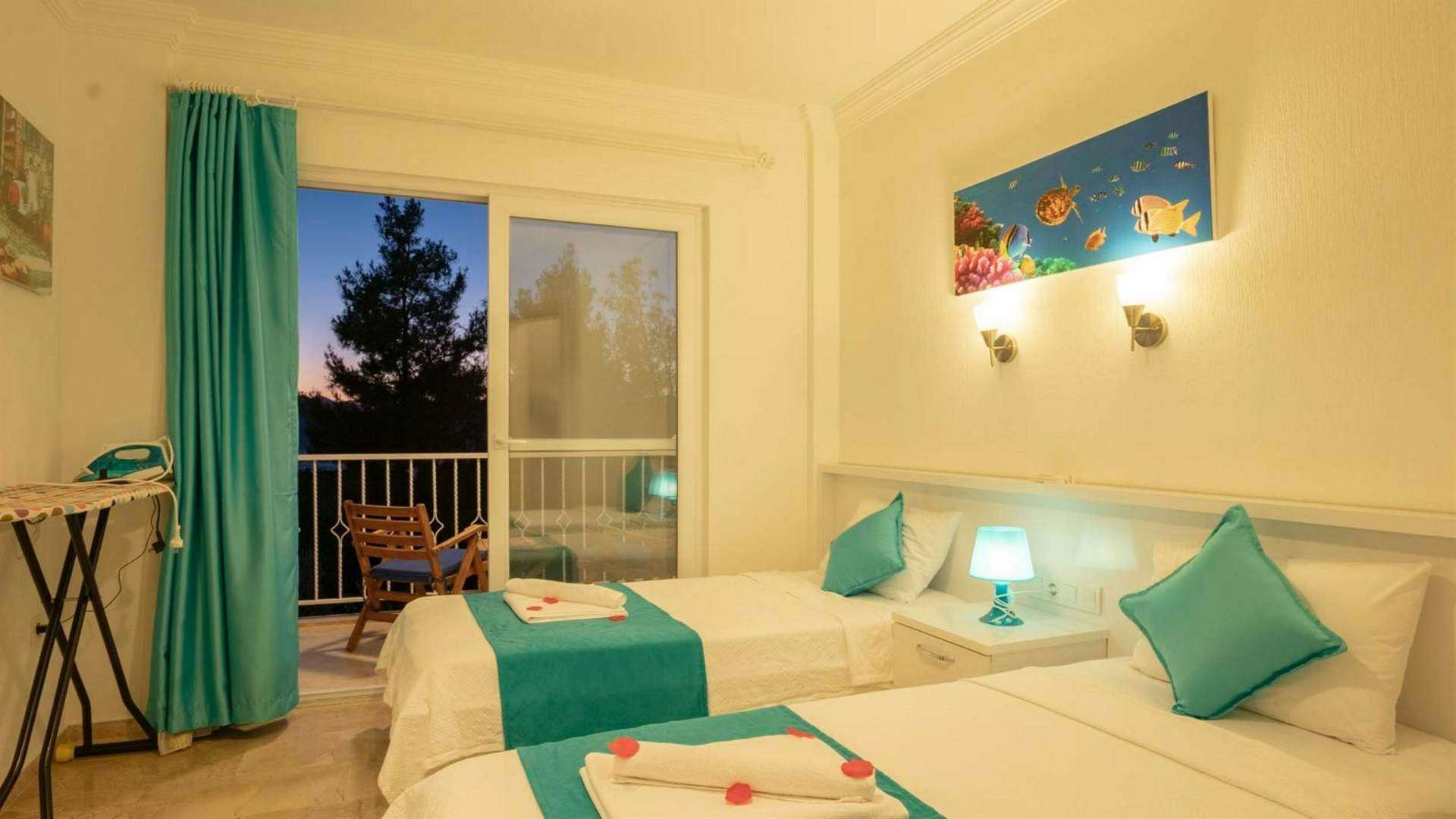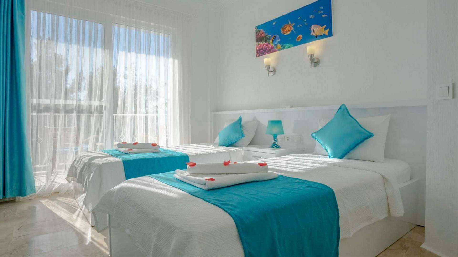 2.Yatak odası; 2 adet tek kişilik yatak, elbise dolabı, makyaj masası, komodin, klima, banyo ve tuvalet bulunmaktadır.