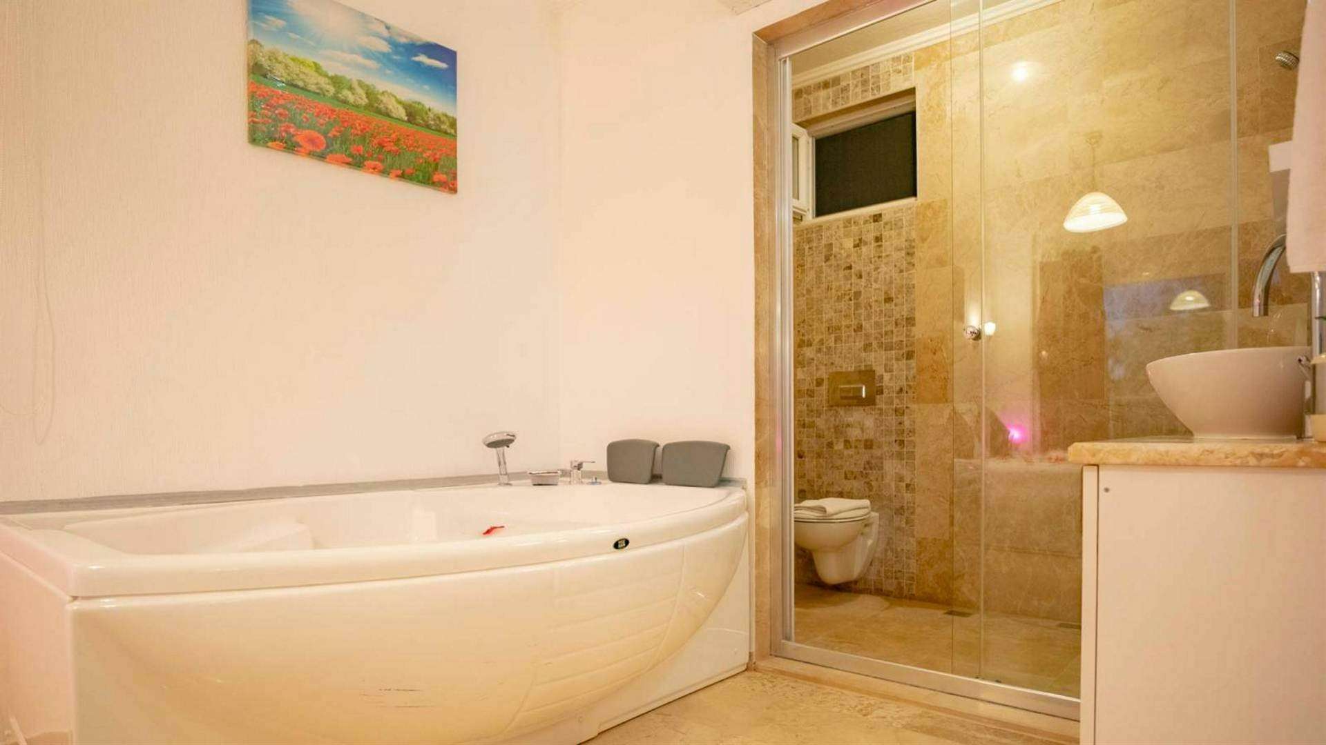 1.Yatak odası; 1 adet çift kişilik yatak, elbise dolabı, makyaj masası, komodin, klima, Jakuzi, banyo ve tuvalet bulunmaktadır.