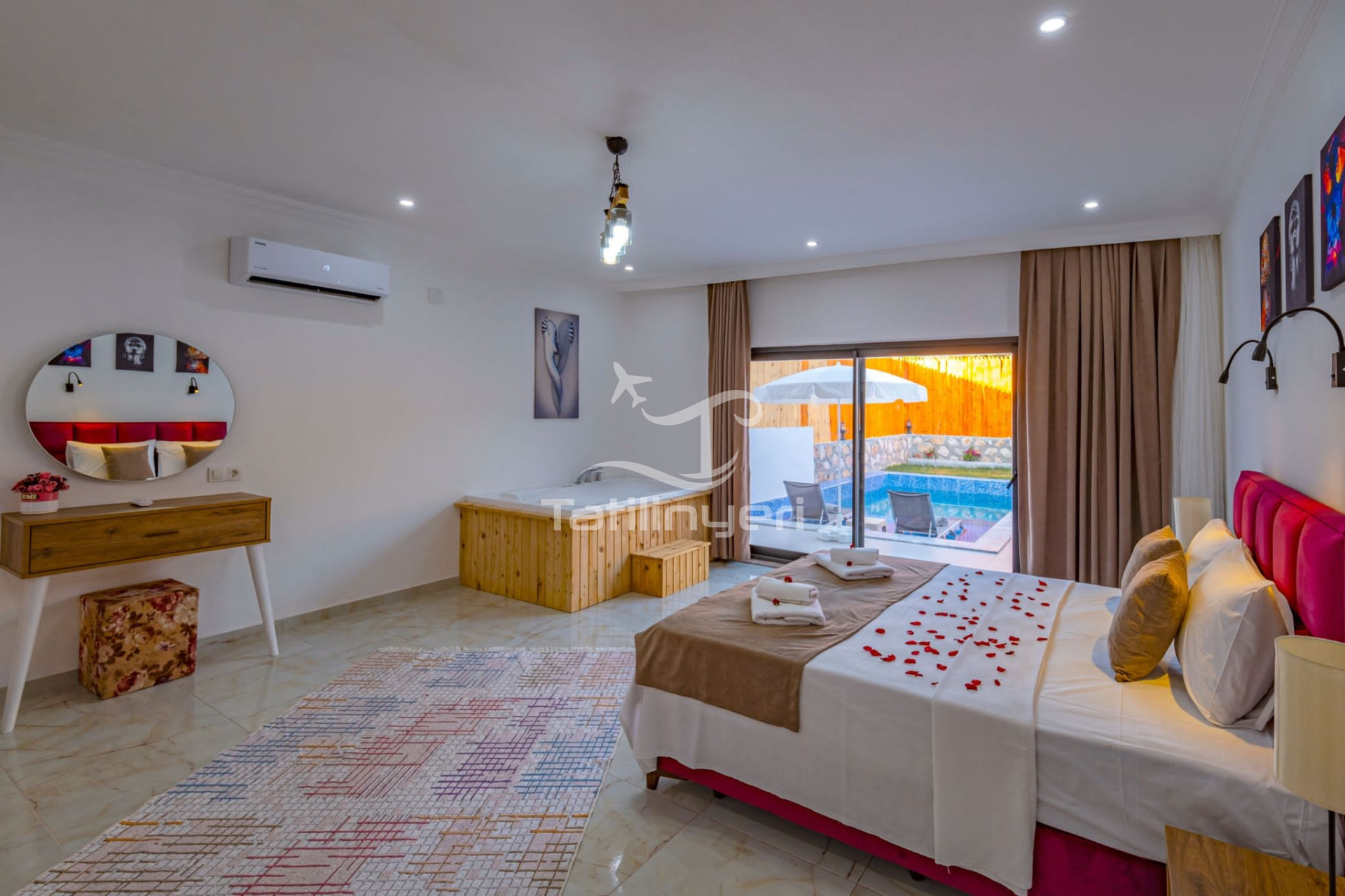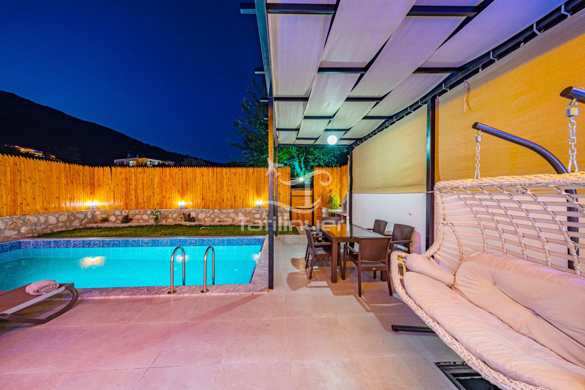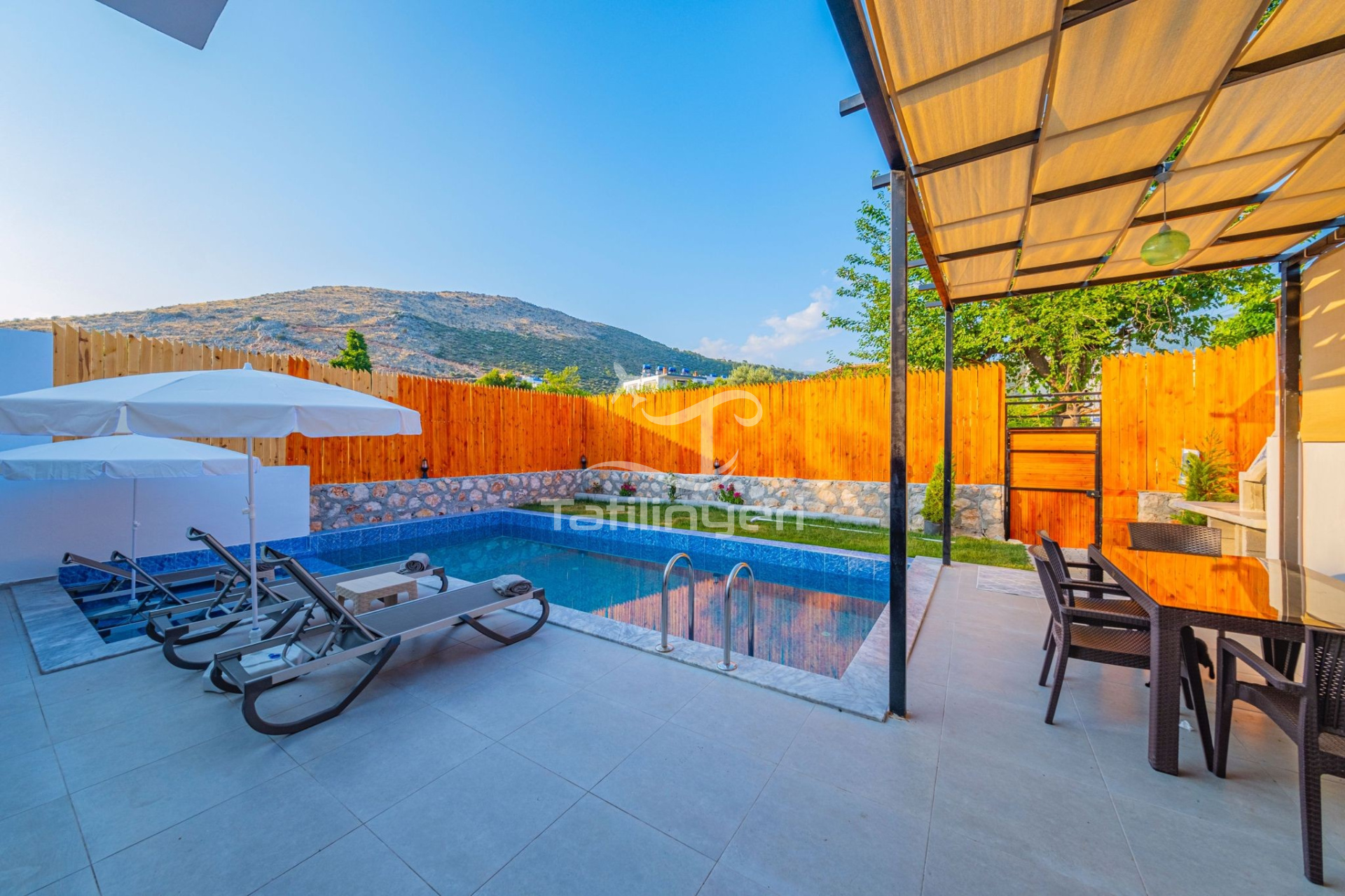 Villa Bilgiseven, Kalkan Yeşilköy bölgesinde yer alan özel bir havuza sahip 2 yatak odalı villa olarak öne çıkmaktadır. Bu villamızda 4 kişi konaklayabilir ve mahremiyete önem verenler için mükemmel bir seçenek sunar. Doğayla iç içe olan Villa Bilgiseven, havuz ve bahçe alanıyla da muhafazakar tatil tercihlerine hitap etmektedir. Ayrıca, rahat ve modern tasarımının yanı sıra suit yatak odasında bir jakuzi bulunmaktadır.
