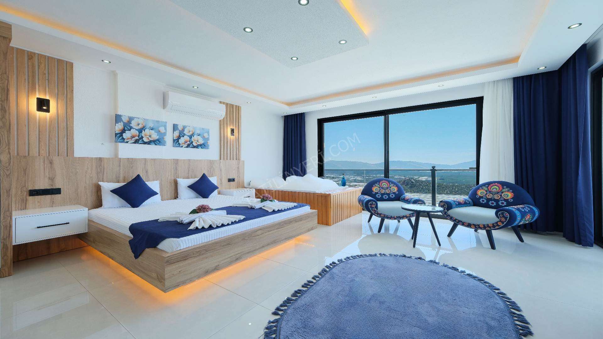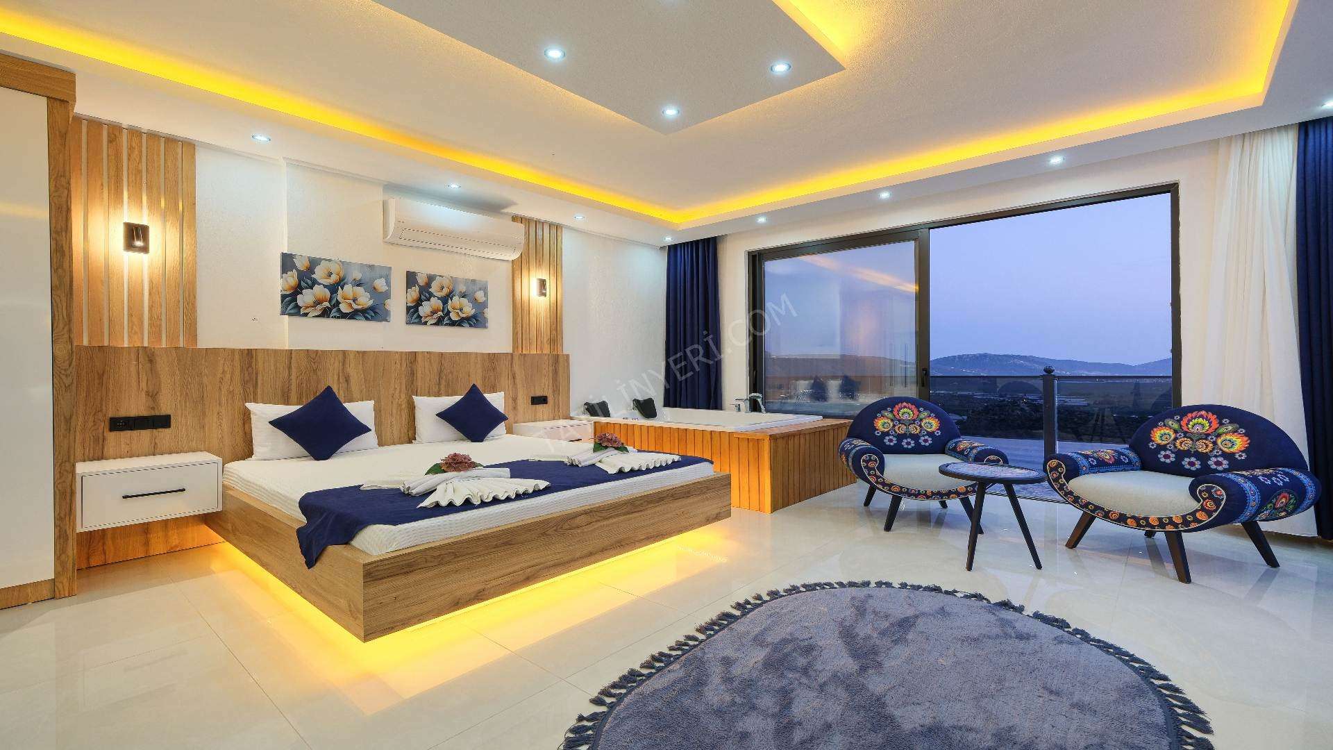 1. Yatak Odası; 1 adet çift kişilik yatak, jakuzi, elbise dolabı, makyaj masası, komodin, klima ve banyo-wc bulunmaktadır.