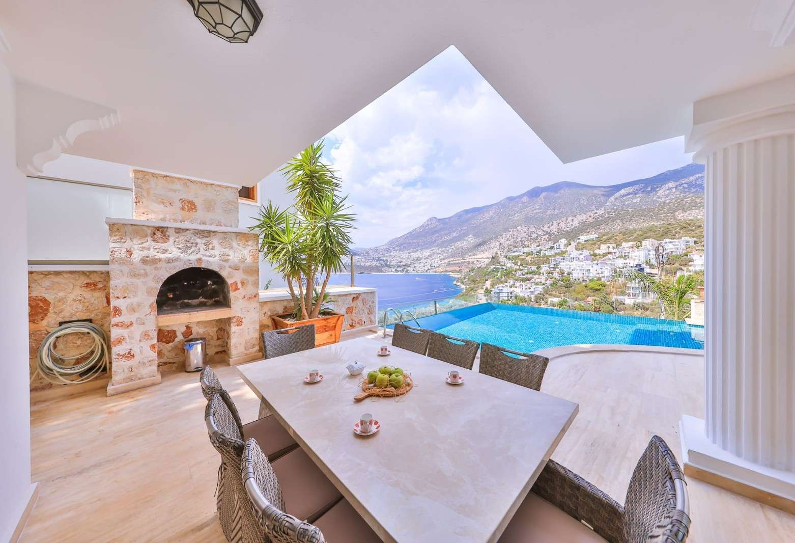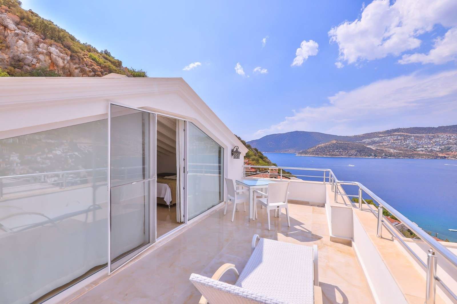 Villa Cool Sea, 5 yatak odası ile 10 kişi konaklama kapasitesine sahiptir. Her odasından eşsiz maviliğe sahip olan Kalkan deniz manzarasını görmektedir, ayrıca plaja 100 m mesafededir.