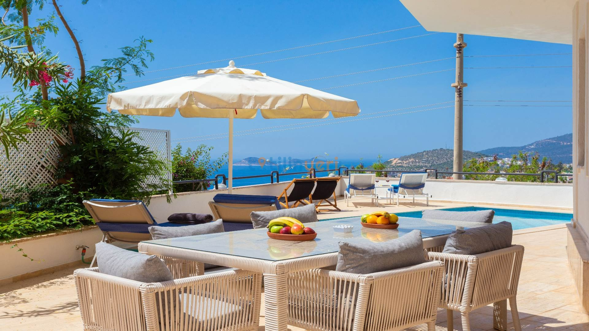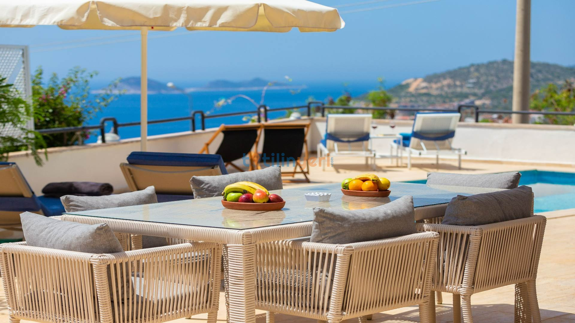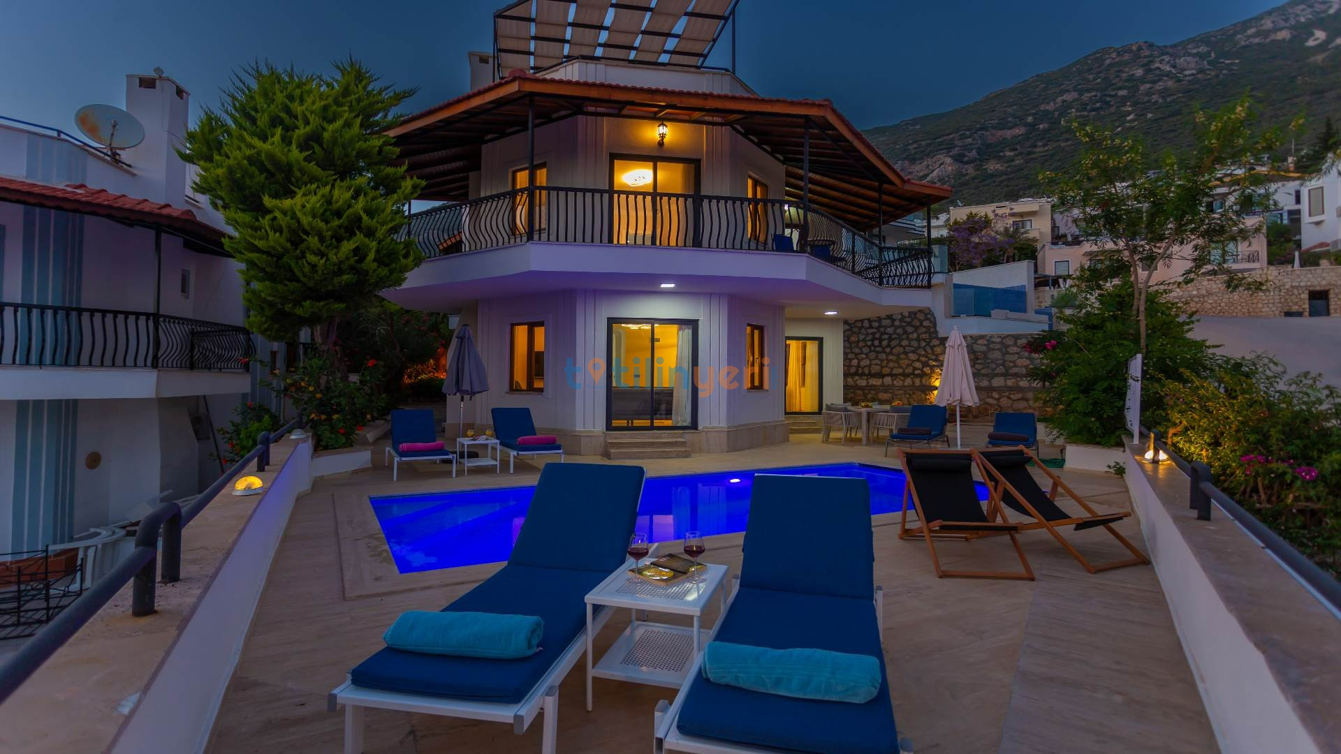 Kalkan Kızıltaş bölgesinde bulunan, muhteşem deniz ve şehir manzarası eşliğinde, özel yüzme havuzunun keyfini çıkarabileceğiniz 3 yatak odalı tatil villamız sizleri bekliyor.