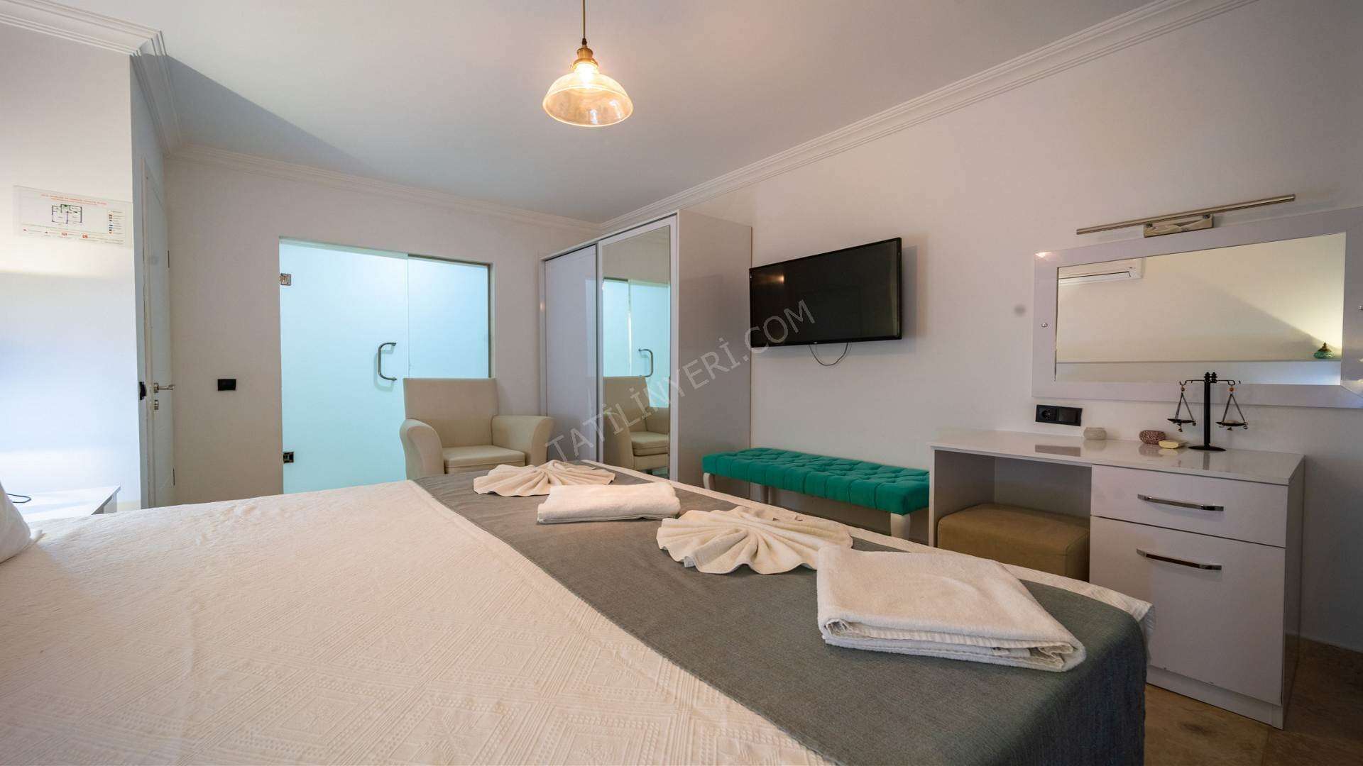 - Villanın kişi kapasitesi kadar temiz çarşaf ve yastık kılıfı kullanımınız için hazır bulundurulur