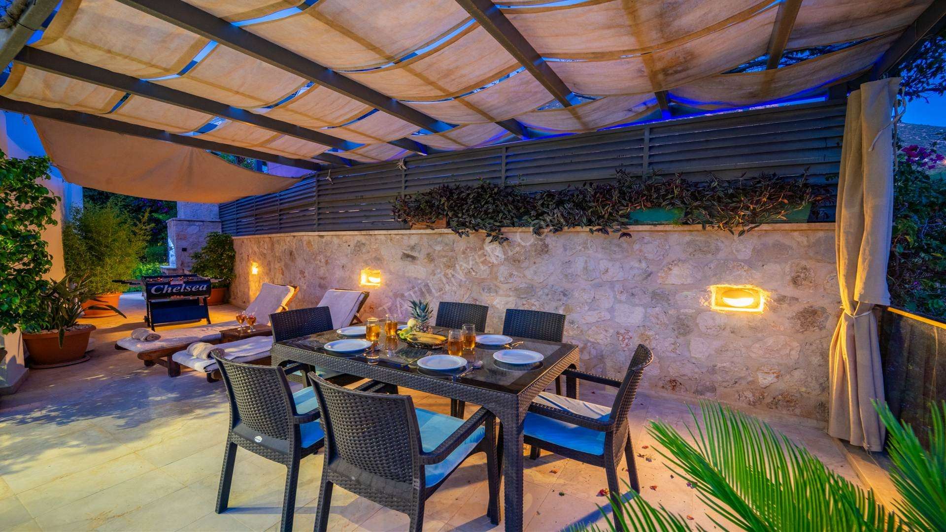 Her odasından, mutfak ve havuz terasından Kalkan deniz manzarası bulunmaktadır. Villa Melisa1 lüks ve konforunun yani sıra sessiz sakin bir bölgede bulunmaktadır, Geniş bir havuz alanı olan bu villamız geniş aileler ve arkadaş grupları için gayet ideal bir konaklama tercihidir imkanı sunmaktadır.