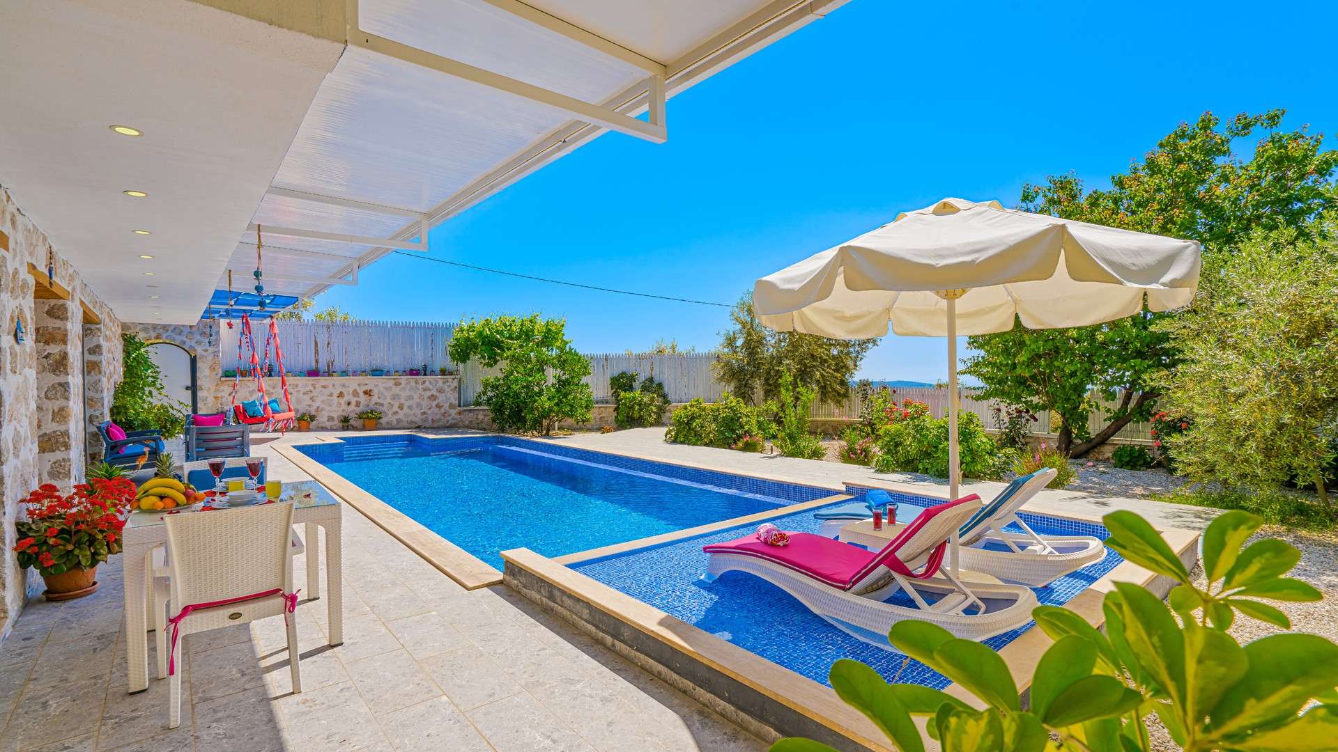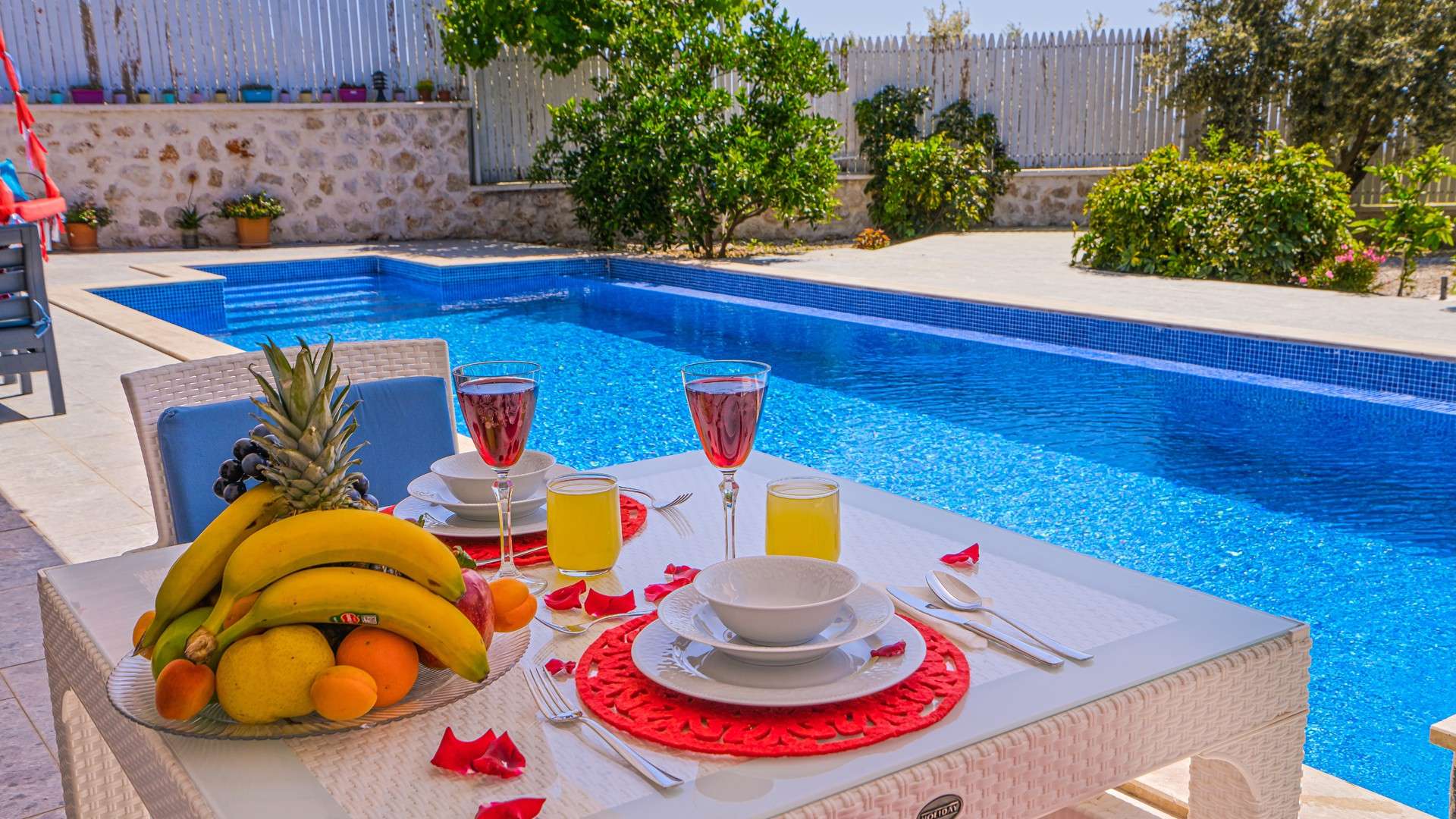 - Havuz ve bahçe bakımları her gün erken saatte görevli tarafından yapılır
