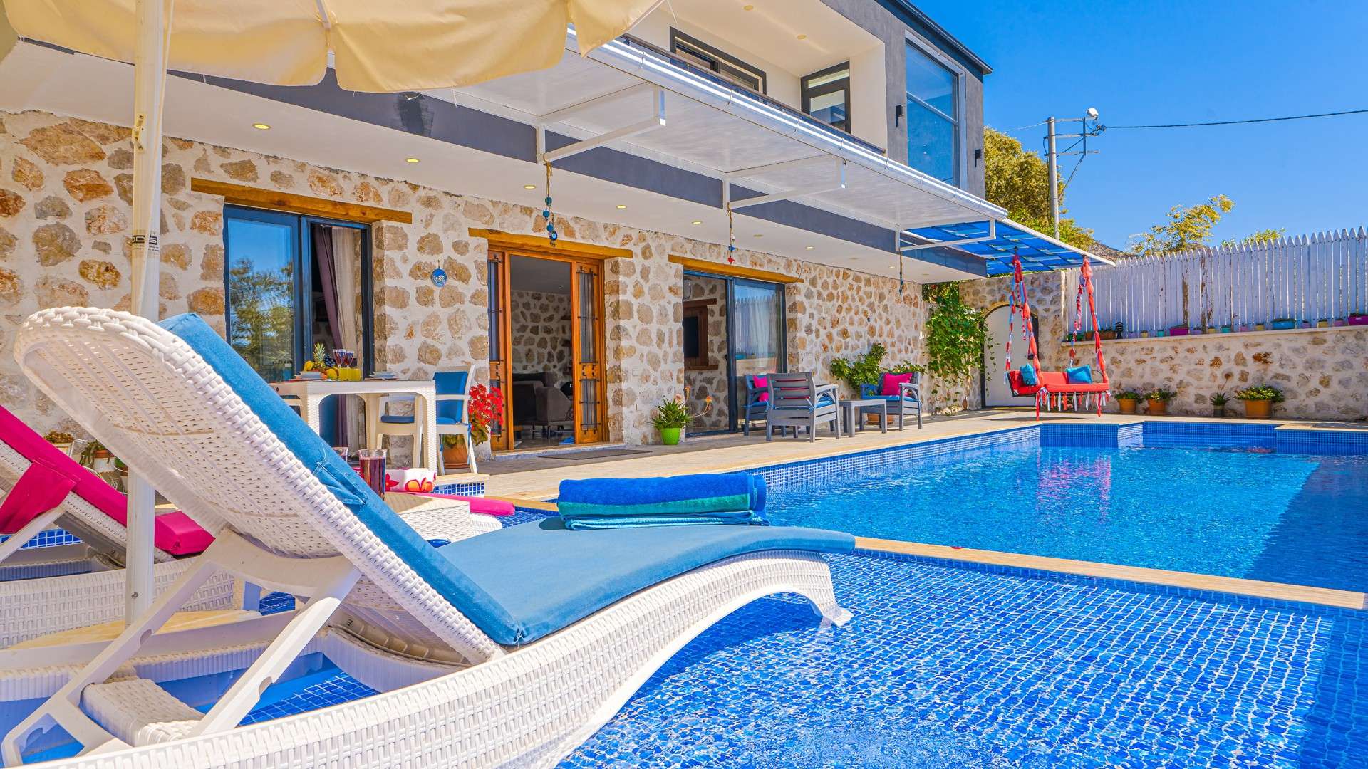 Kaş Kalkan'ın Üzümlü mevkiinde yer almaktadır.1 yatak odalı 2 kişilik konaklama kapasitesine sahiptir.Balayı çiftlerine ve çekirdek ailelere hitap etmektedir.4 mevsim tatilin tadını çıkarmanız adına Villa Ema bir adet kapalı ve ısıtmalı havuza sahiptir.Tüm yılın yorgunluğunu atabileceğiniz muhteşem doğası ile geniş bir çim alana sahiptir.Villa Ema siz değerli misafirlerimize unutulmaz bir tatil için kapılarını aralıyor..