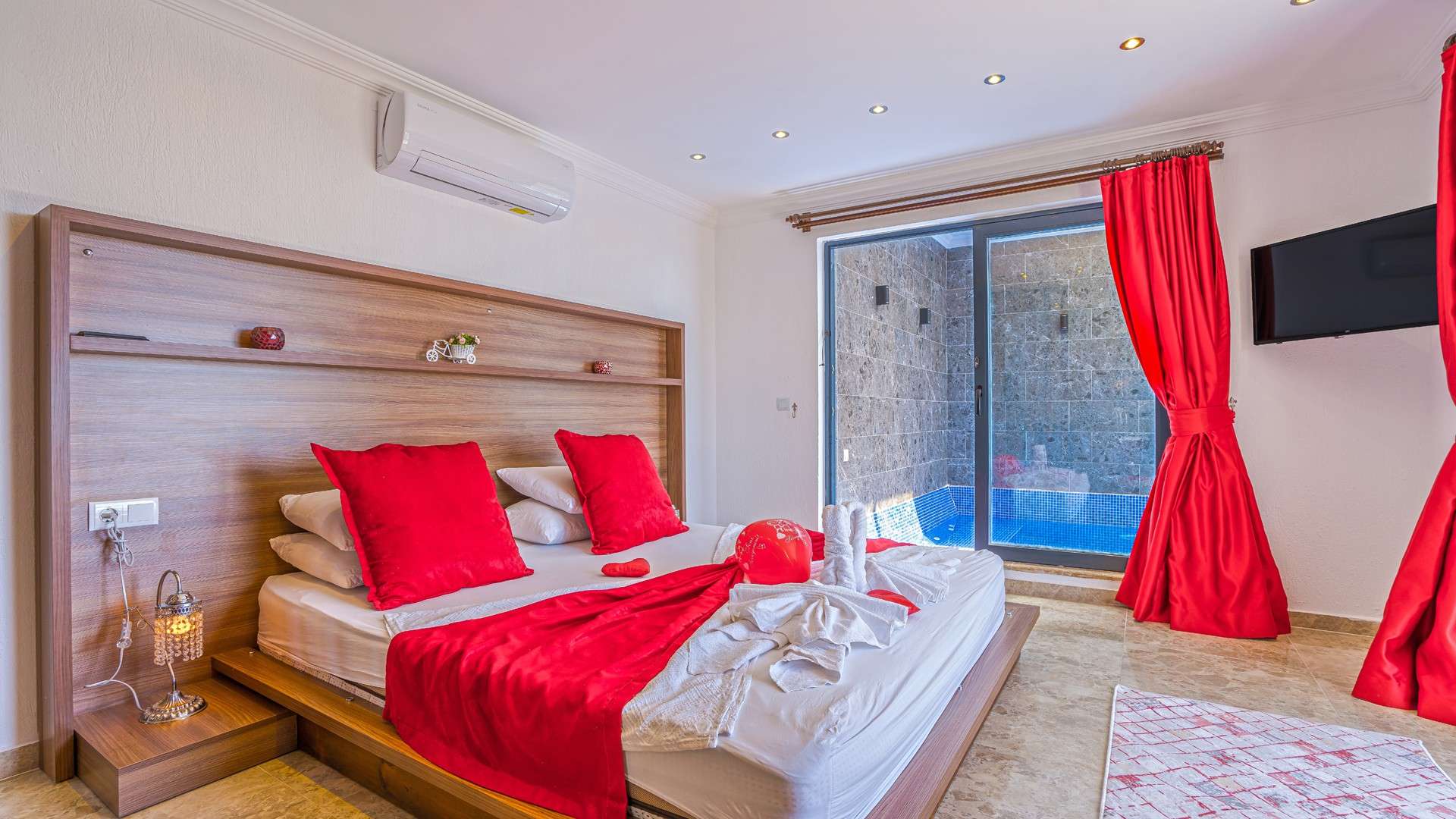 Not: Villamızın kapalı havuzu ısıtmalıdır. Kapalı havuz ısıtma gecelik 2000 TL ek ücret ile açılmaktadır. Talep eden misafirlerimizin rezervasyonuna en az 3 gün kala bilgi vermelerini rica ederiz.