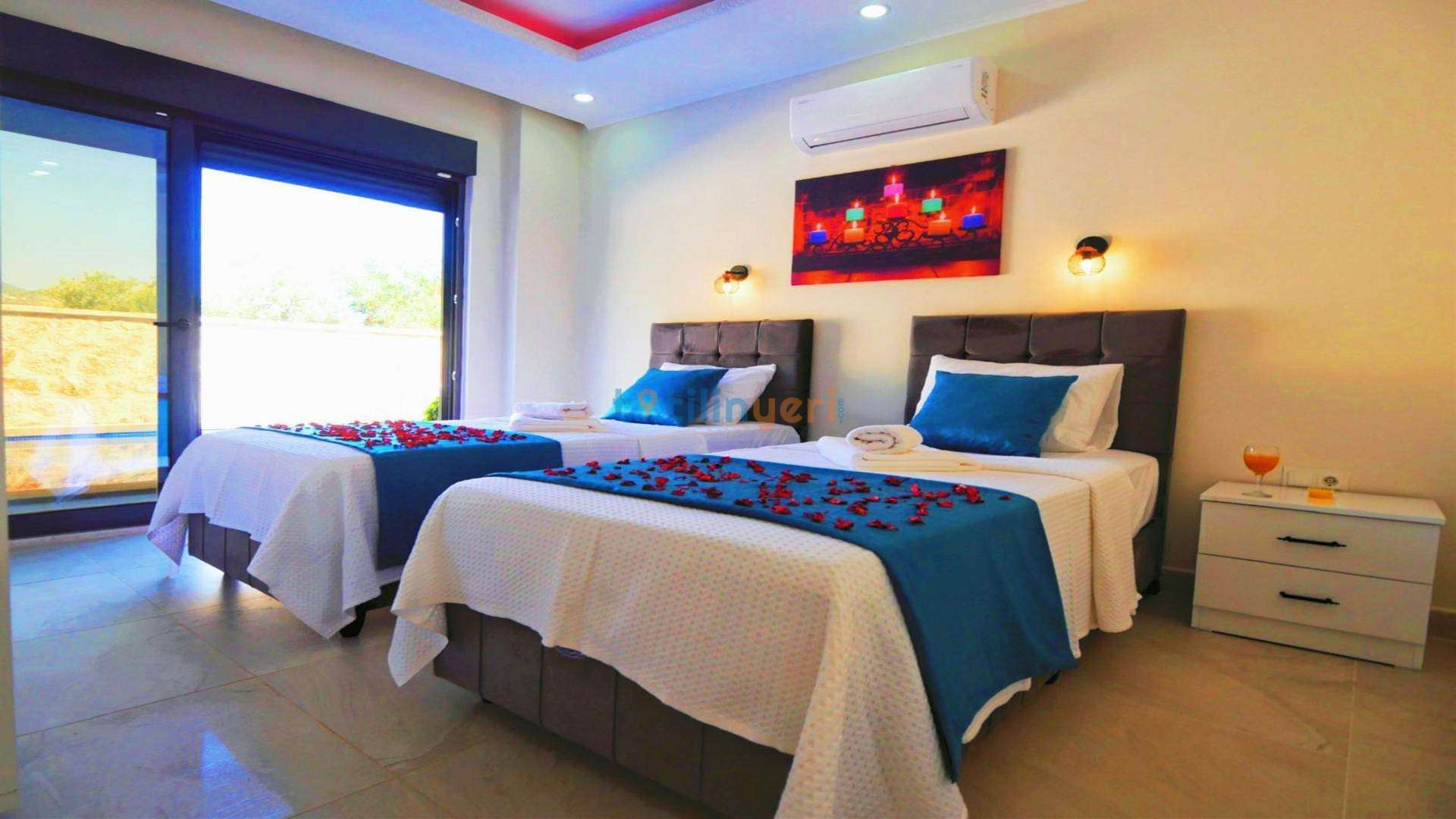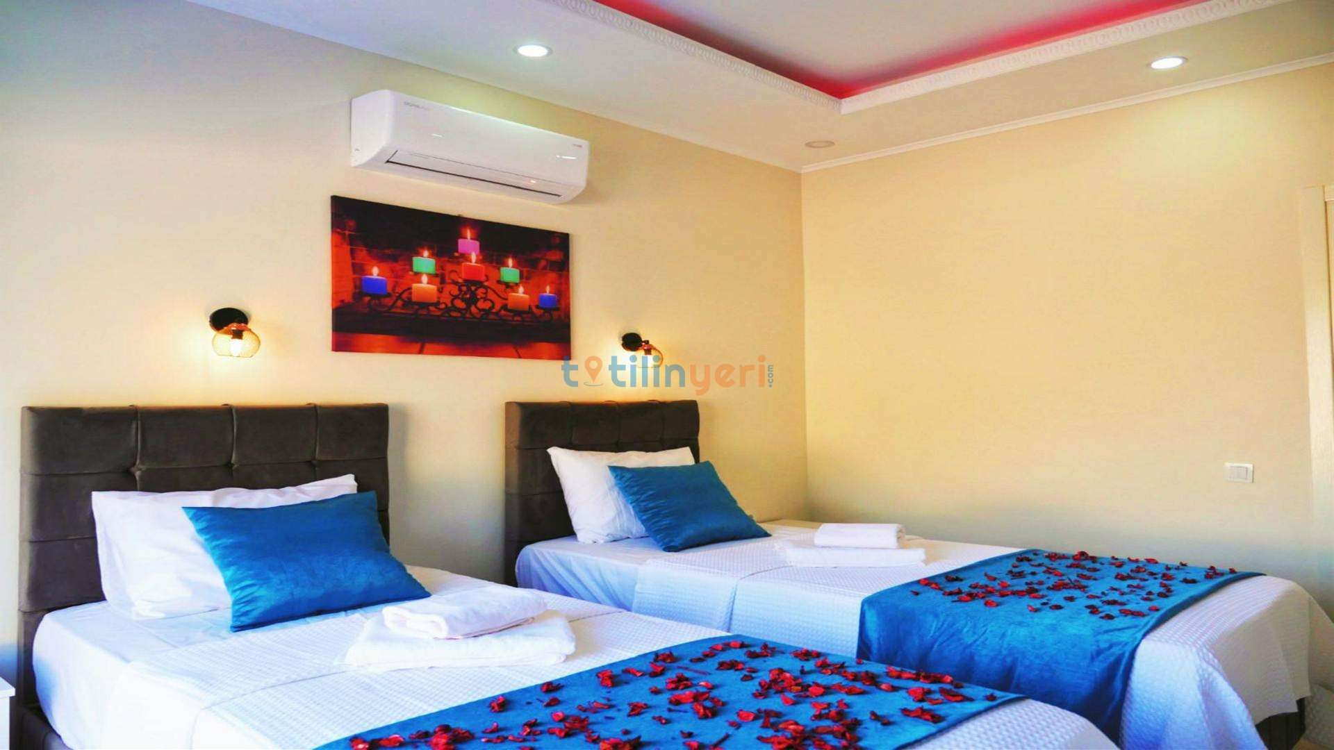 Yatak odası içerisinde, 2 adet tek kişilik yatak, klima, elbise dolabı, komodin, makyaj masası, banyo ve tuvalet yer almaktadır.