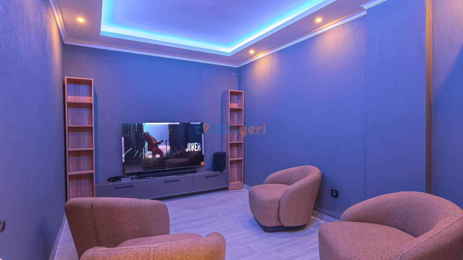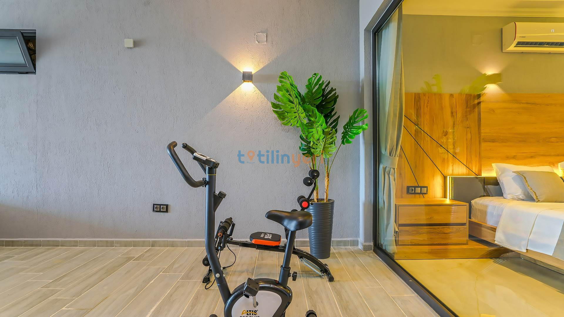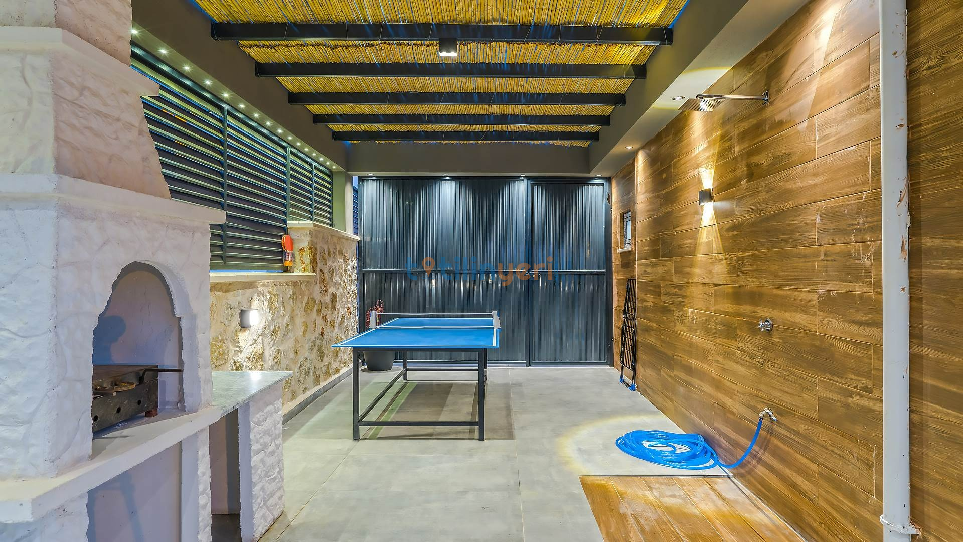 Salon : Modern dekore edilmiş salon içerisinde rahat oturma grubu, TV, klima yer almaktadır. Salondan havuz terasına geçiş vardır.