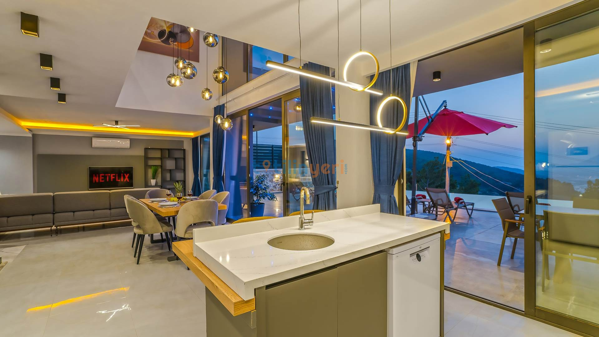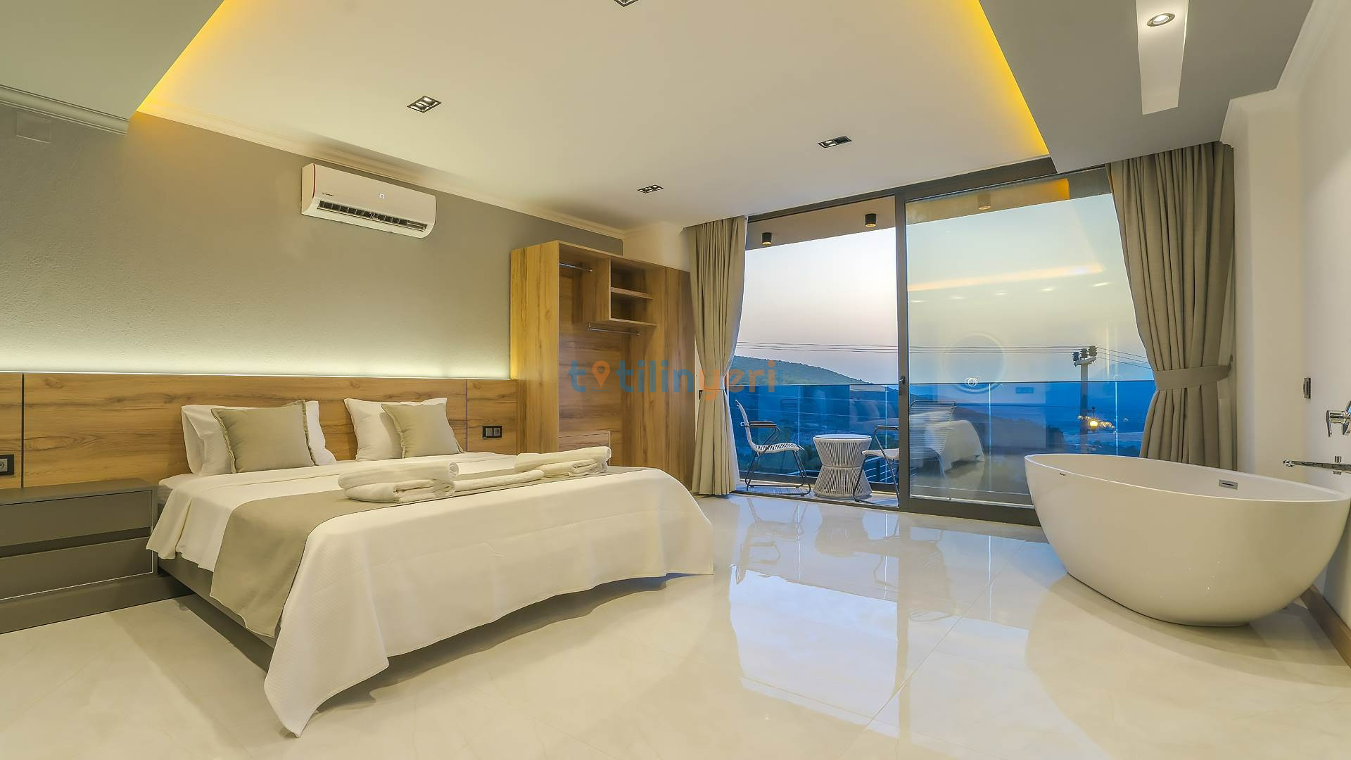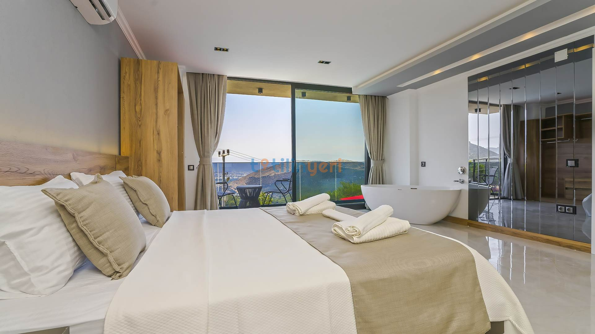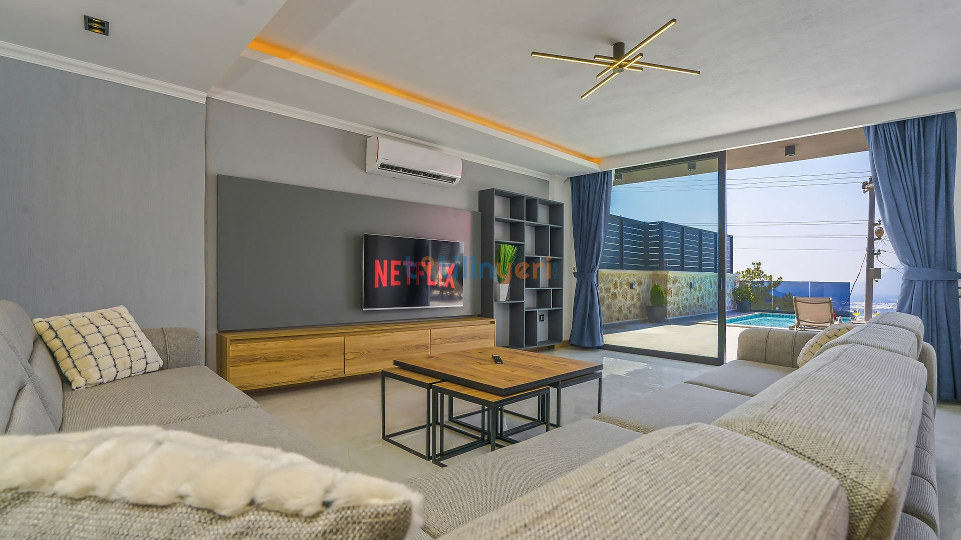 Kalkan Akbel bölgesinde yer alan modern mimarili villamız 3 yatak odalı ve 6 kişilik konaklama kapasitesine sahiptir. Villamızın geniş ve doğa manzaralı bahçesinde havuz, şezlong, güneş şemsiyeleri, oturma köşesi, salıncak ve yemek masası yer almaktadır. Bunun yanı sıra konforlu bir tatil geçirebilmeniz için en kaliteli eşyalar ile dekore edilmiş yatak odalarından birinde jakuzi yer almaktadır. Hamam , sauna , spor aletleri , sinema odası gibi aktiviteler ile tatilinizi daha keyifli hale getirebilirsiniz.