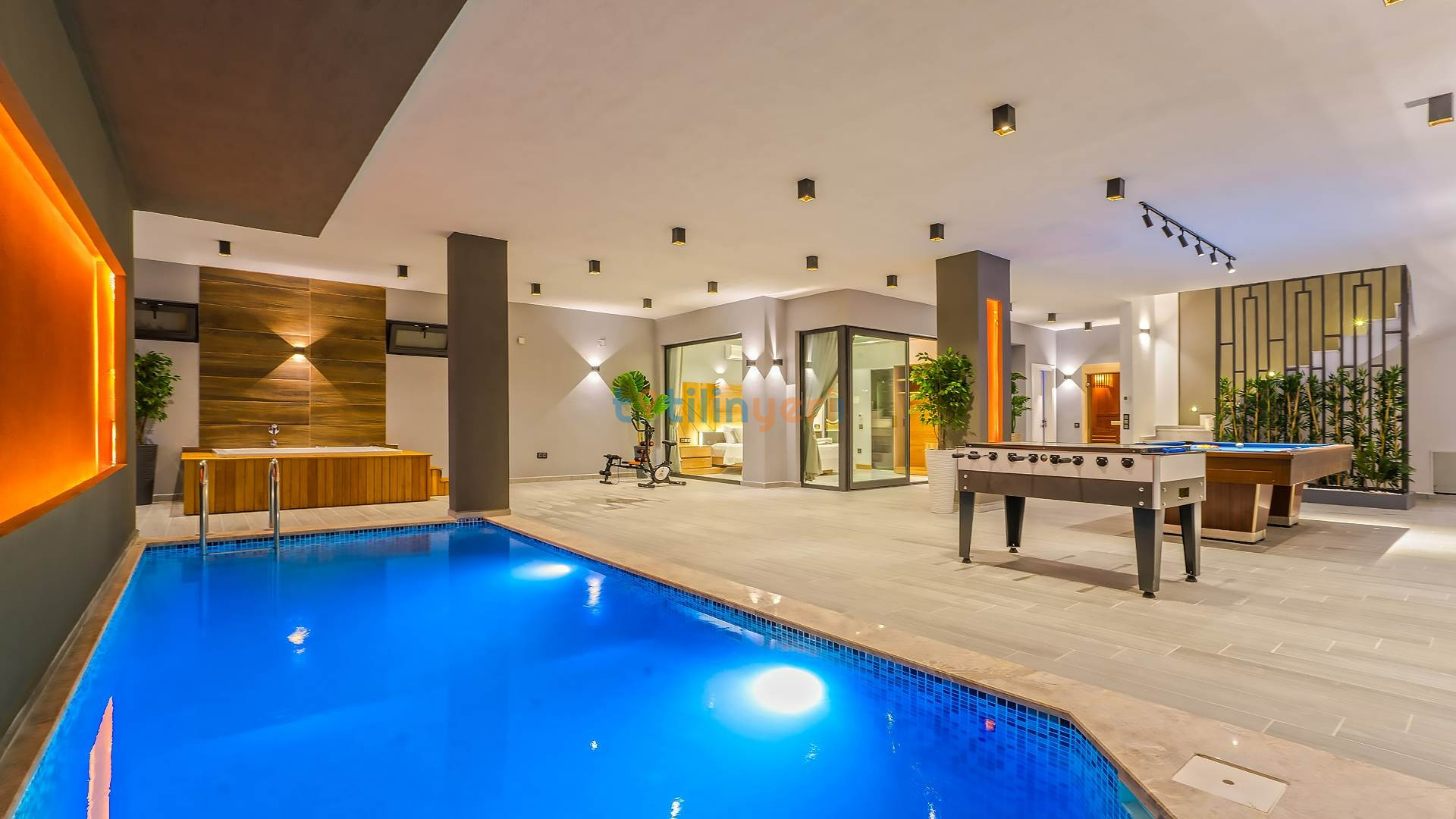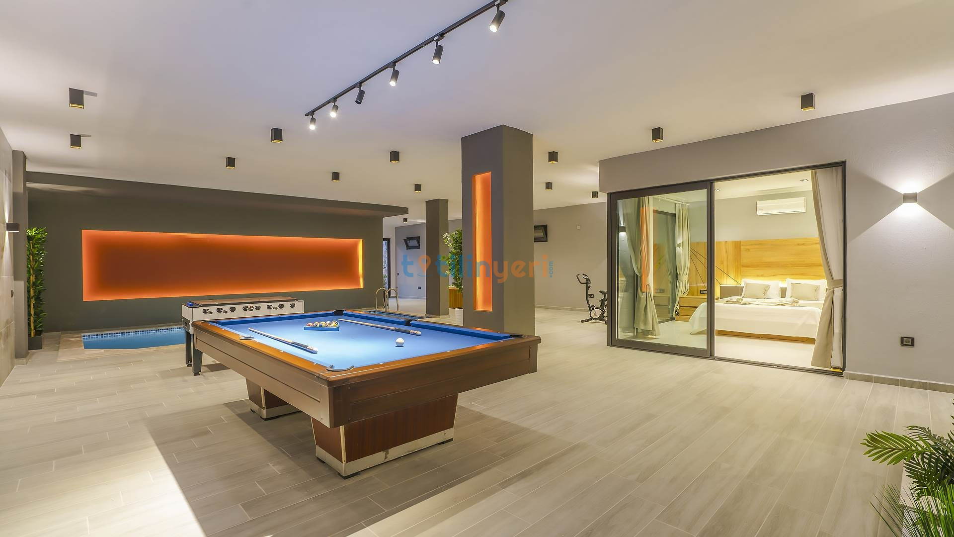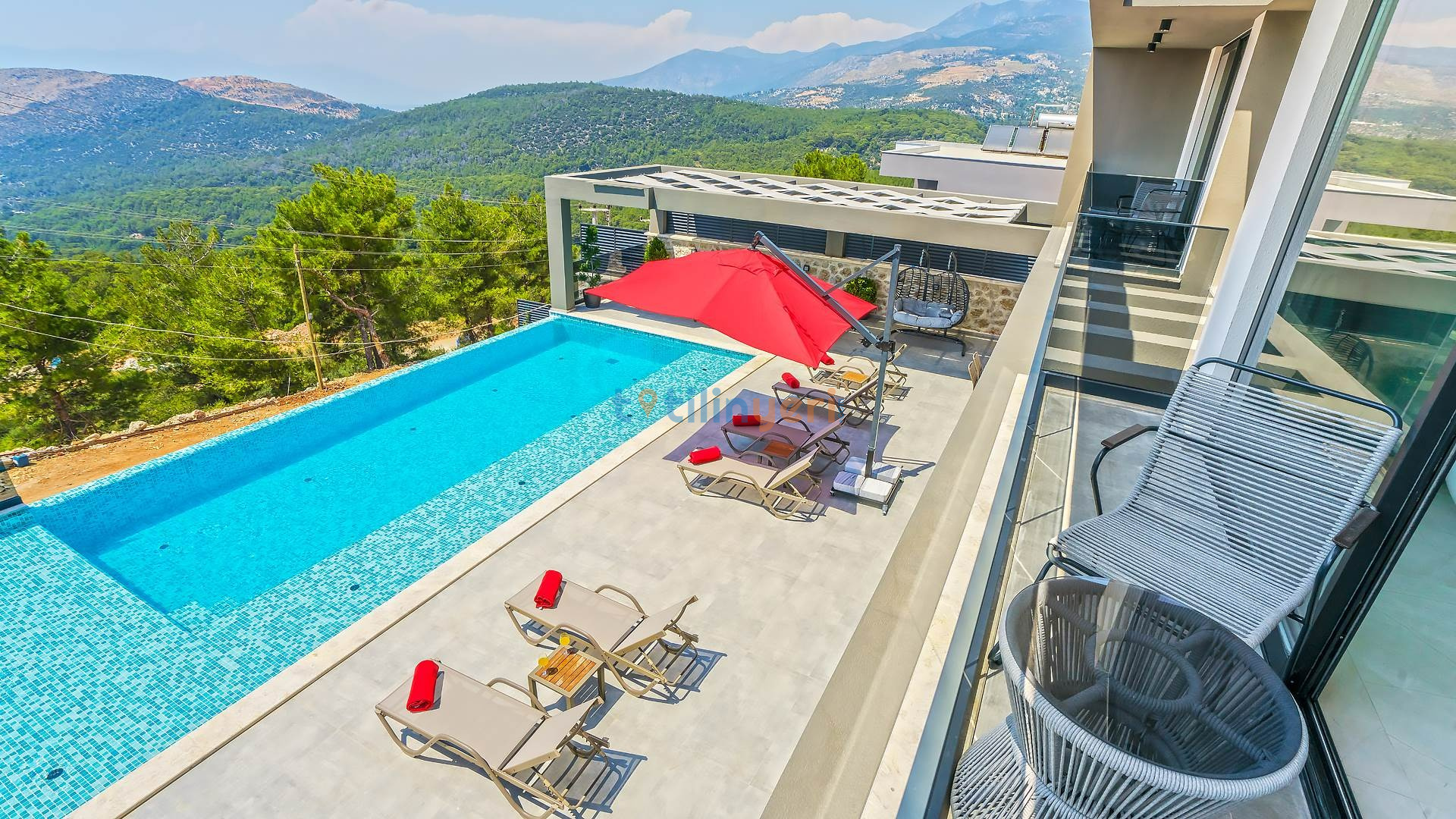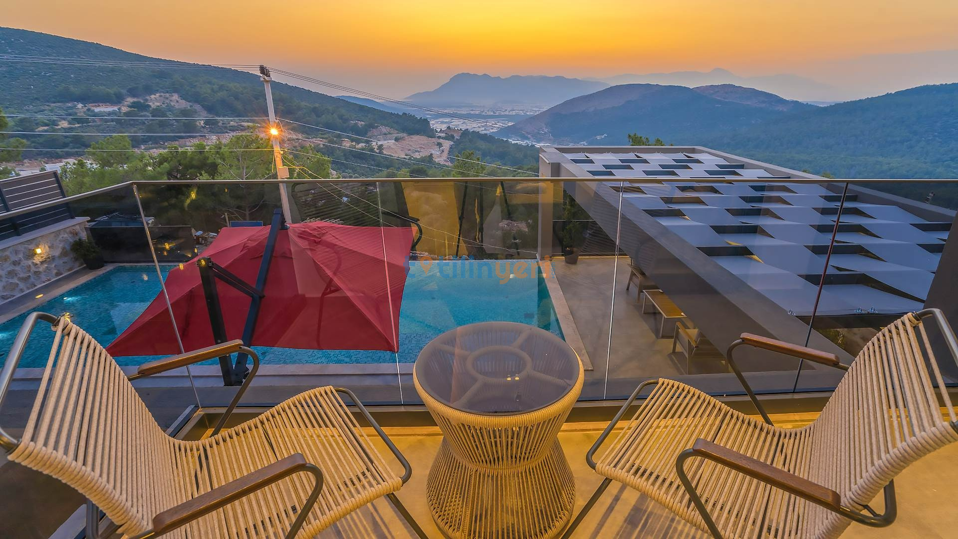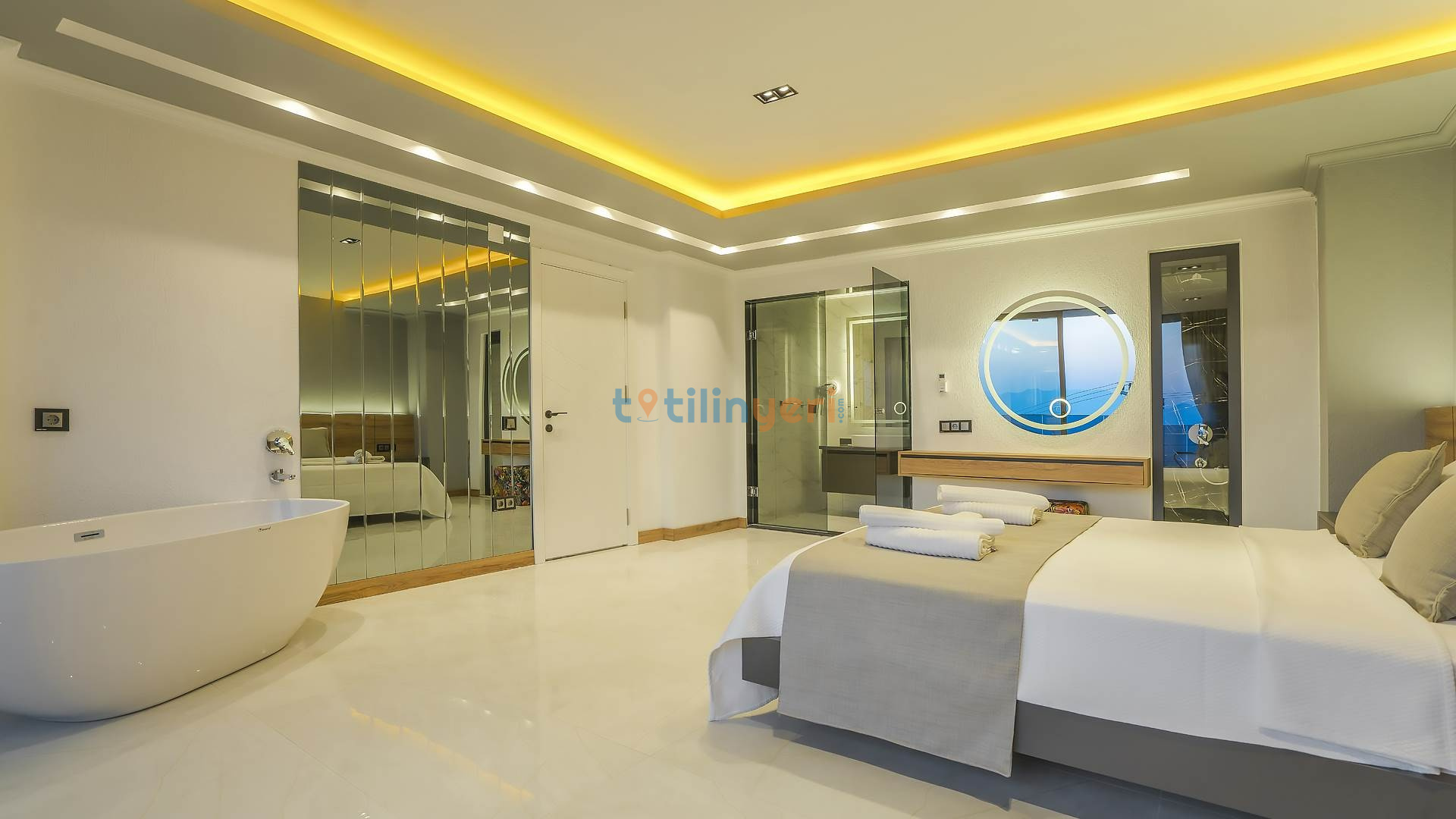 Kalkan Akbel bölgesinde yer alan modern mimarili villamız 3 yatak odalı ve 6 kişilik konaklama kapasitesine sahiptir. Villamızın geniş ve doğa manzaralı bahçesinde havuz, şezlong, güneş şemsiyeleri, oturma köşesi, salıncak ve yemek masası yer almaktadır. Bunun yanı sıra konforlu bir tatil geçirebilmeniz için en kaliteli eşyalar ile dekore edilmiş yatak odalarından birinde jakuzi yer almaktadır. Hamam , sauna , spor aletleri , sinema odası gibi aktiviteler ile tatilinizi daha keyifli hale getirebilirsiniz.