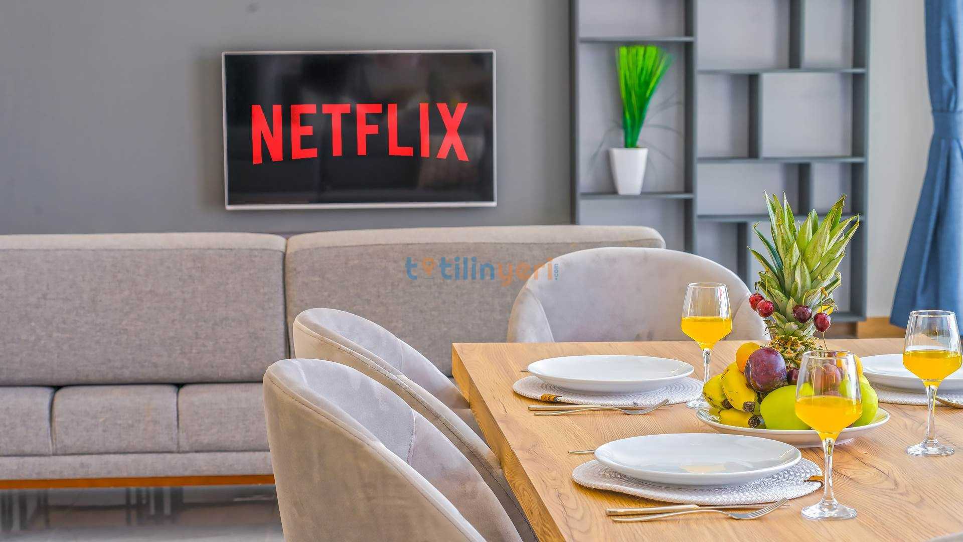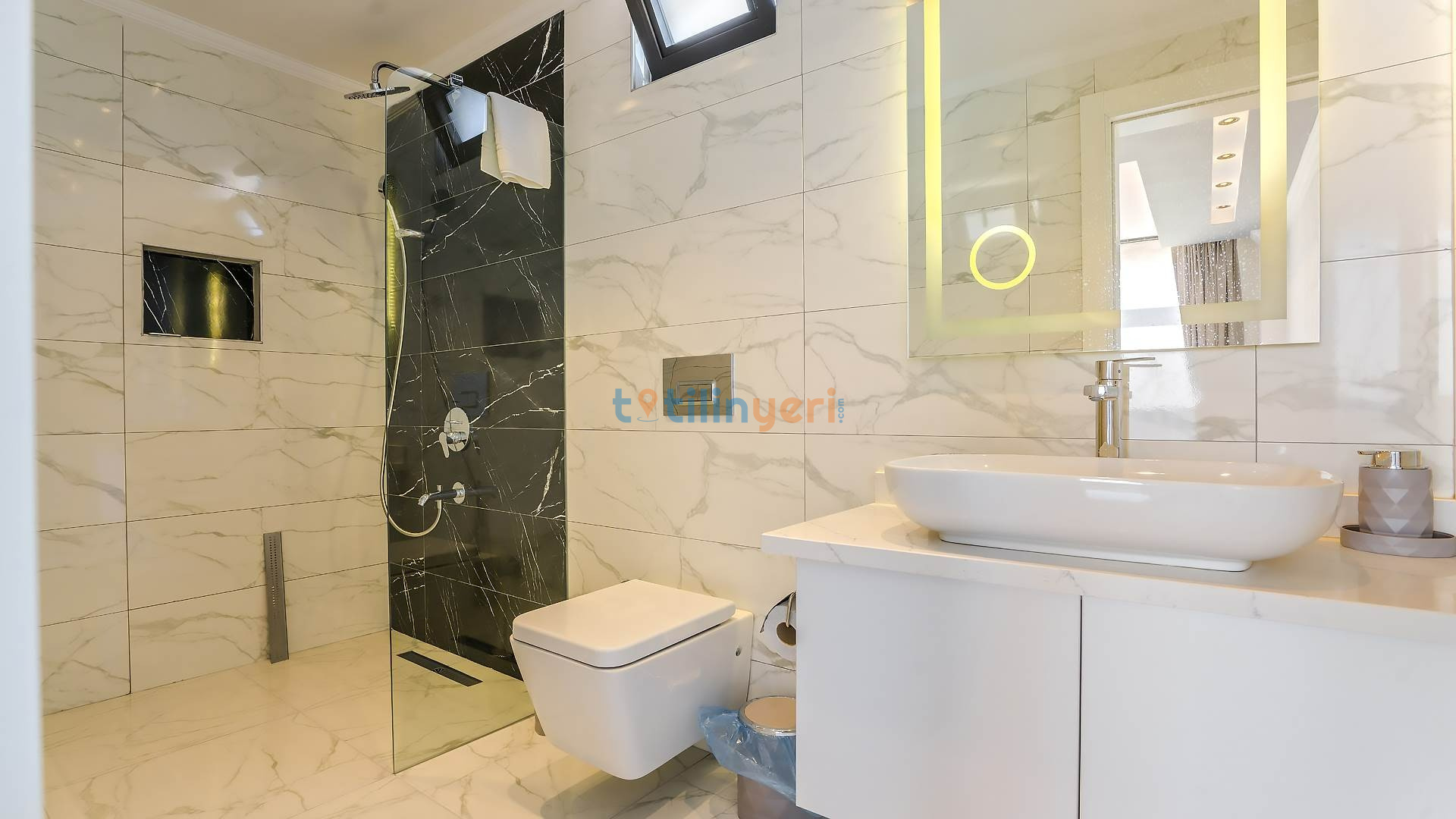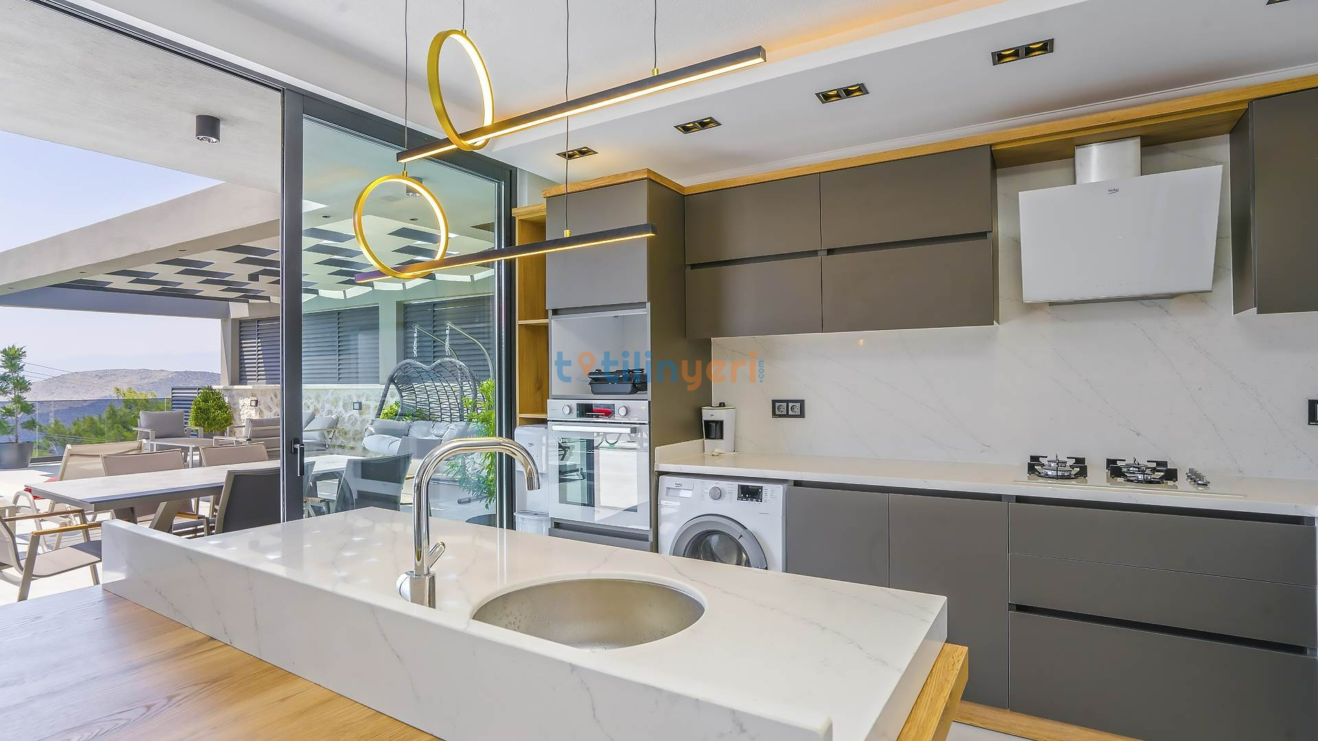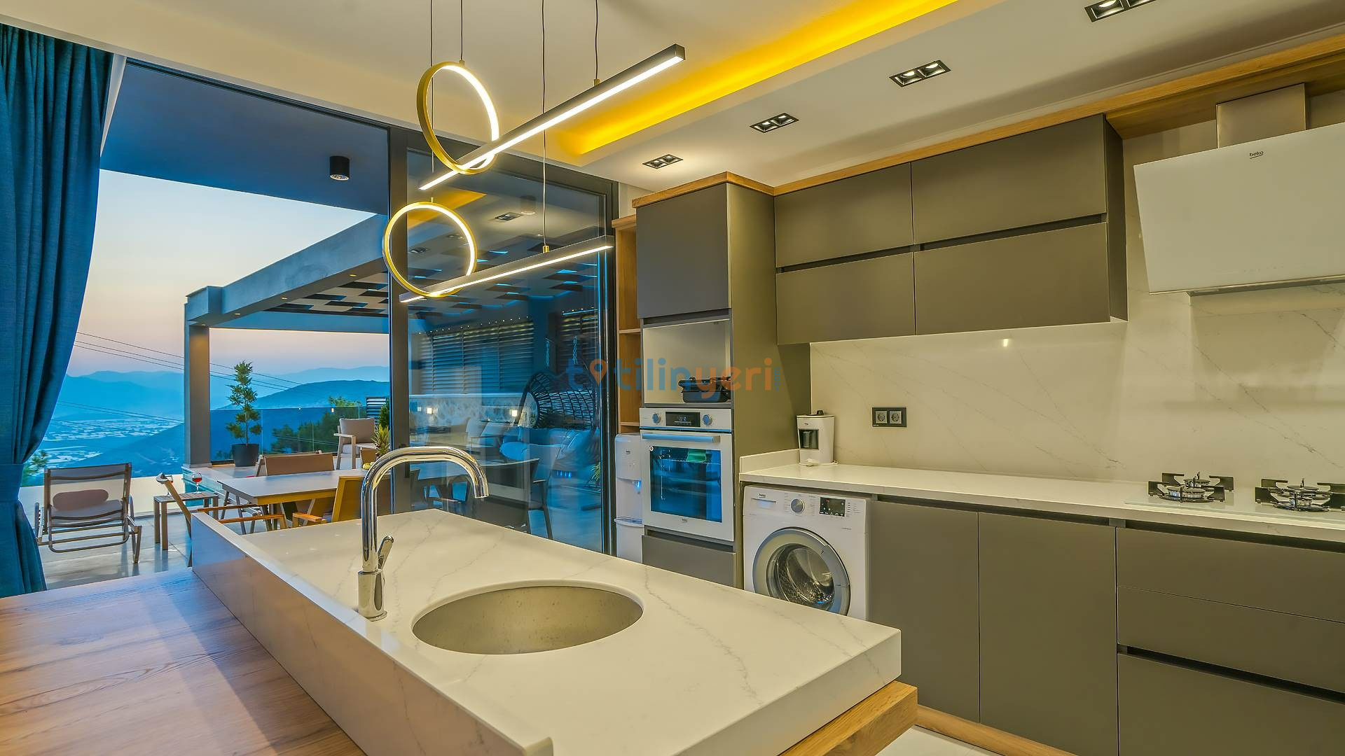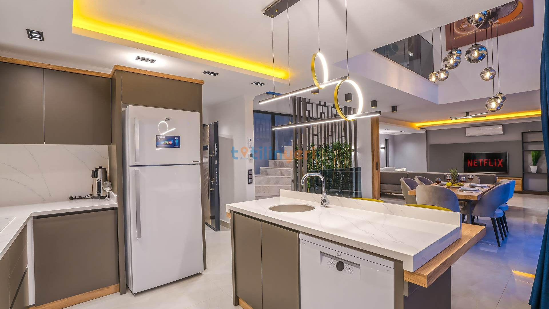 Mutfak : Aydınlık ve ferah eksiksiz dizayn edilmiş Amerikan mutfak içerisinde buzdolabı, bulaşık makinesi, ocak, fırın, mikrodalga fırın, yemek masası, yemek takımı ve yemek pişirme araç gereçleri yer almaktadır.