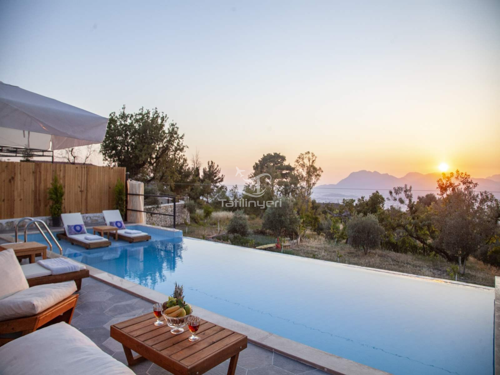 Villa İlkyaz, Kalkan Üzümlü Mevkii'nde yer alıyor. Oldukça sıcak bir tasarıma sahip olan villamız 2 yatak odası ile 4 kişilik konaklama kapasitesi sunuyor. Patara Koyu'na bakan villamızda eşsiz günbatımının keyfini çıkarabilirsiniz. Hem çiftler hem de çekirdek aileler için ideal olan villamızda kalabalıktan uzak izole bir tatil için ihtiyacınız olan her detay düşünülmüştür.