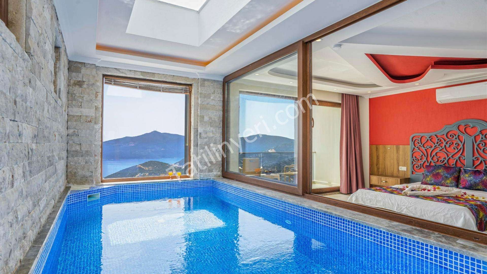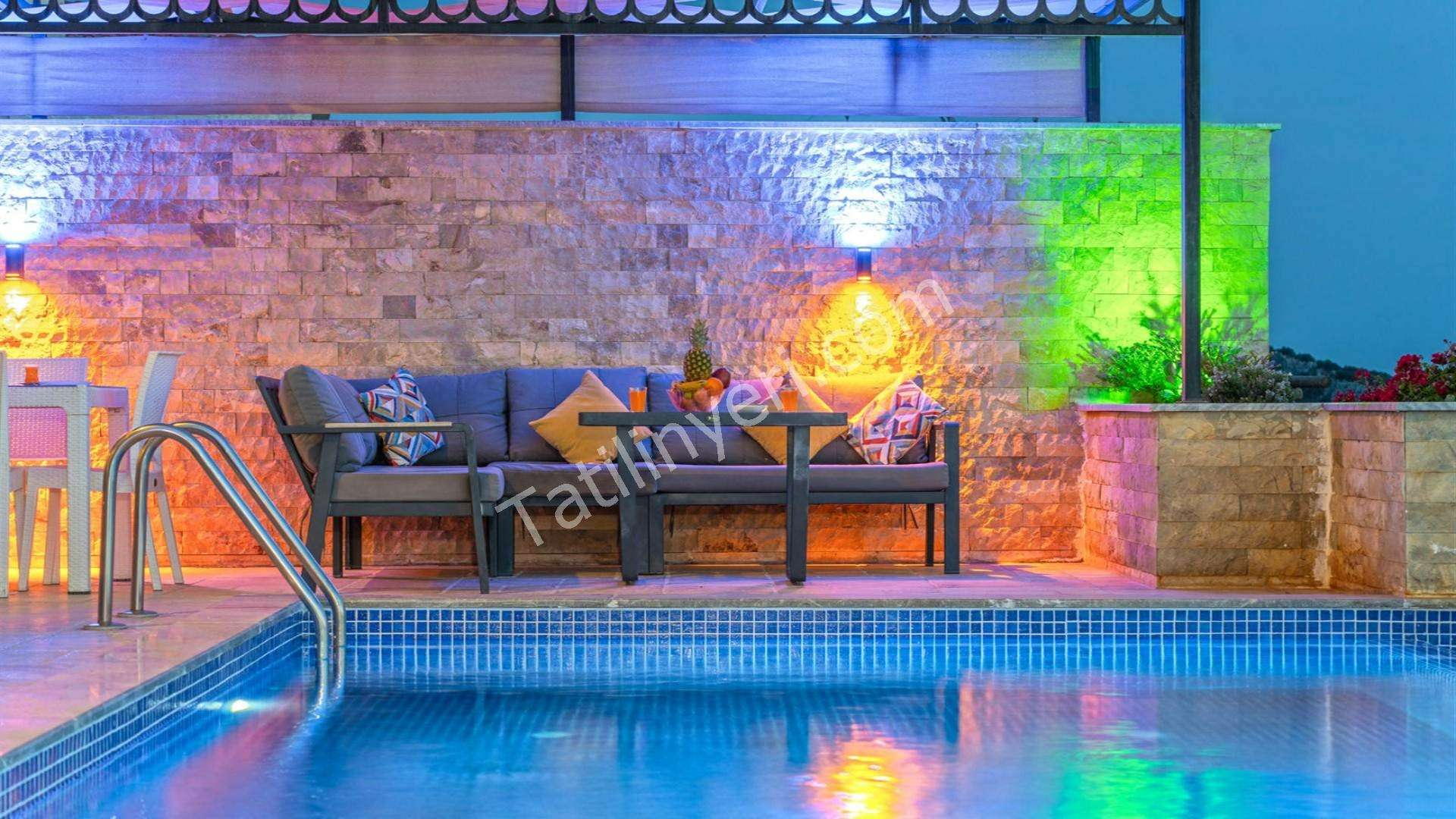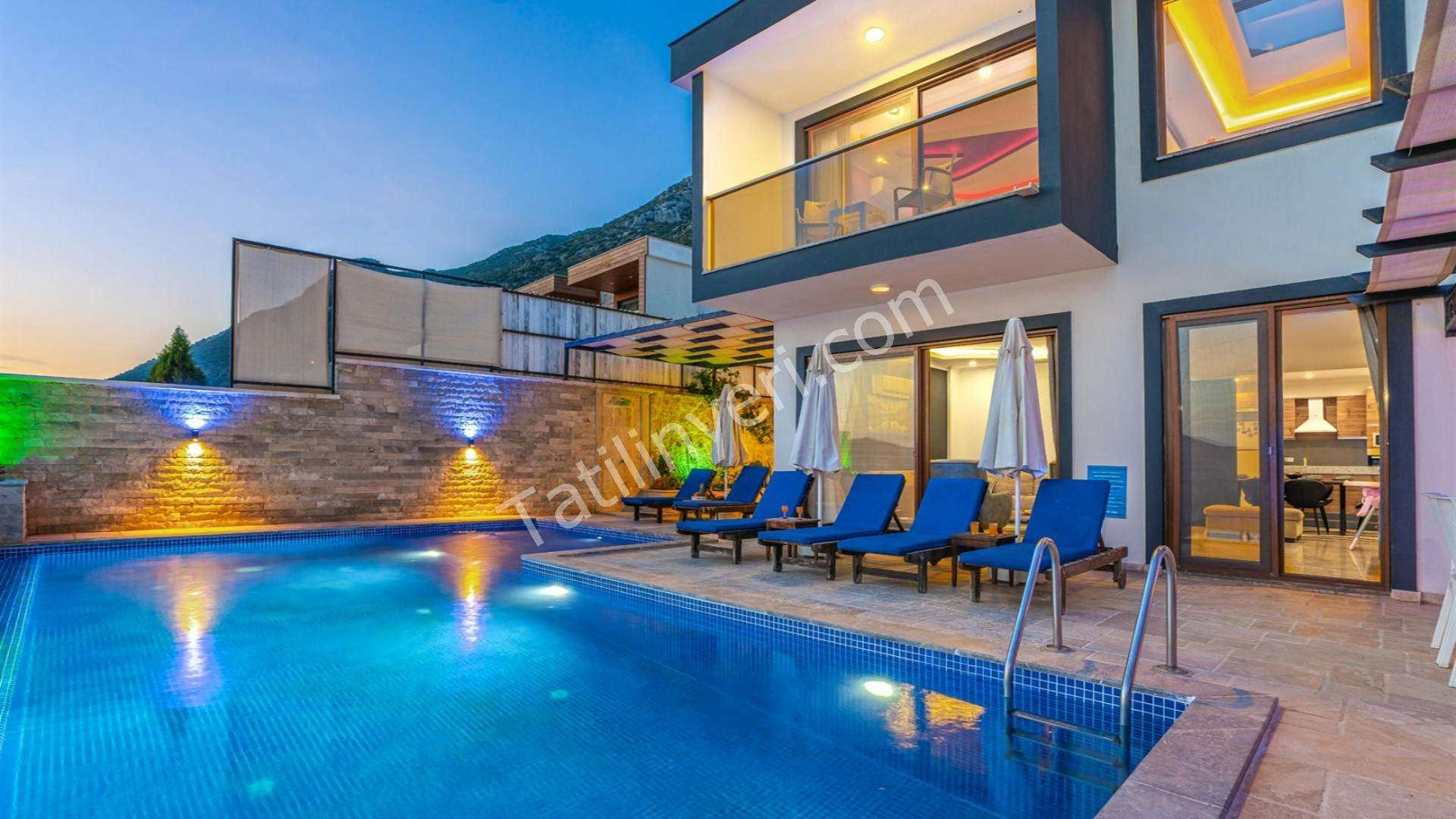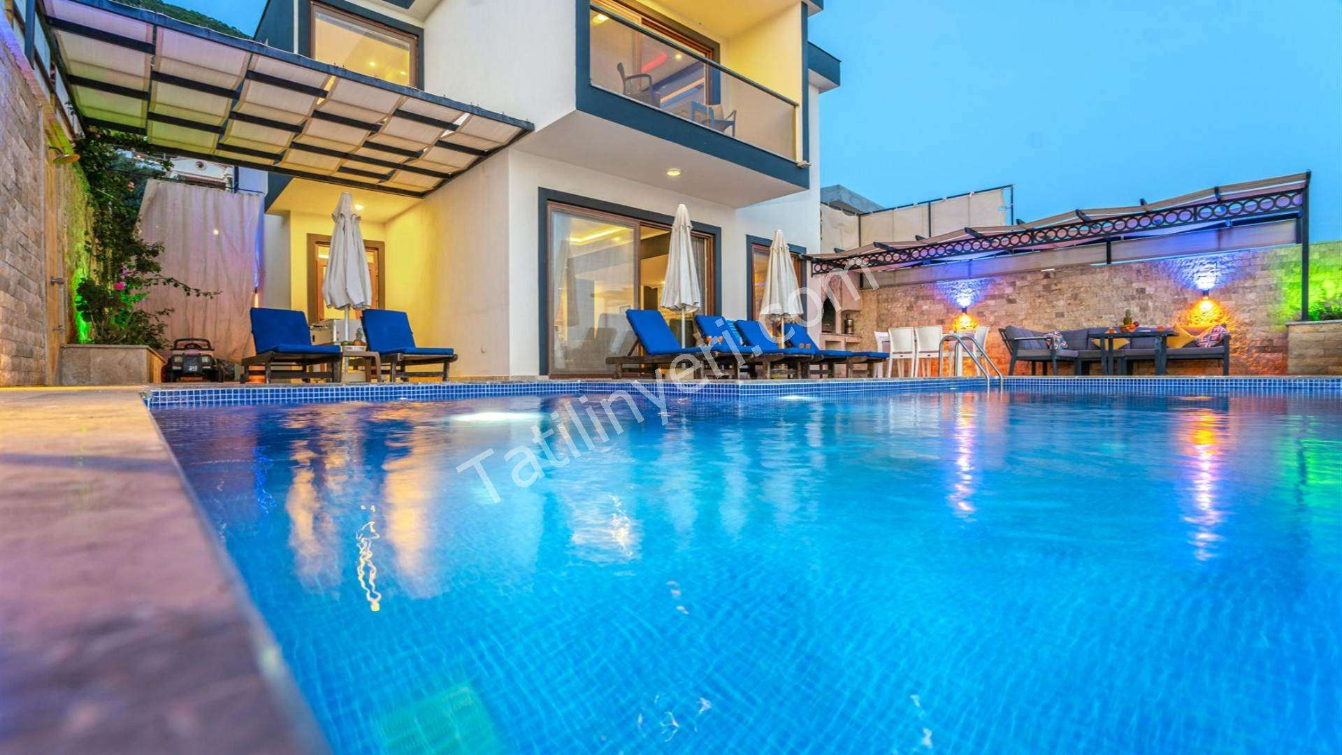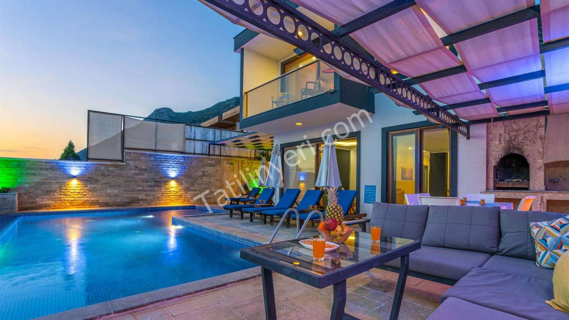 Kalkan Kördere mevkiinde muhteşem deniz manzarasına sahip lüks modern döşenmiş ve özel havuzlu ve kapalı havuzlu villamız 3 yatak odası ile 6 kişilik konaklamalara imkân sağlamaktadır. Villa konforu ile size evinizdeki sıcaklığı andıracak bir tatil geçirmenize olanak sağlayacaktır. Villamızda , sauna, hamam, jakuzi, kapalı ısıtmalı havuz, masa tenisi, çocuk oyun alanı, langırt bulunmaktadır. Havuz başında keyifli zaman geçirerek size eşlik eden olağanüstü deniz manzarasına hayran kalacağınız bir villa sizleri beklemektedir.