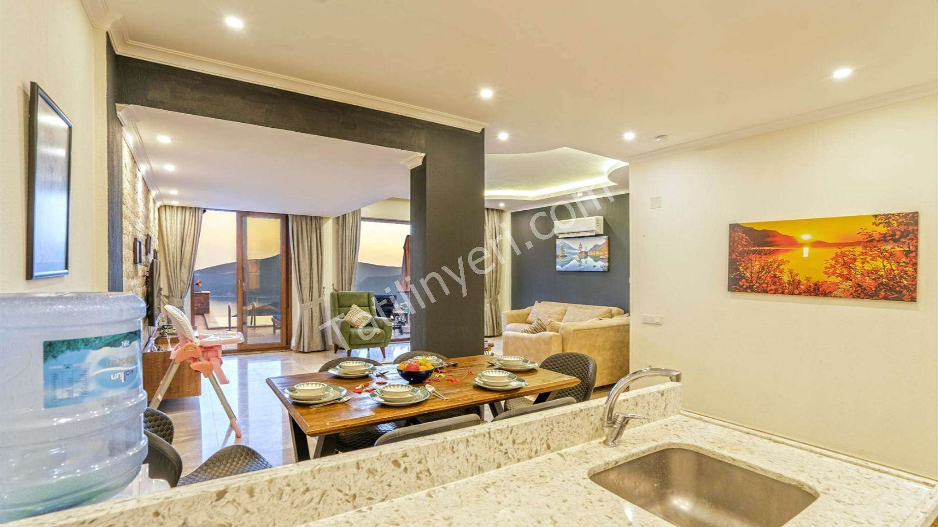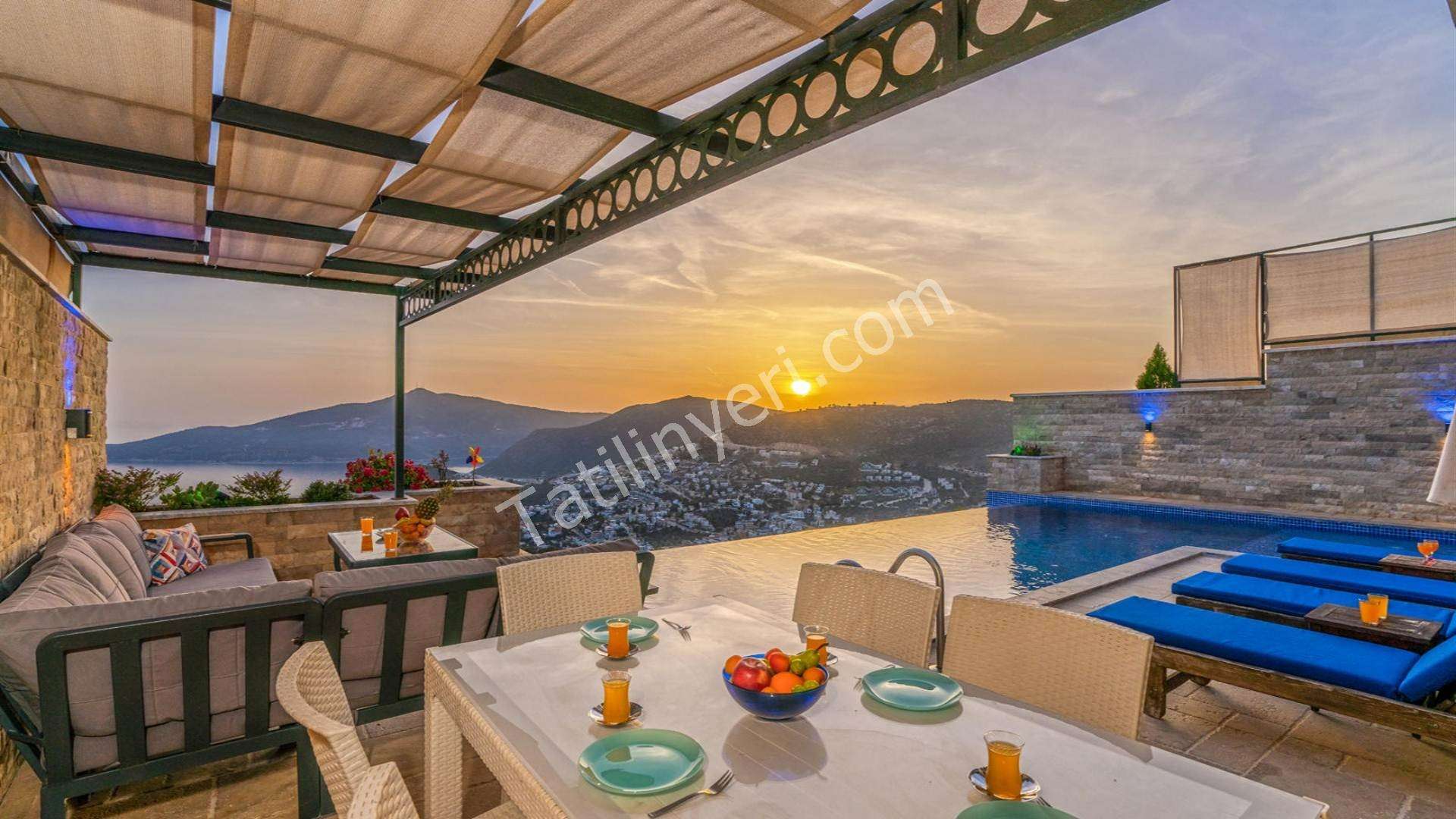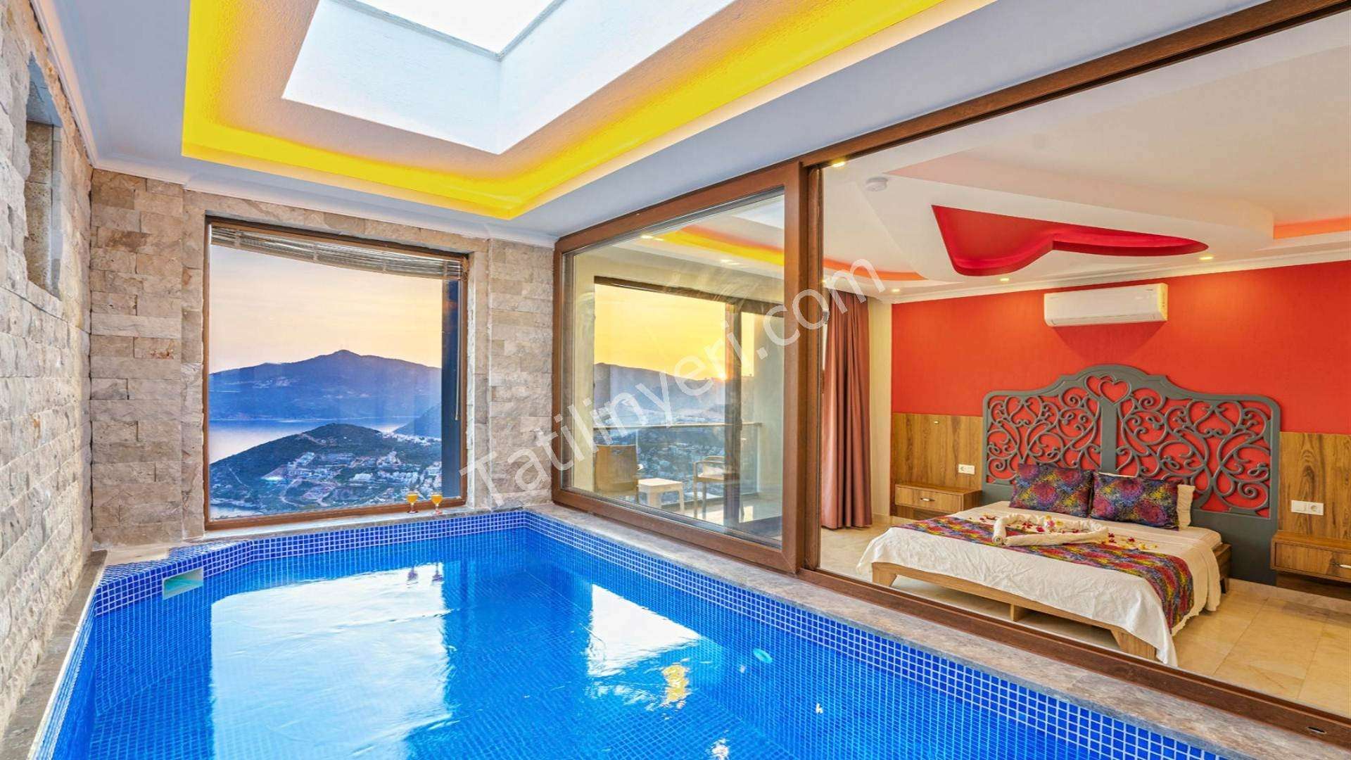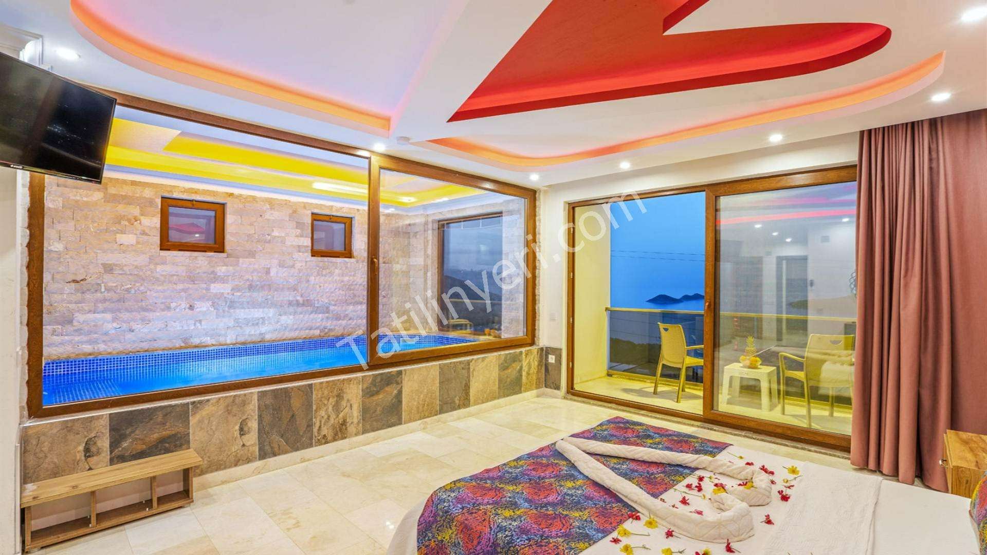 Kalkan Kördere mevkiinde muhteşem deniz manzarasına sahip lüks modern döşenmiş ve özel havuzlu ve kapalı havuzlu villamız 3 yatak odası ile 6 kişilik konaklamalara imkân sağlamaktadır. Villa konforu ile size evinizdeki sıcaklığı andıracak bir tatil geçirmenize olanak sağlayacaktır. Villamızda , sauna, hamam, jakuzi, kapalı ısıtmalı havuz, masa tenisi, çocuk oyun alanı, langırt bulunmaktadır. Havuz başında keyifli zaman geçirerek size eşlik eden olağanüstü deniz manzarasına hayran kalacağınız bir villa sizleri beklemektedir.