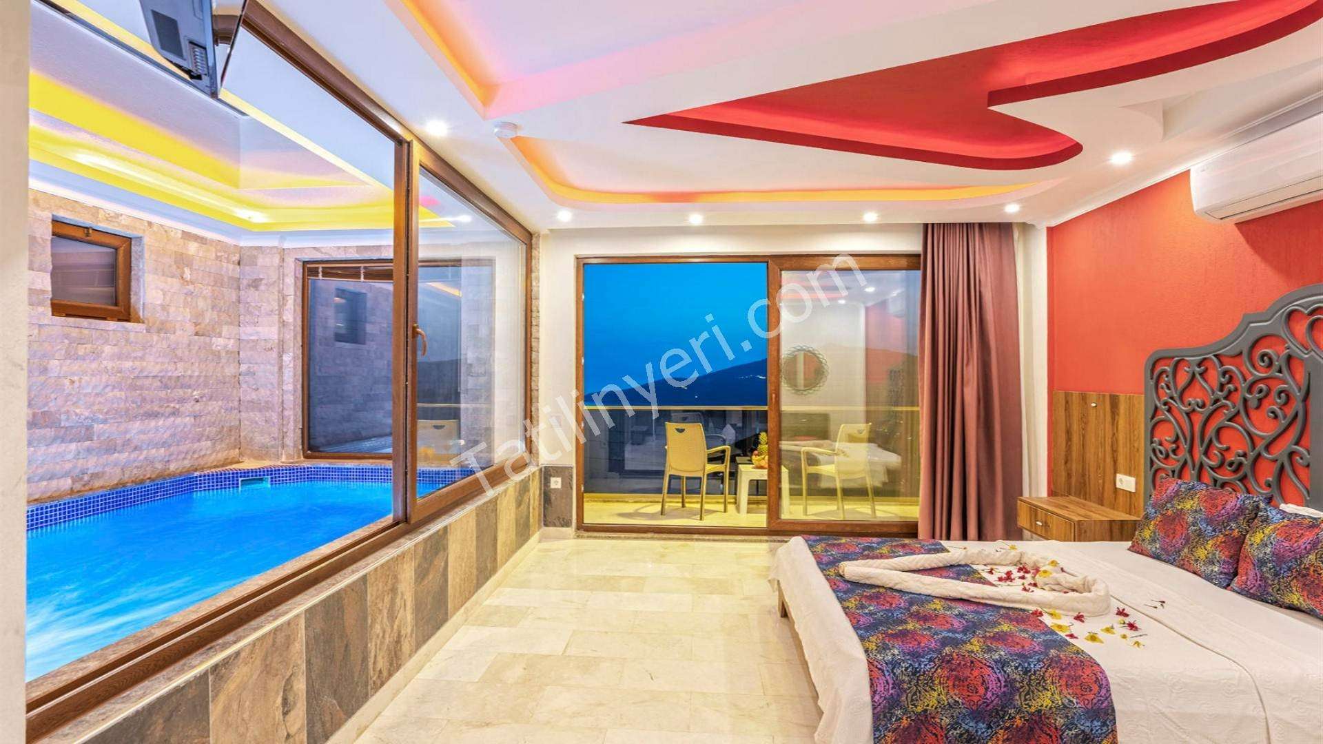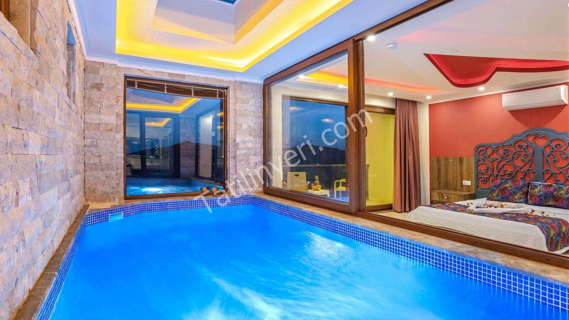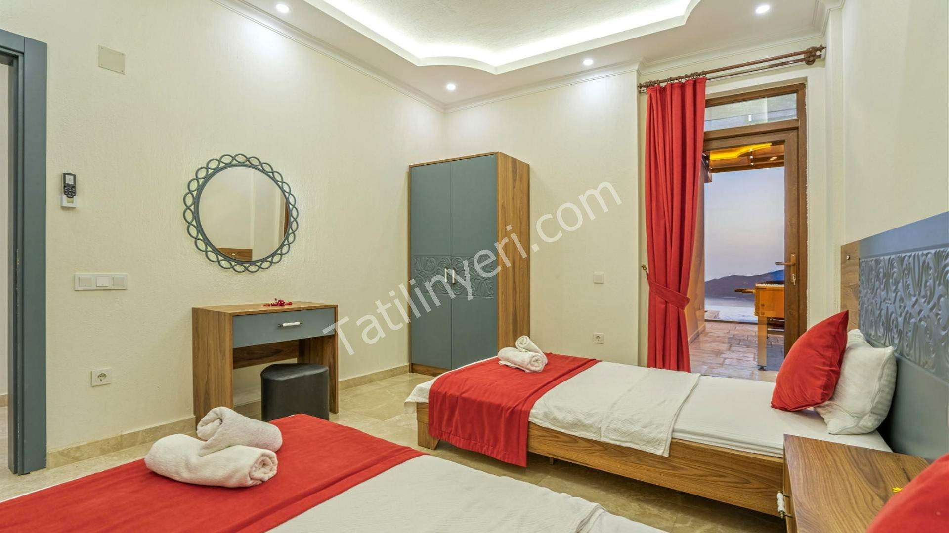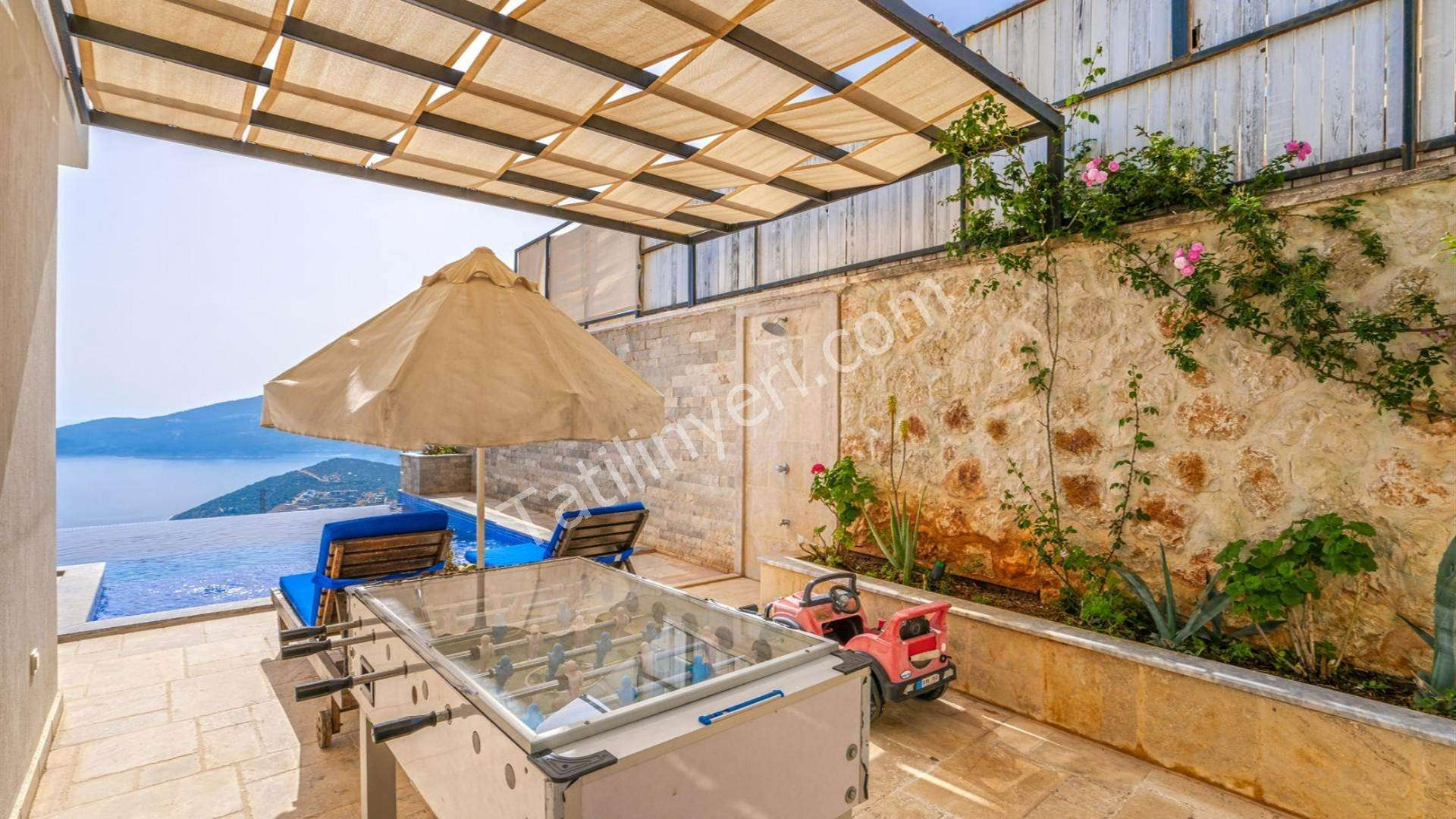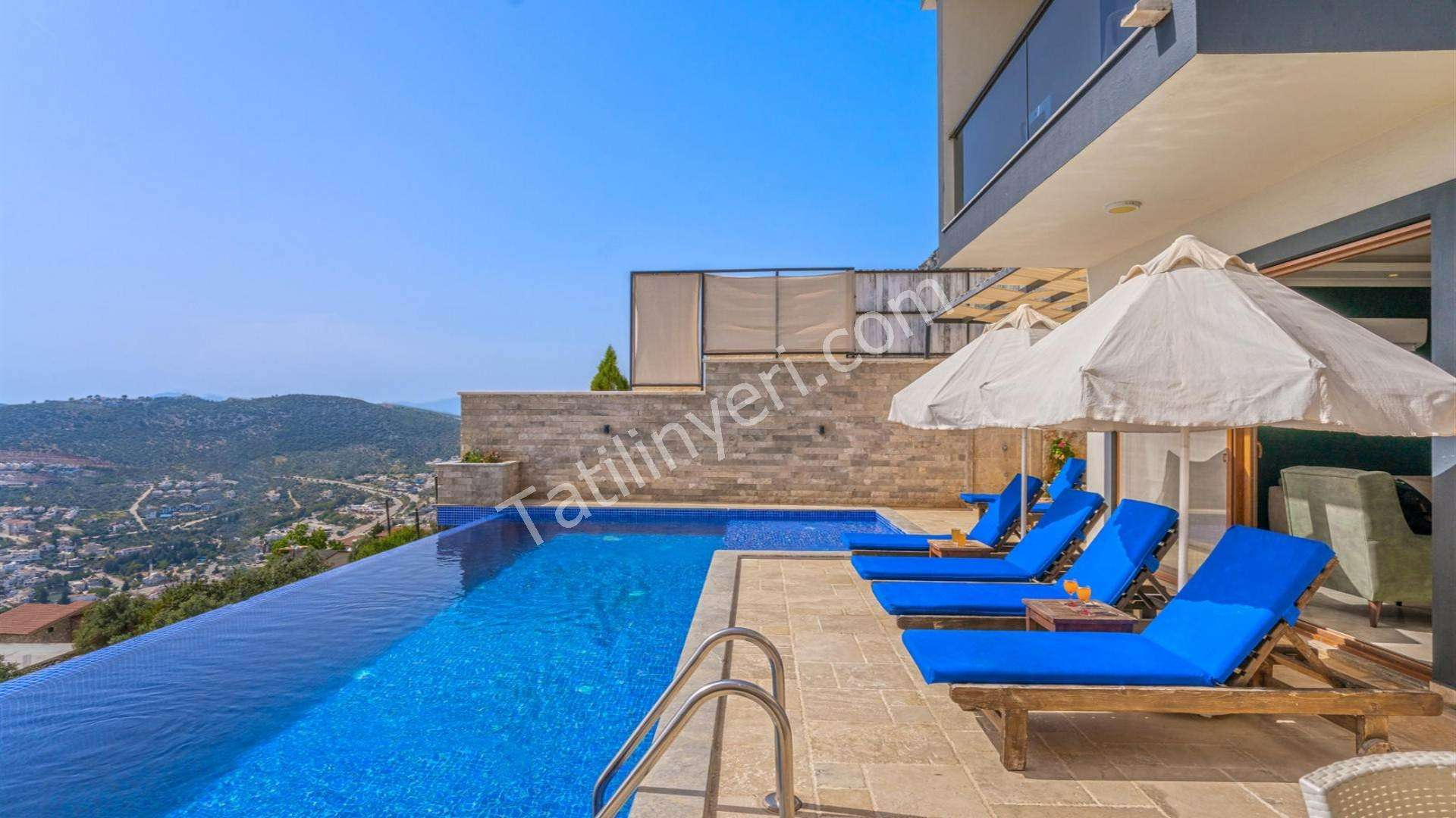 Kalkan Kördere mevkiinde muhteşem deniz manzarasına sahip lüks modern döşenmiş ve özel havuzlu ve kapalı havuzlu villamız 3 yatak odası ile 6 kişilik konaklamalara imkân sağlamaktadır. Villa konforu ile size evinizdeki sıcaklığı andıracak bir tatil geçirmenize olanak sağlayacaktır. Villamızda , sauna, hamam, jakuzi, kapalı ısıtmalı havuz, masa tenisi, çocuk oyun alanı, langırt bulunmaktadır. Havuz başında keyifli zaman geçirerek size eşlik eden olağanüstü deniz manzarasına hayran kalacağınız bir villa sizleri beklemektedir.