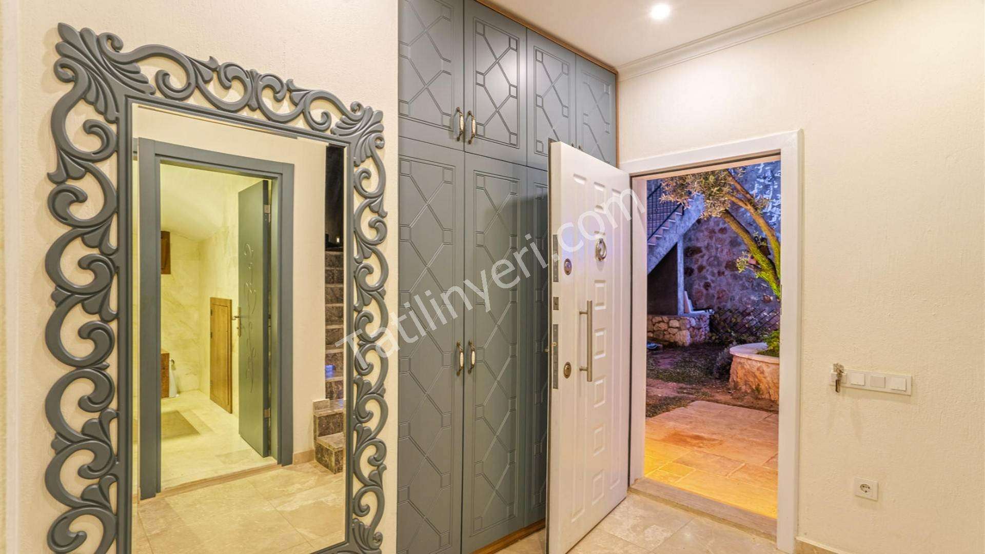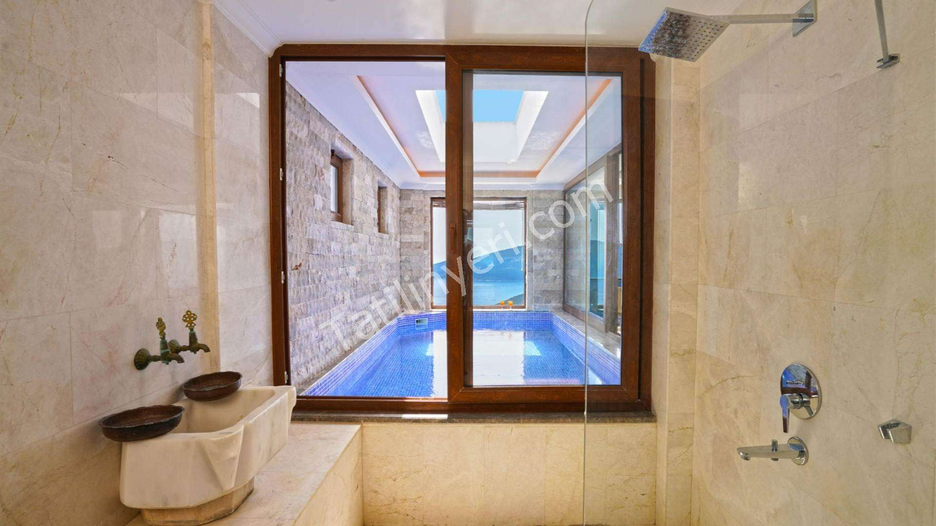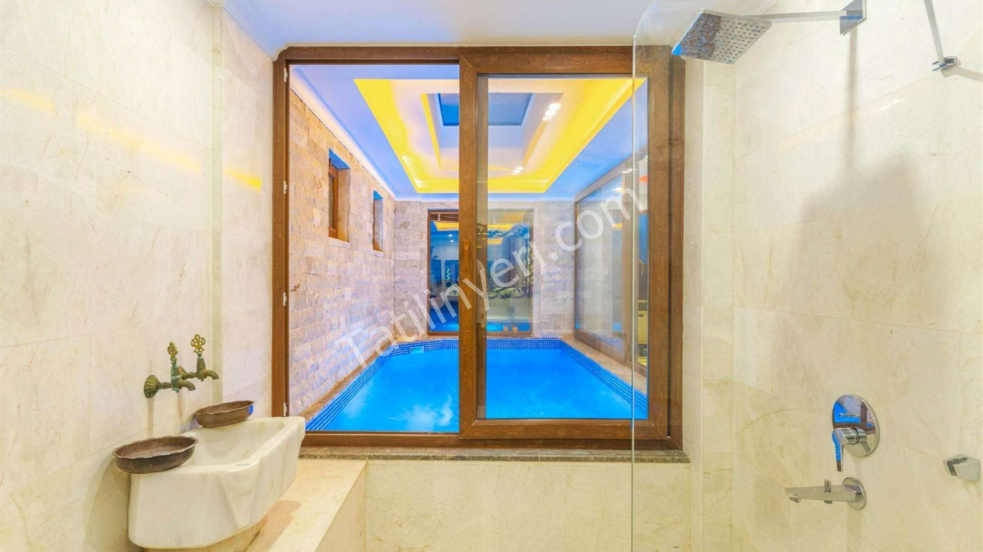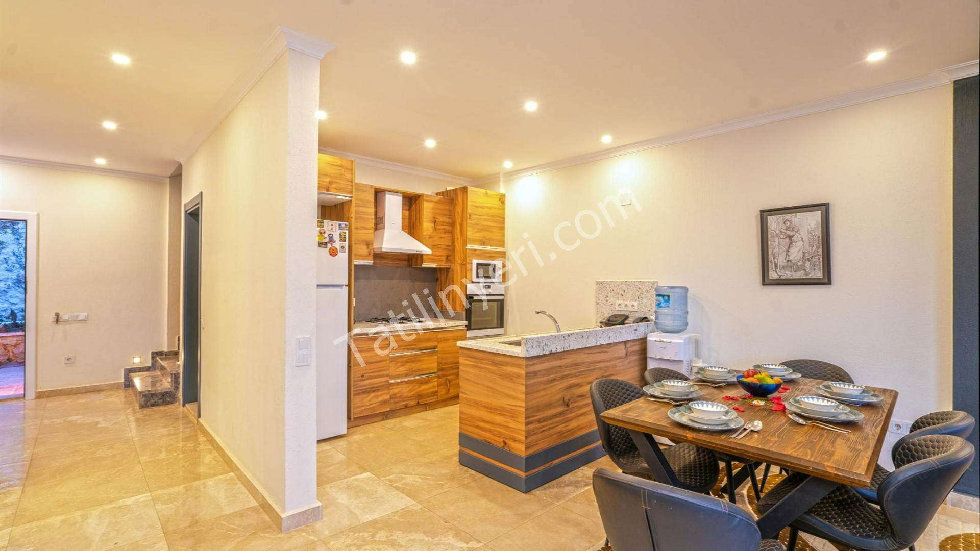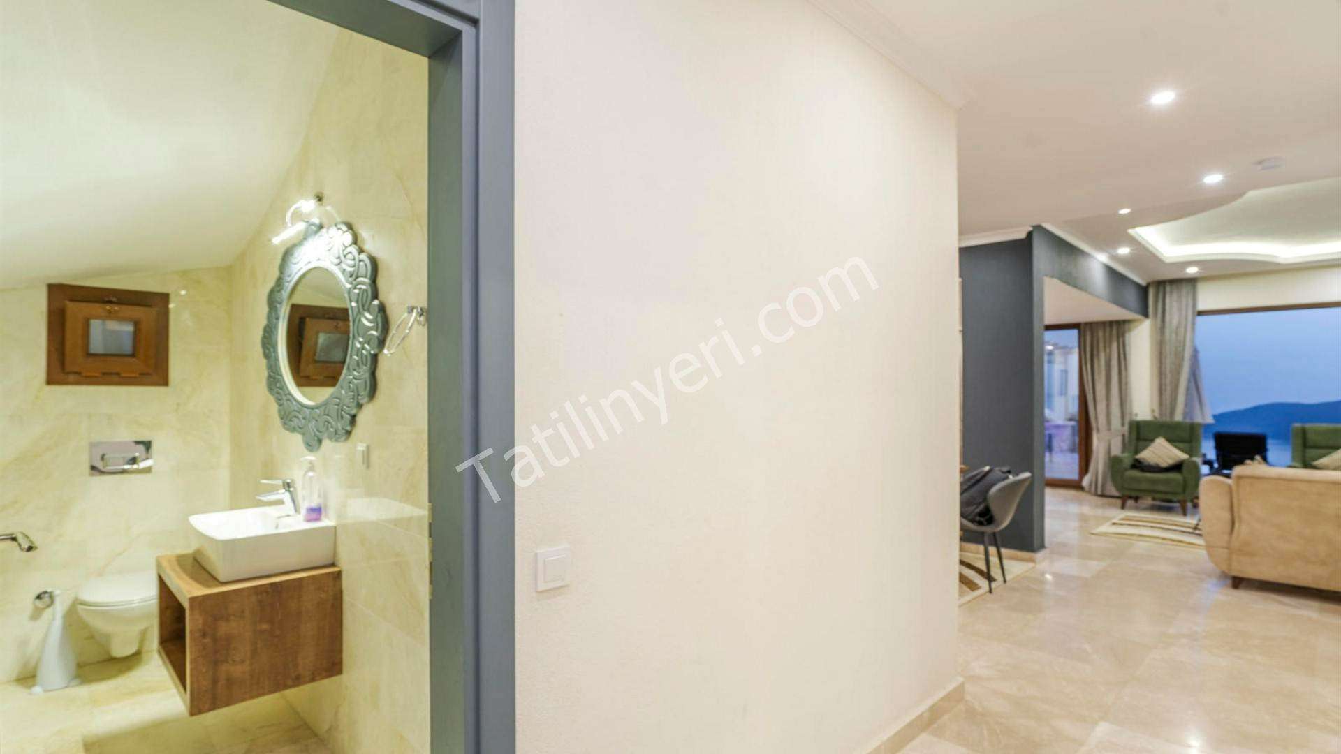 Kalkan Kördere mevkiinde muhteşem deniz manzarasına sahip lüks modern döşenmiş ve özel havuzlu ve kapalı havuzlu villamız 3 yatak odası ile 6 kişilik konaklamalara imkân sağlamaktadır. Villa konforu ile size evinizdeki sıcaklığı andıracak bir tatil geçirmenize olanak sağlayacaktır. Villamızda , sauna, hamam, jakuzi, kapalı ısıtmalı havuz, masa tenisi, çocuk oyun alanı, langırt bulunmaktadır. Havuz başında keyifli zaman geçirerek size eşlik eden olağanüstü deniz manzarasına hayran kalacağınız bir villa sizleri beklemektedir.