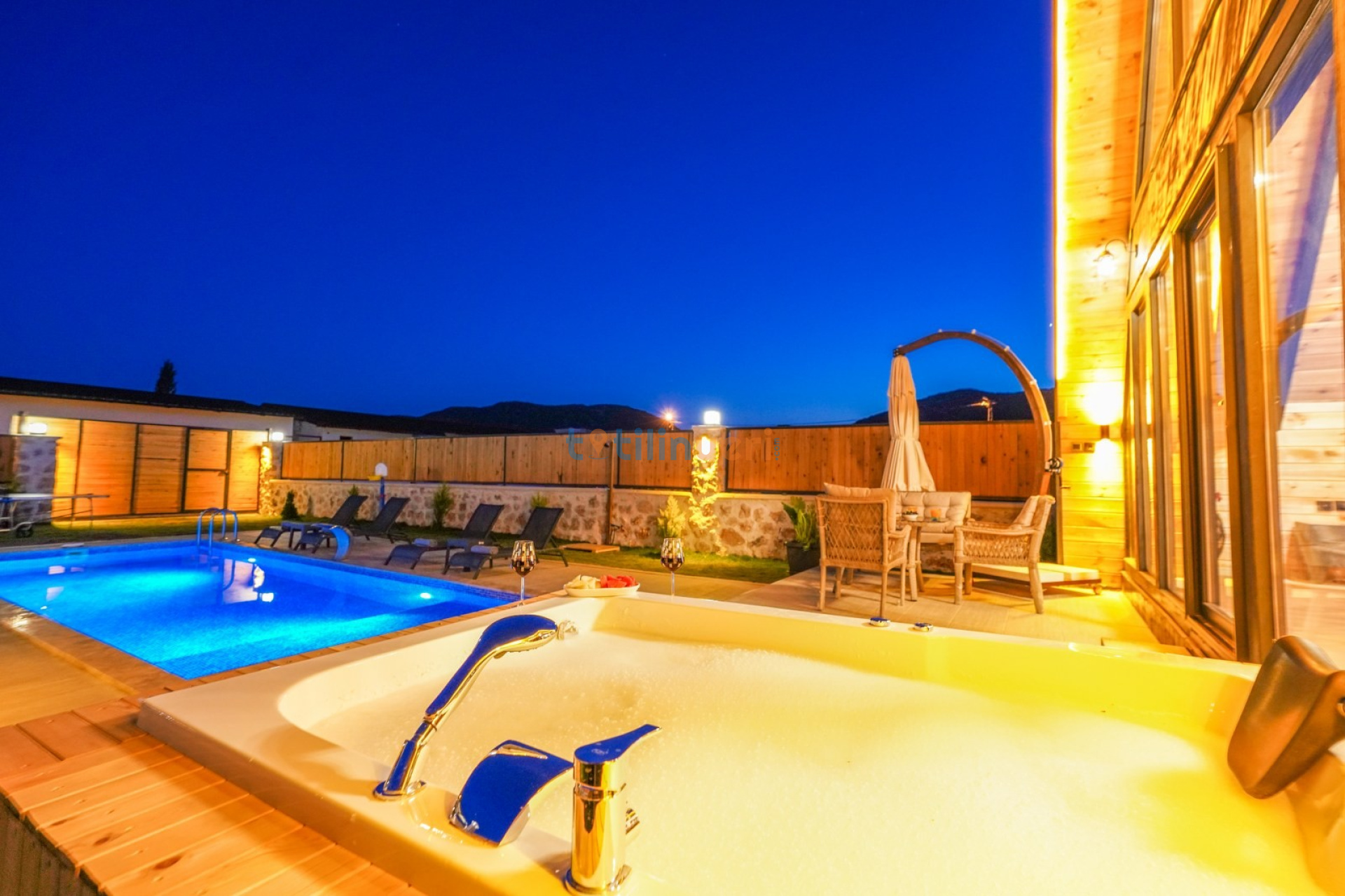 Villa Leon Bezirgan , Kalkan Bezirgan Bölgesinde , 2 yatak odali ve 4 kisi kapasiteli, jakuzili, muhafazakar villadır. Villamizin havuz alani korunakli olup, bahçe alanında jakuzi bulunan, çocuk oyun alanlı, masa tenisi, sinevizyon sistemi bulunan yemyesil bir bahçeye sahiptir. Doga içerisinde sessiz, sakin , sehir kalabaligindan uzak bir tatil imkani sunmaktadir