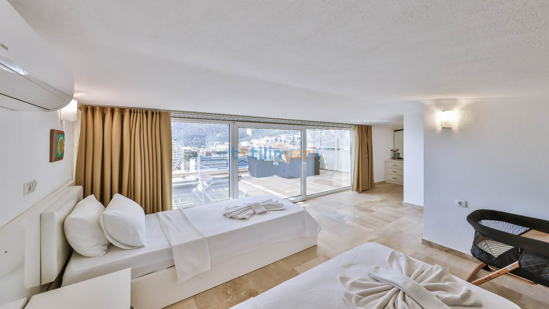 Kalkan'ın gözde beldesi Kalamar'da yer alan Villa Lotus, lüks ve konforun mükemmel bir bileşimini sunuyor. Bu zarif villa, 3 geniş master suit ve toplamda 4 banyo ile donatılmıştır. Her bir oda ayrı katlarda yer alırken, misafirlere özel ve ferah bir konaklama alanı sunar.