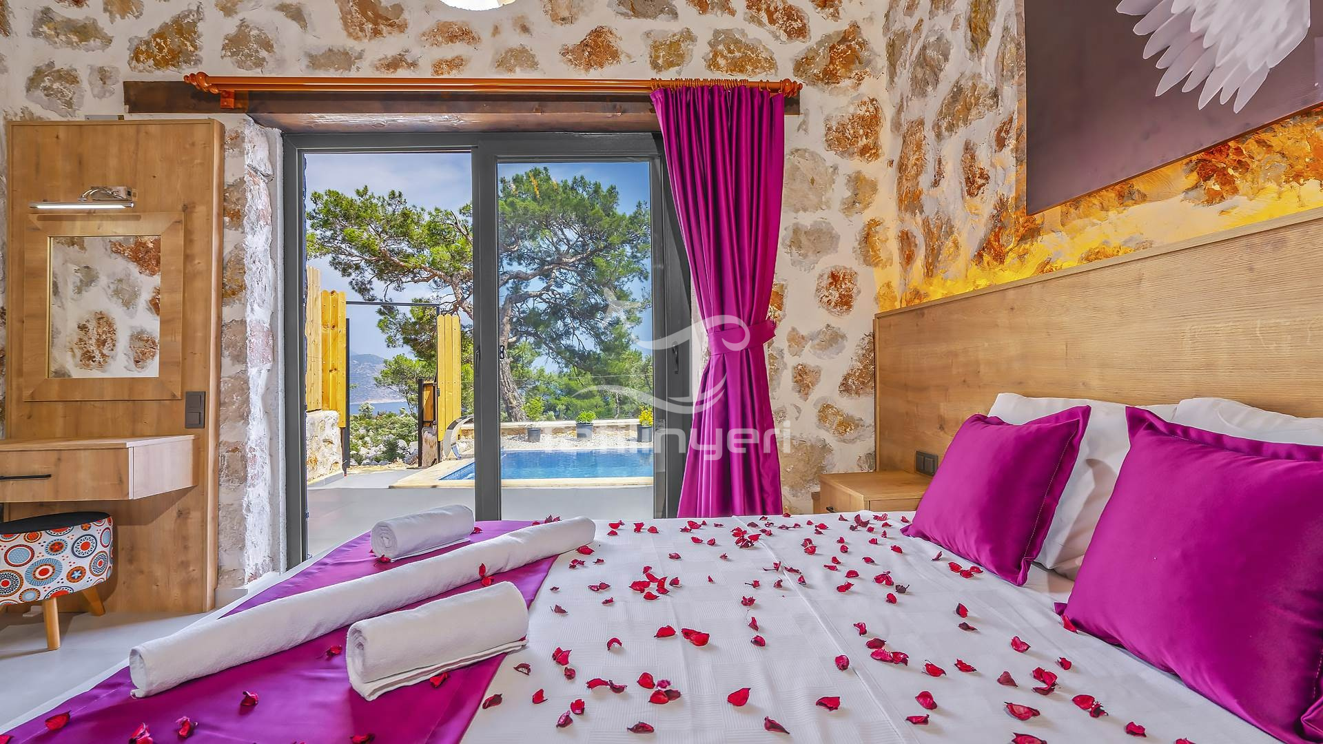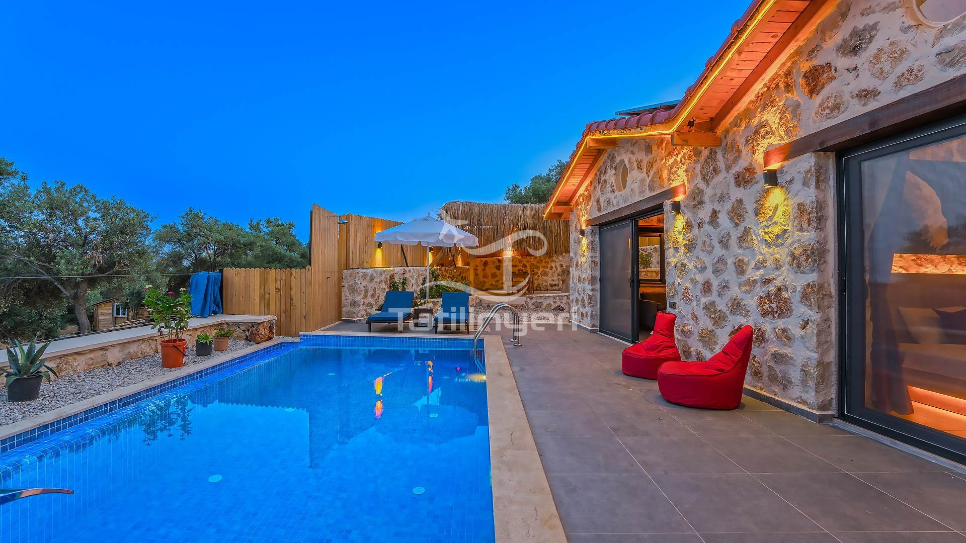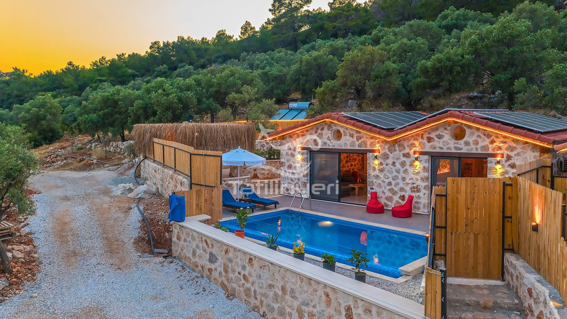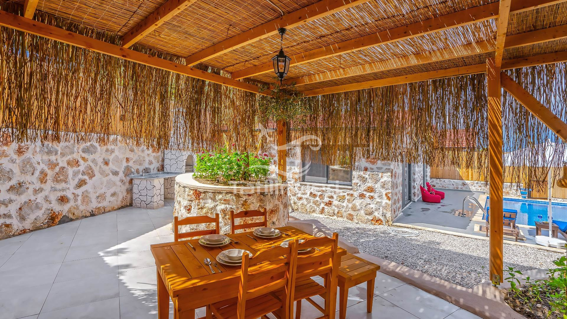 Kiralık tatil villamız tarihi ve doğal güzellikleriyle konuklarını cezbeden Patara Yalı bölgesinde deniz ve doğa manzarasına hakim bir konumda , taş ve ahşabın birbirini tamamladığı göz kamaştırıcı bir mimariye sahip olarak inşa edilmiştir. 1 yatak odalı, 2 kişi konaklama kapasitesine sahip olan villamızın havuz terasının tamamen korunaklı olması sebebi ile , muhafazakar villalar kategorisinde yer almaktadır. Suit yatak odasında çift kişilik jakuzisi bulunan villamız aynı zamanda balayı villası kiralamak isteyen çiftlerimiz için de son derece uygundur. Bütün yılın yorgunluğunu atabileceğiniz, gözlerden uzak sessiz bir tatil için villamız, siz değerli misafirlerine kapılarını aralamaktadır.