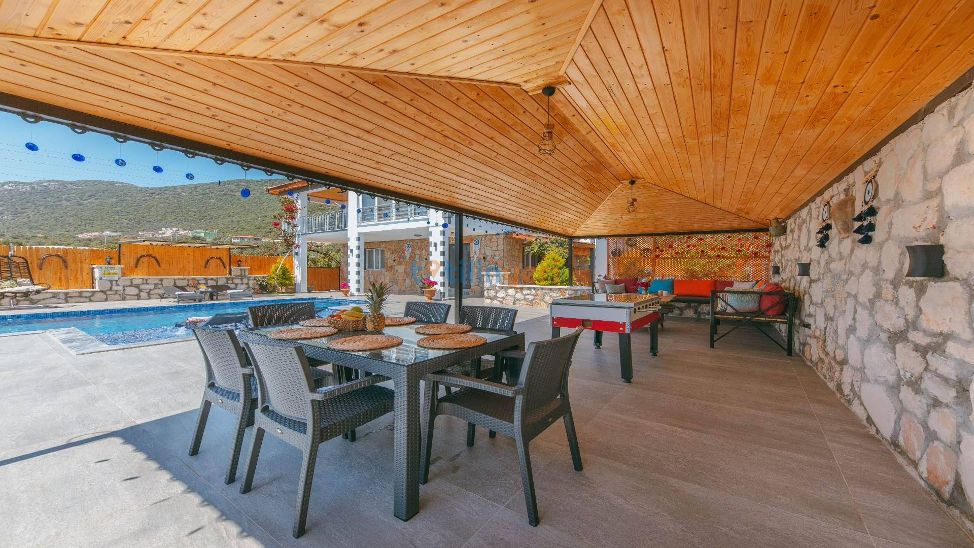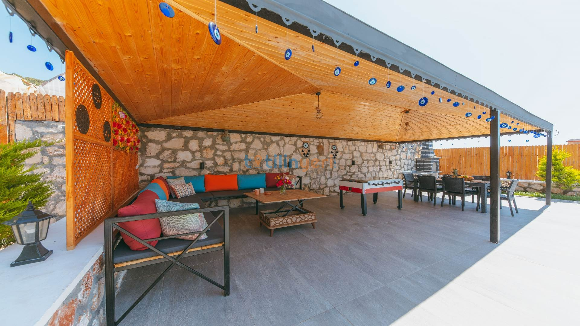 Antalya'nın Kaş bölgesinde yer alan Villa Merian, Sısla Tarafındadır. Bu lüks villada 2 yatak odası ile toplam 4 kişi konaklayabilir. Tüm odalarımız özenle tasarlanmış olup siz değerli misafirlerimize eşsiz bir tatil sunmaktadır. Deniz manzaralı villada eşinizle birlikte huzurlu ve eğlenceli bir tatil yaşayın!