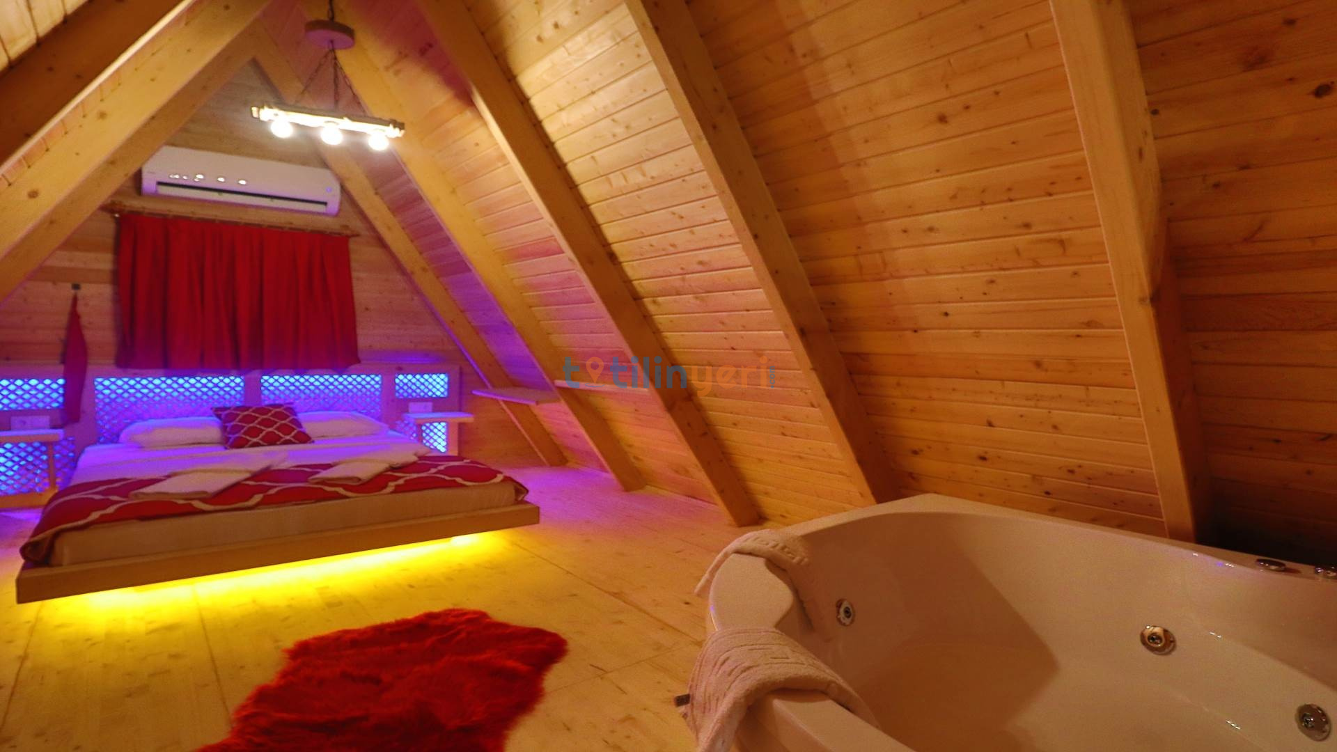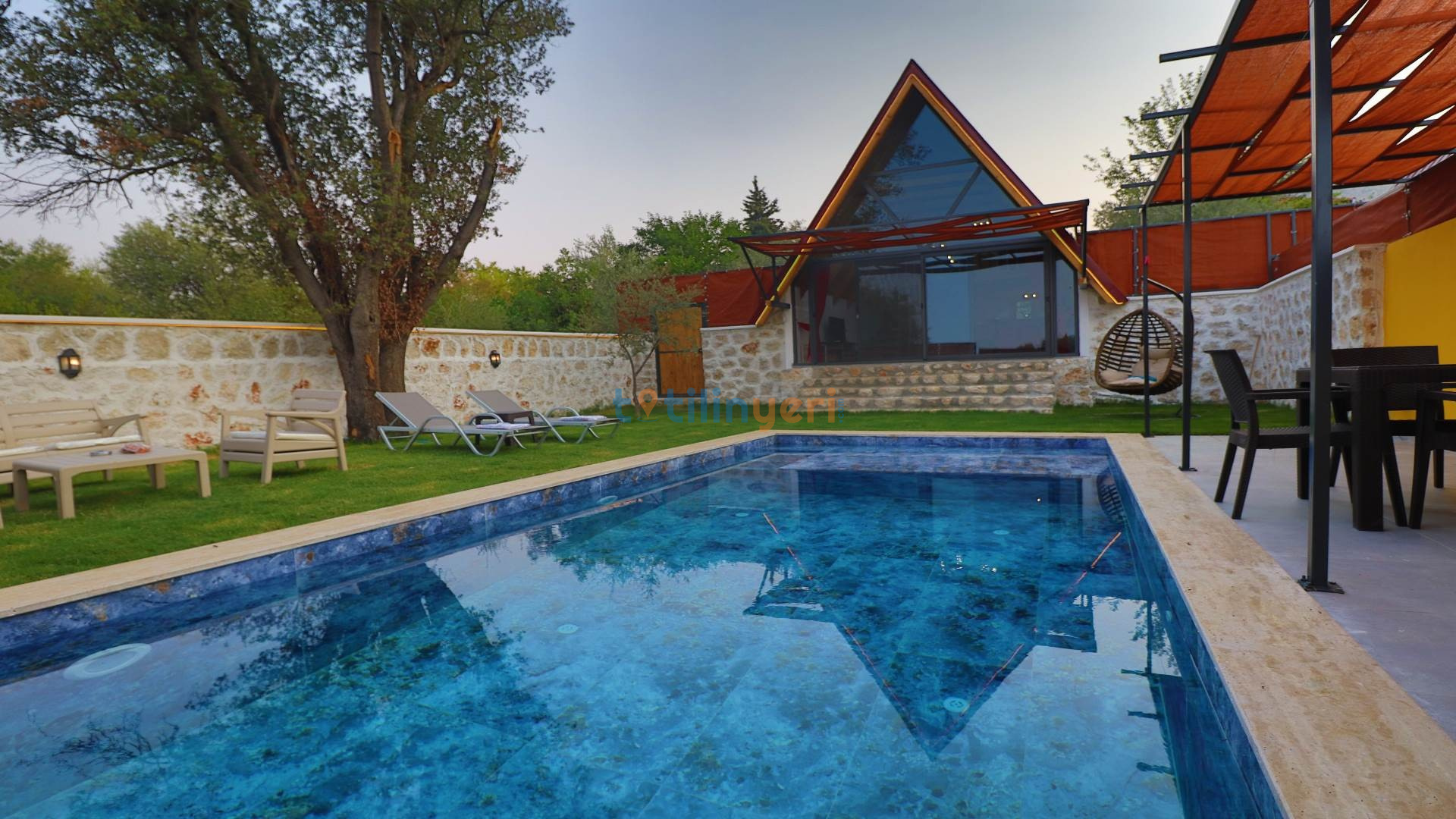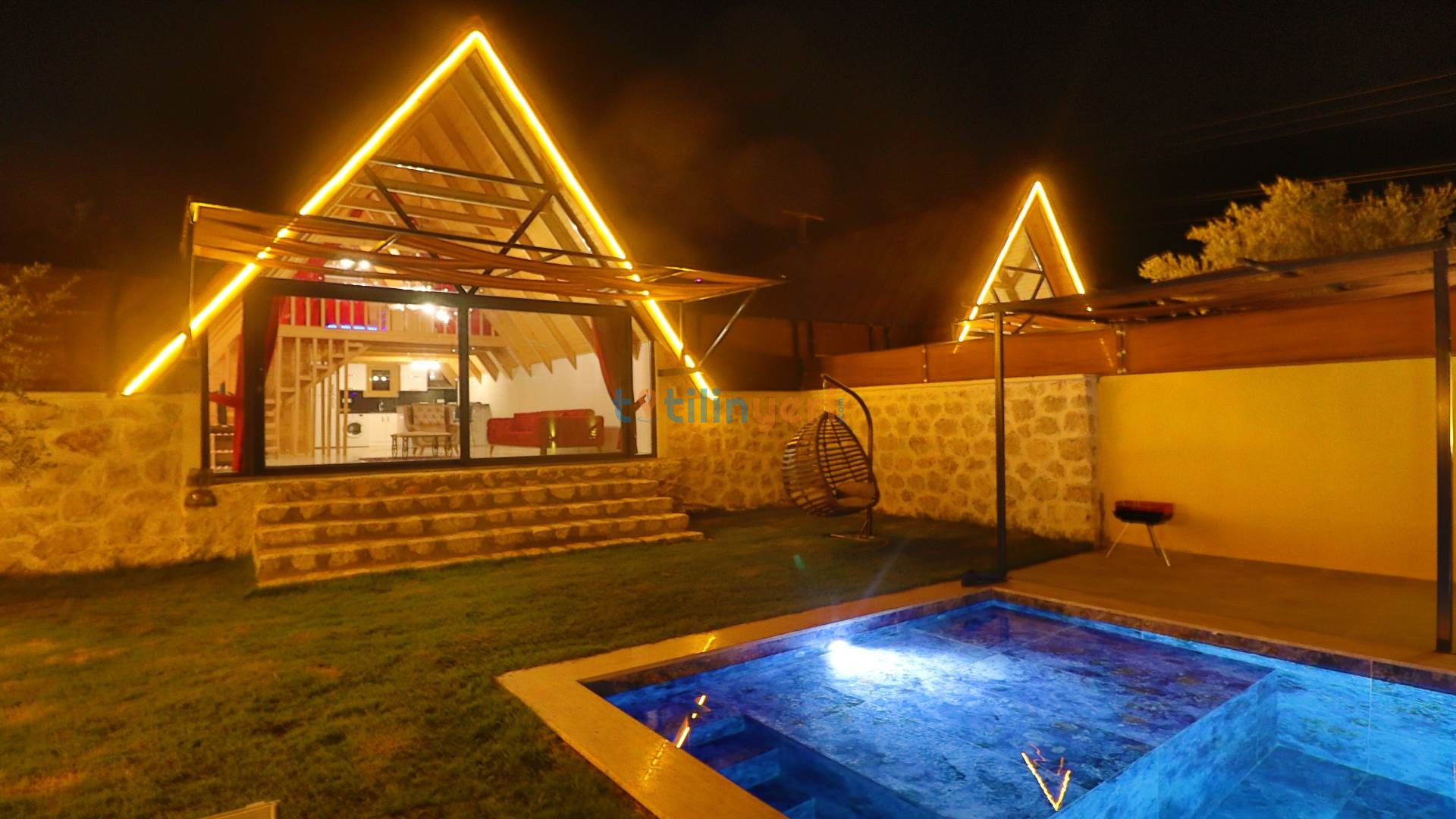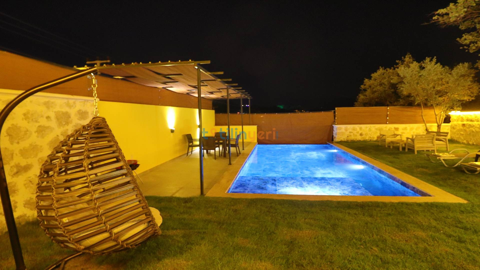 Yatak odasının bulunduğu asma katta jakuzi de bulunan villamızın havuz alanı korunaklıdır.