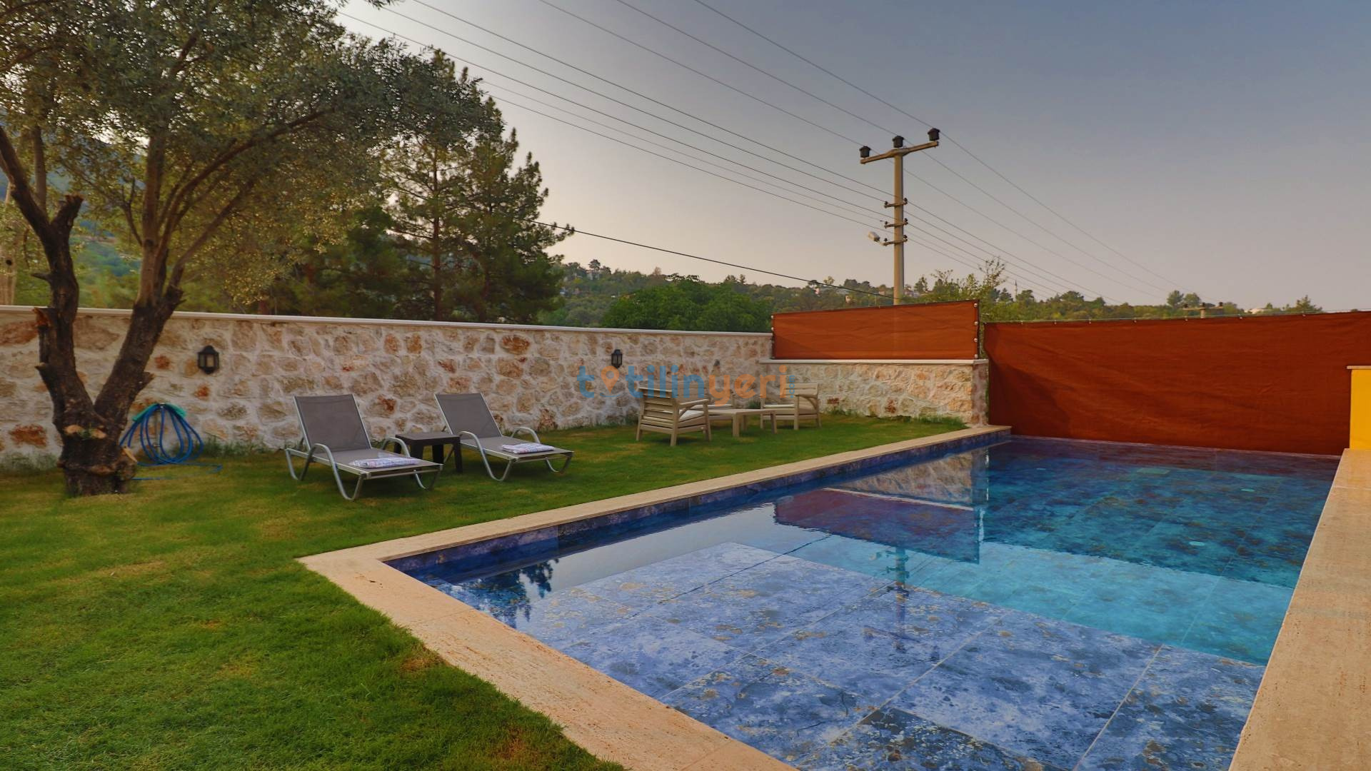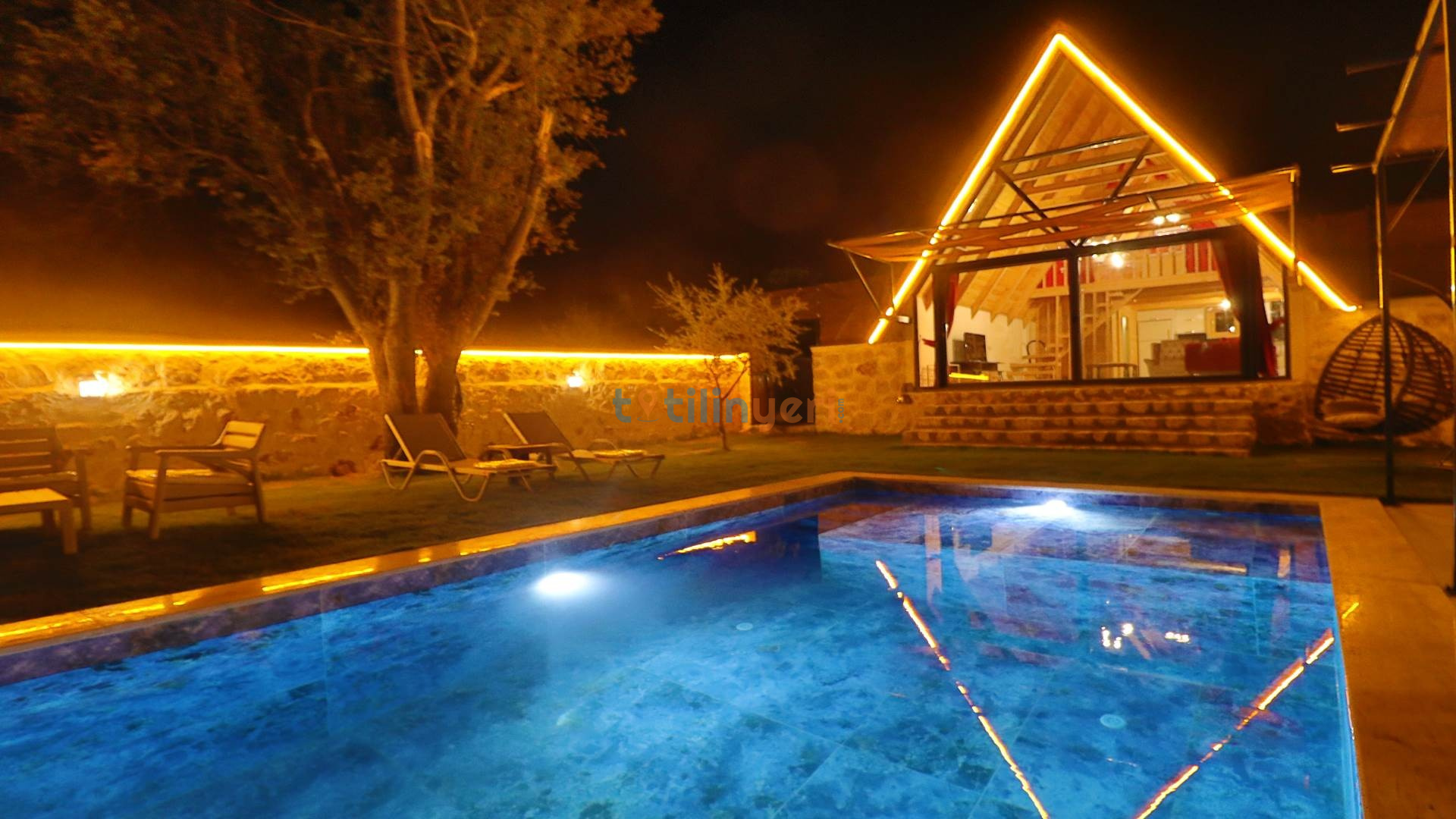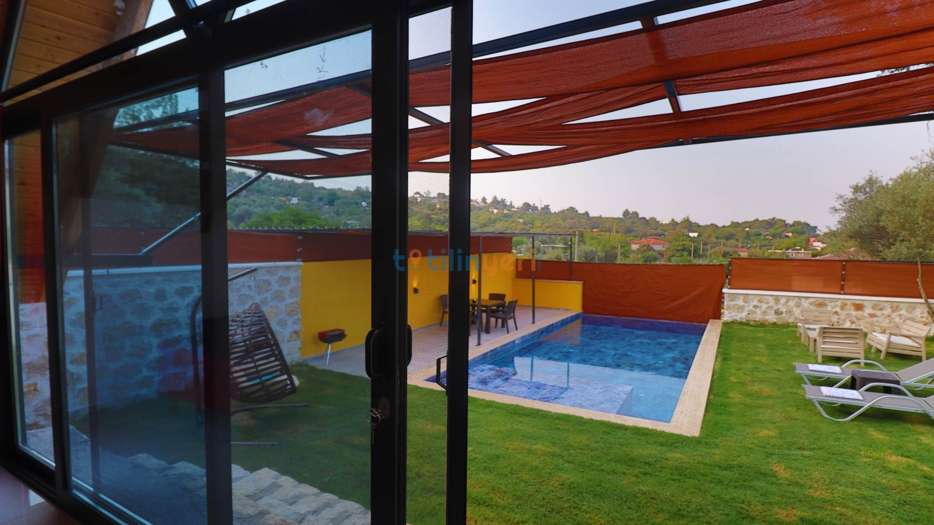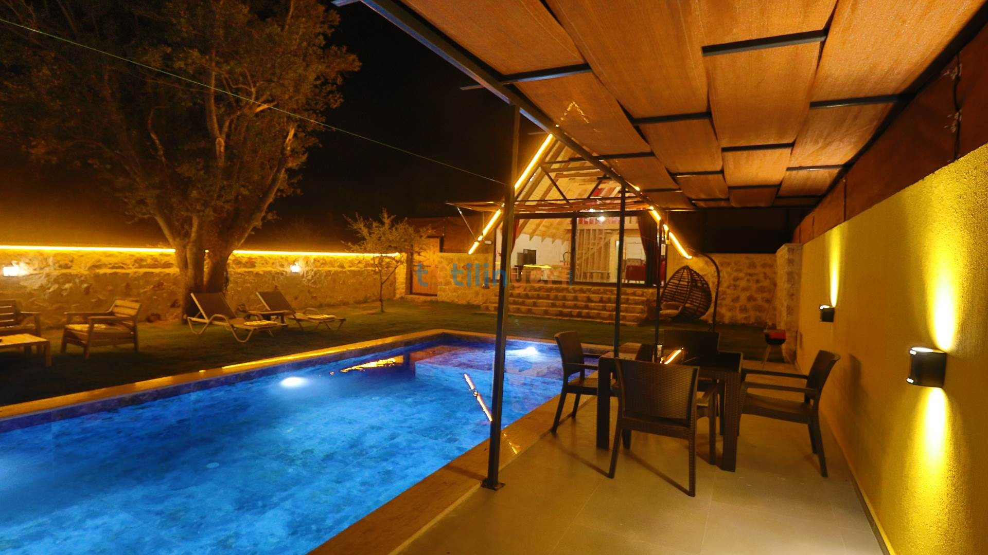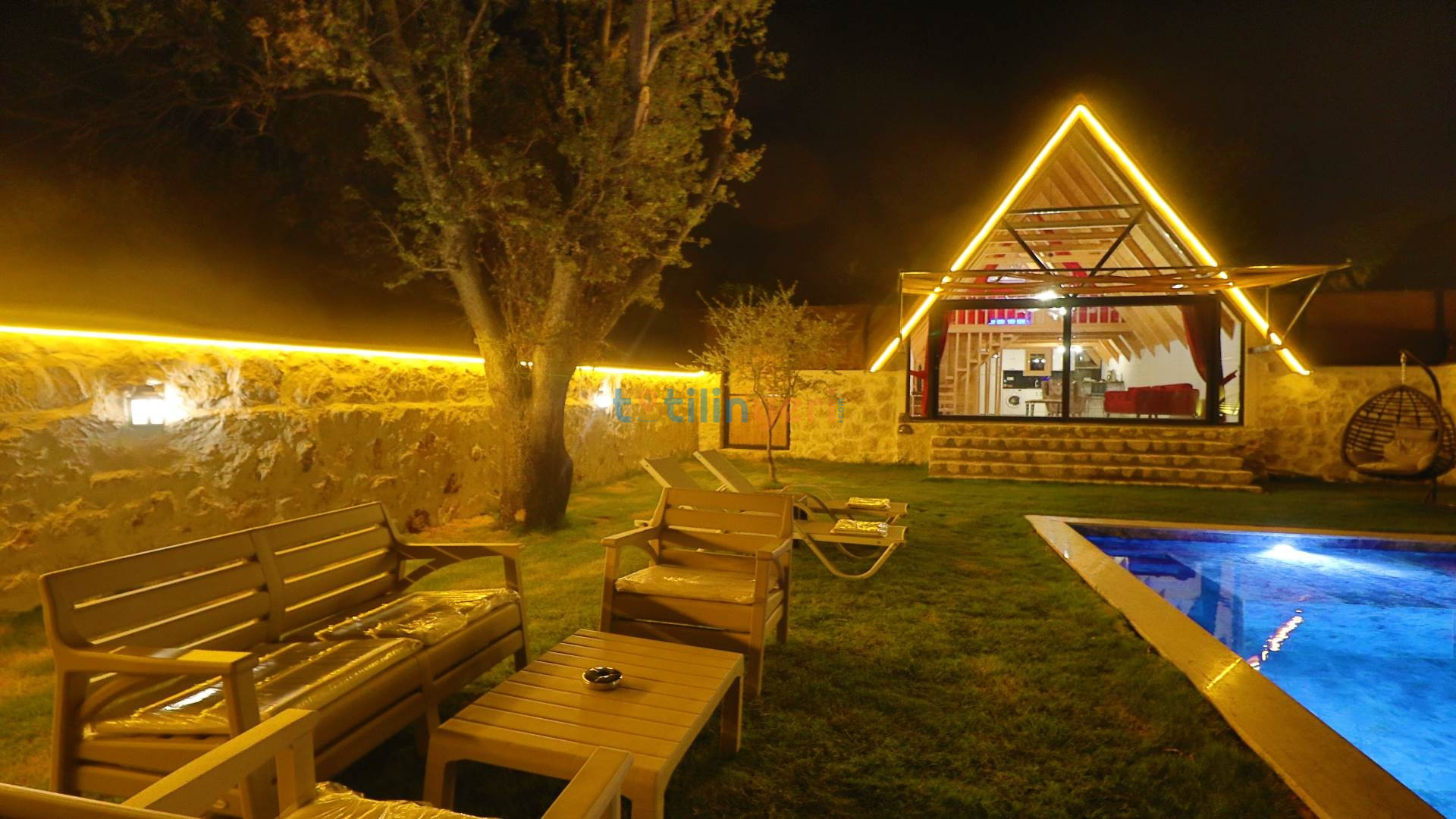 Yatak odasının bulunduğu asma katta jakuzi de bulunan villamızın havuz alanı korunaklıdır.