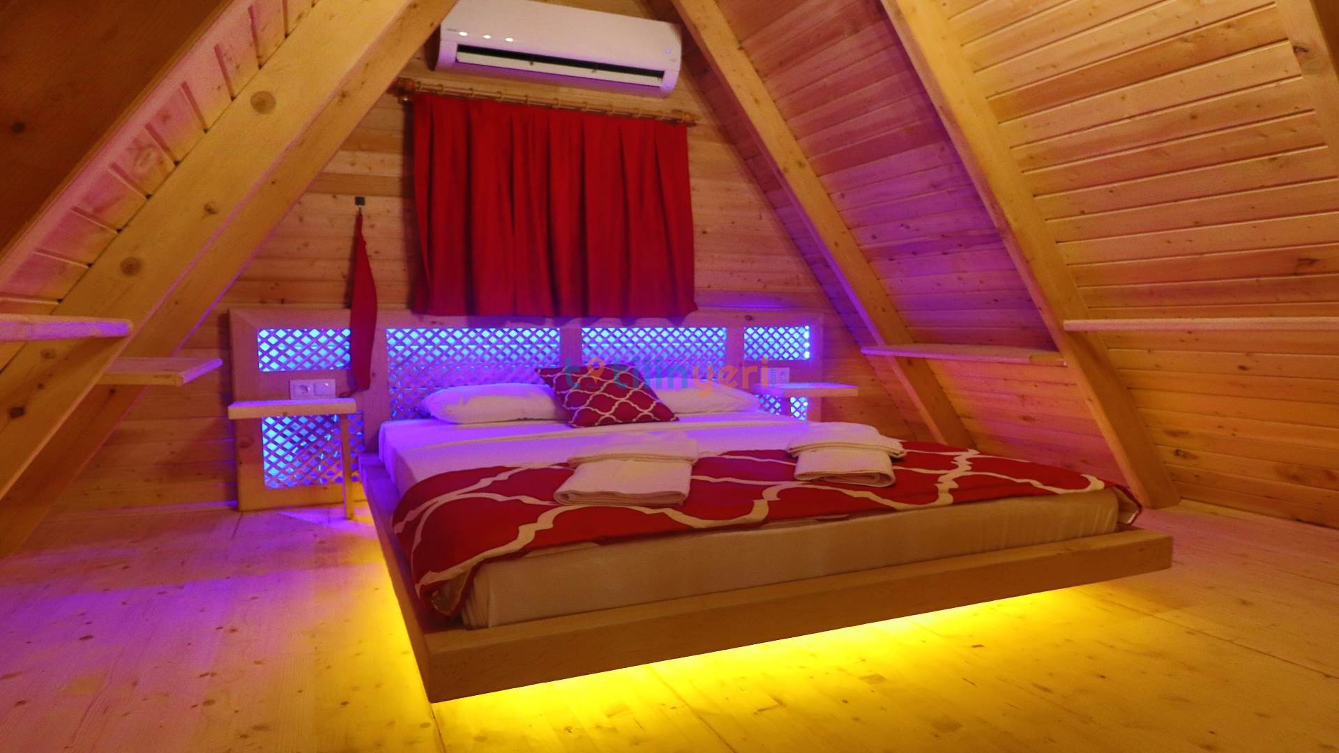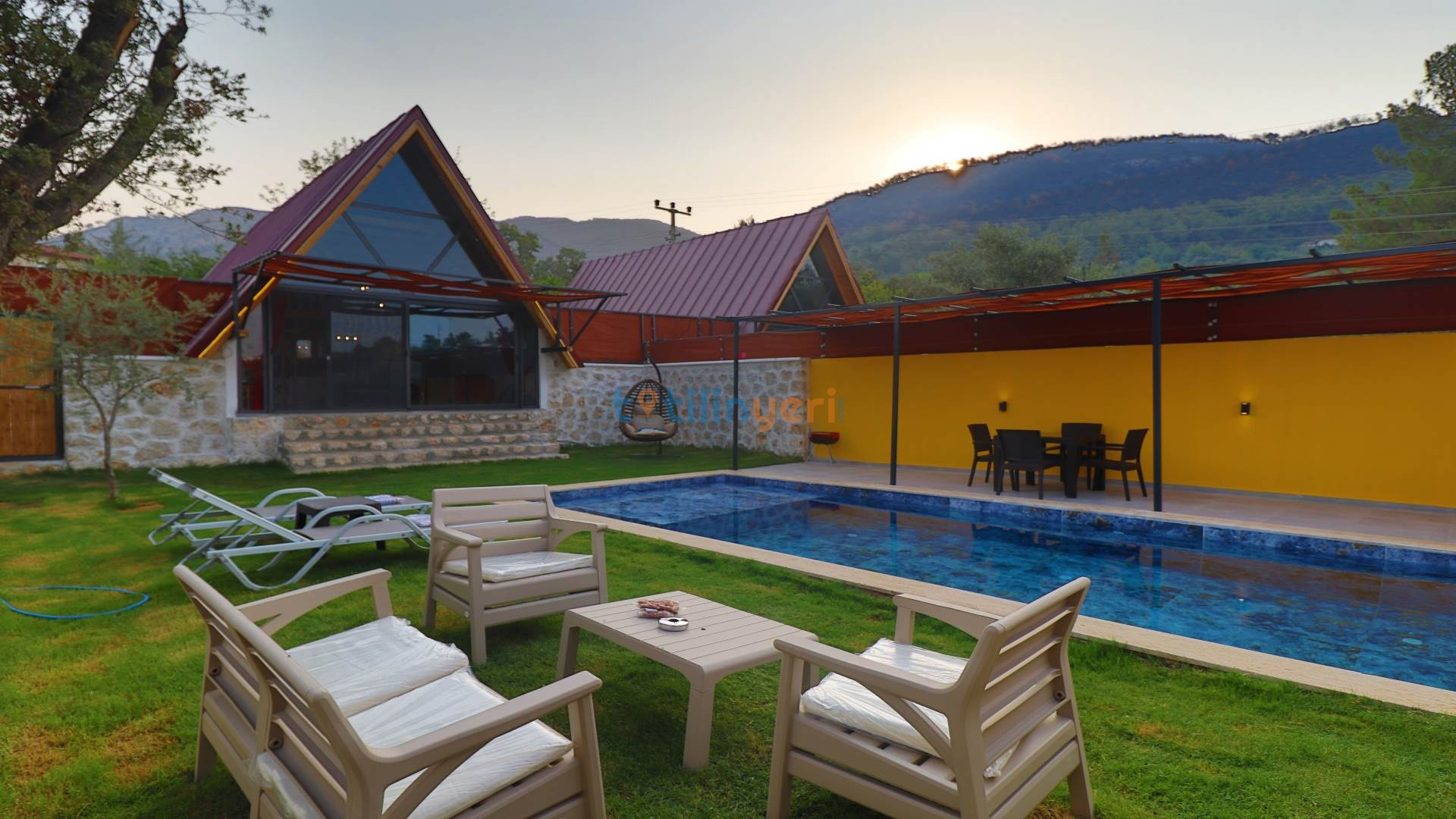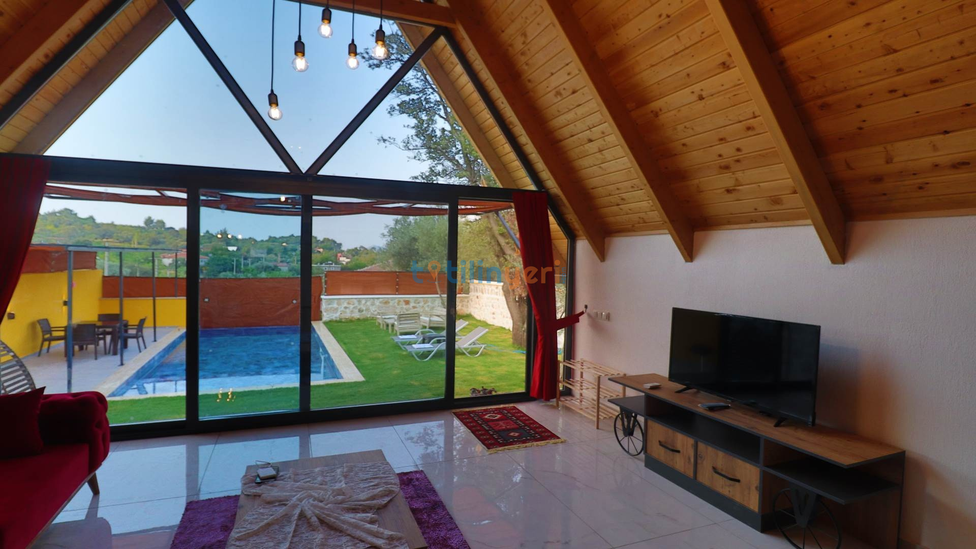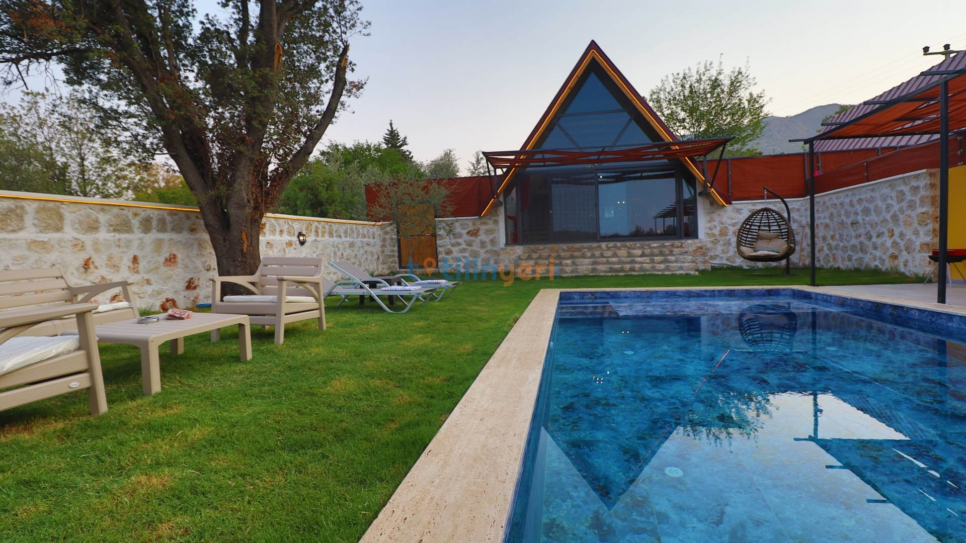 Yatak odasının bulunduğu asma katta jakuzi de bulunan villamızın havuz alanı korunaklıdır.