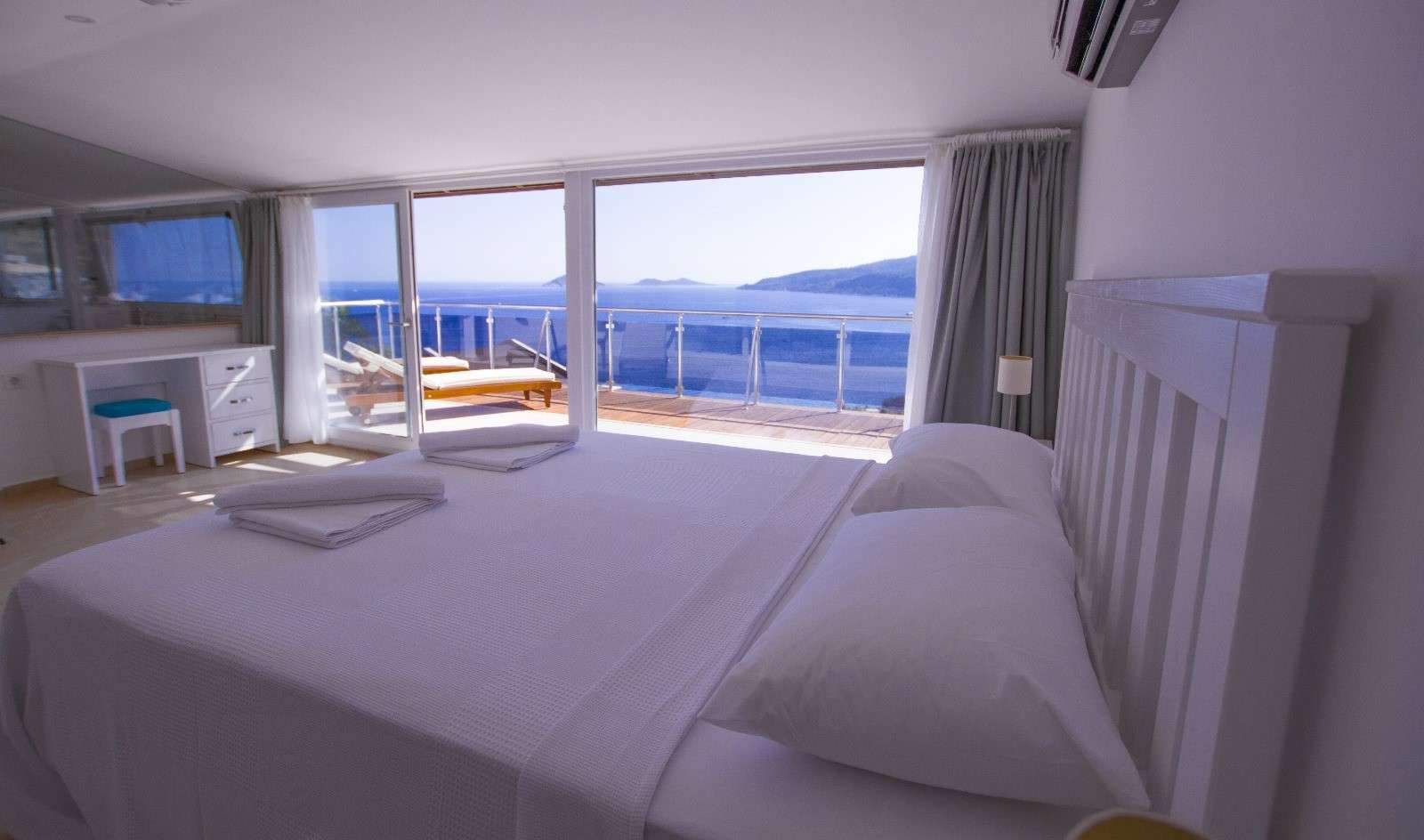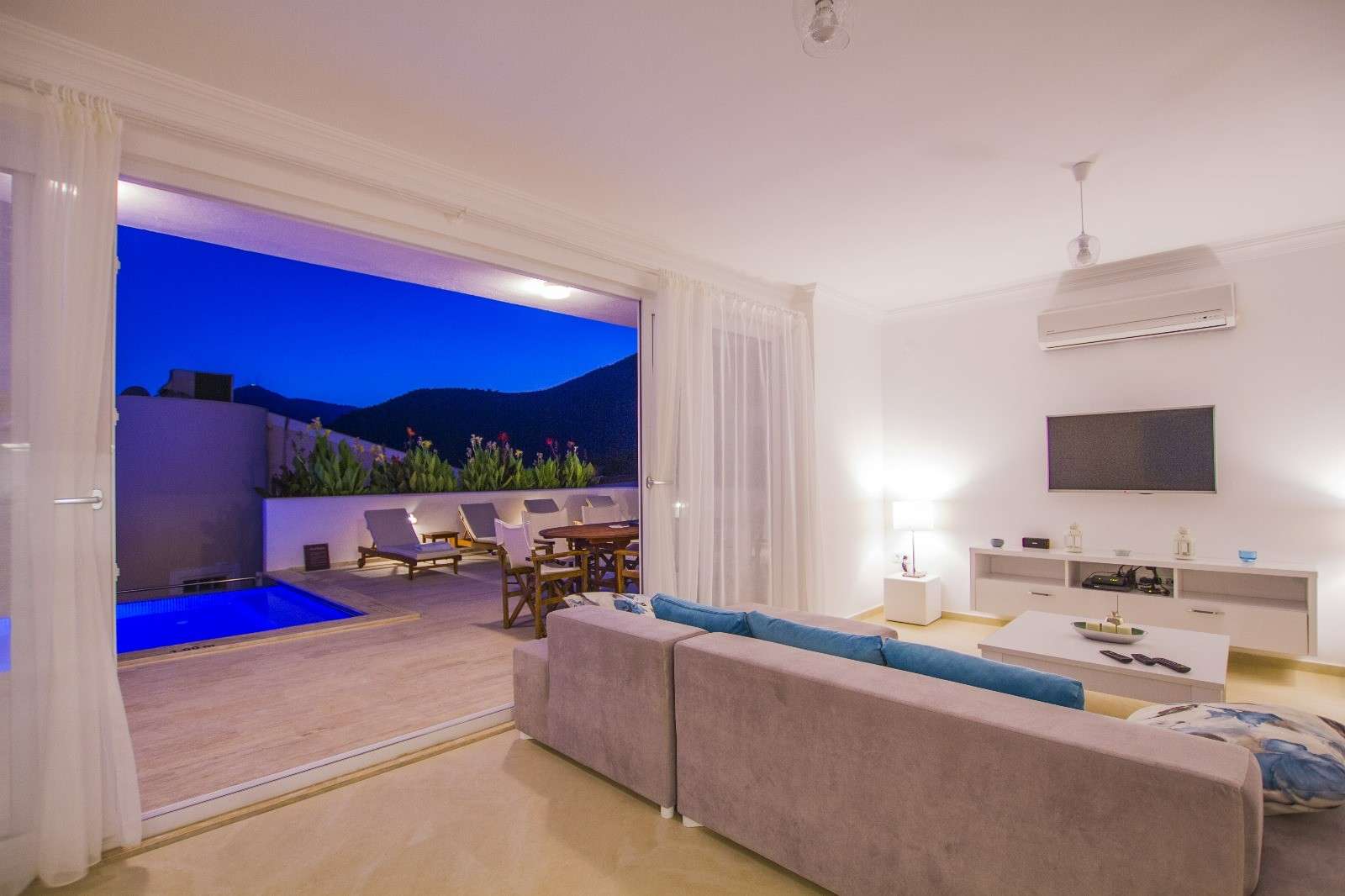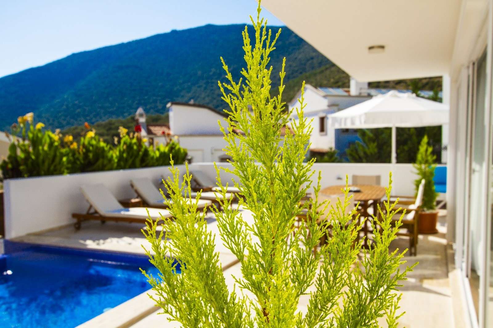 Geniş pencereleri sayesinde gün boyu doğal ışık alan villa, ferah bir atmosfer sunarken, özel havuzu ve geniş terası ile misafirlerine eşsiz bir dinlenme alanı sağlar. Villa, denize sadece 70 metre mesafede olup, yürüyerek kolayca sahile ulaşılabilir.