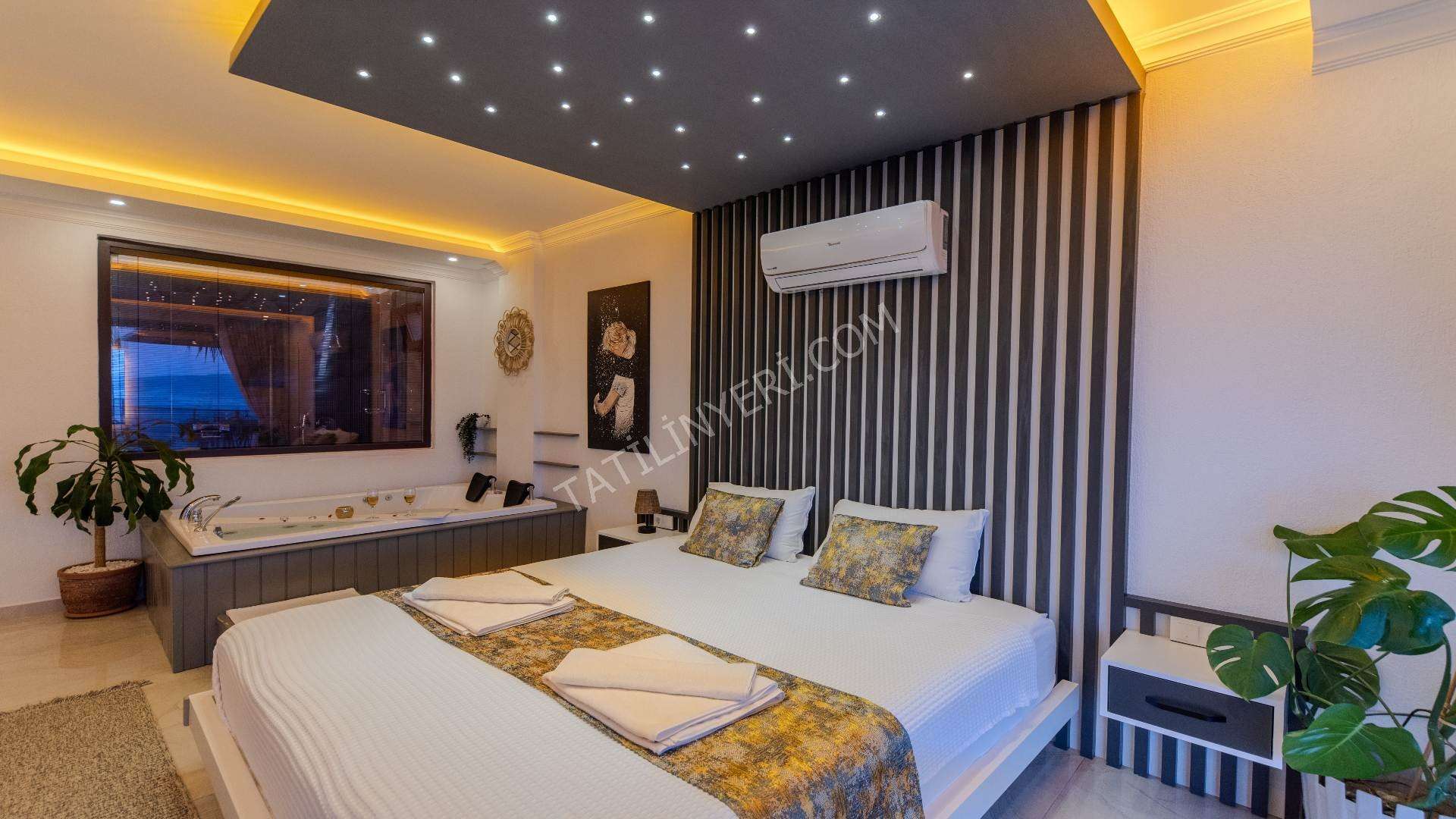 Villanın geniş bir bahçesi, tamamen korunaklı 12x4 metre boyutlarında özel bir havuzu bulunmaktadır. Suit yatak odasında yer alan jakuzi ve sauna, tatilinize ekstra keyif ve rahatlık katar.