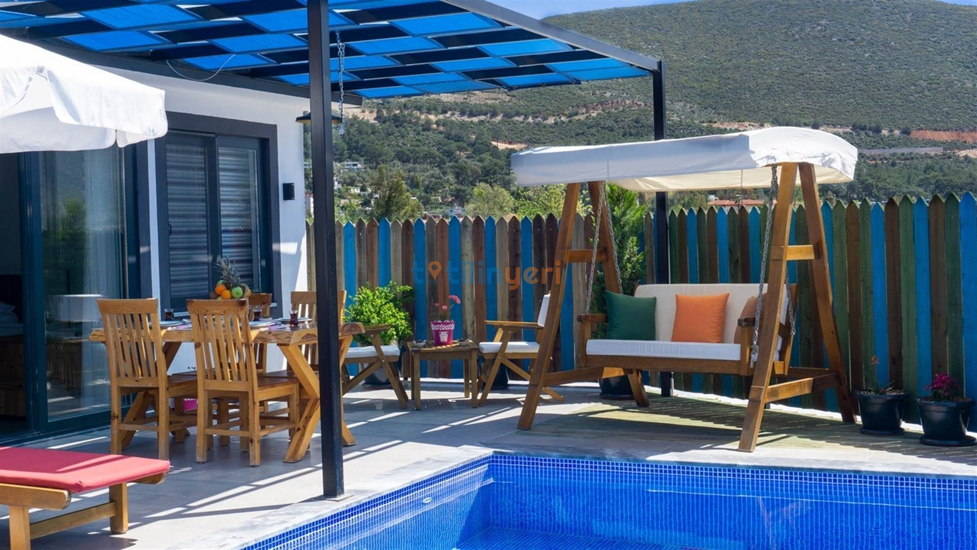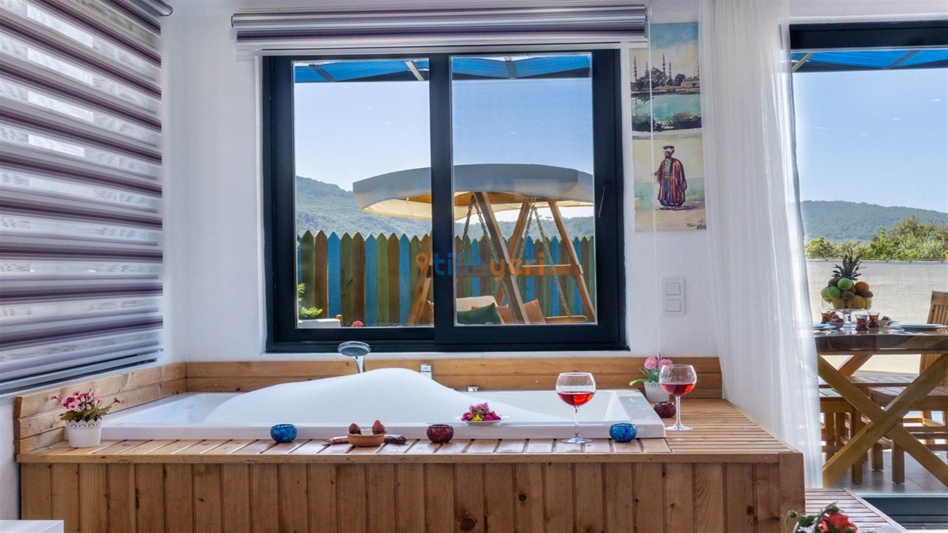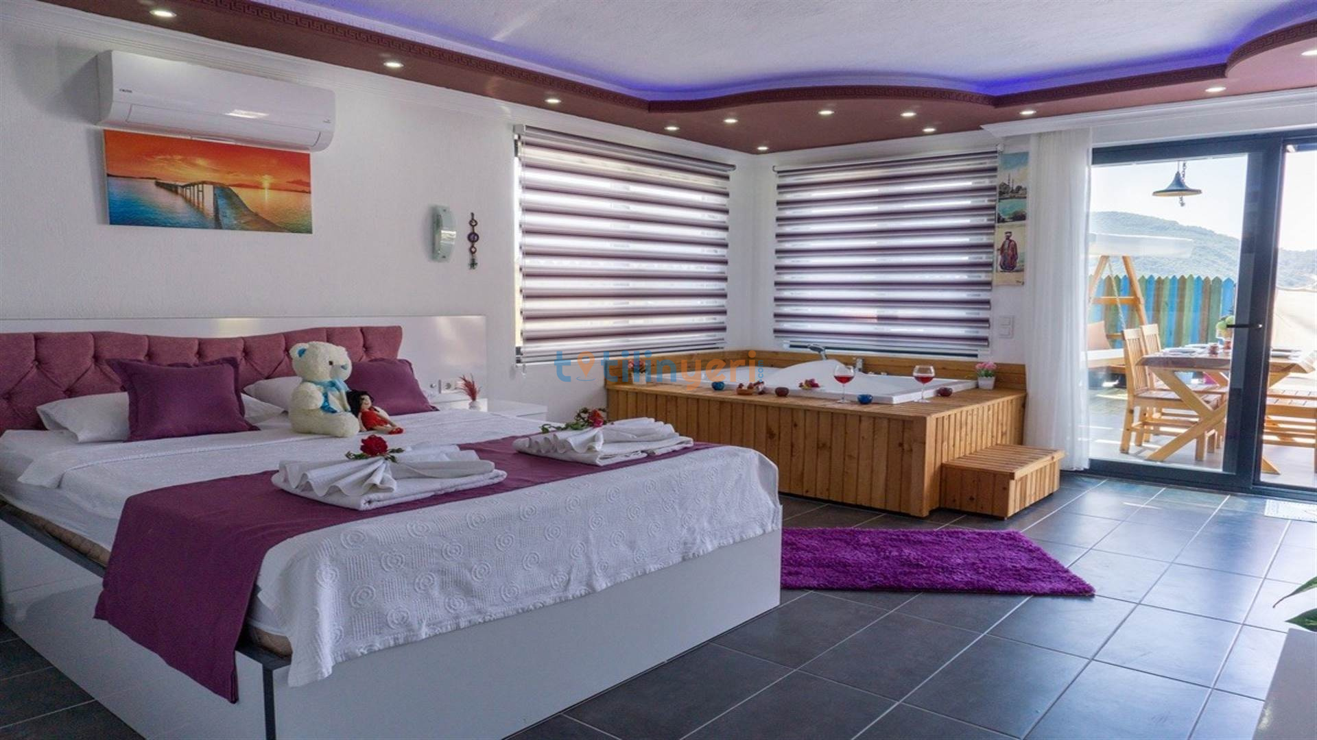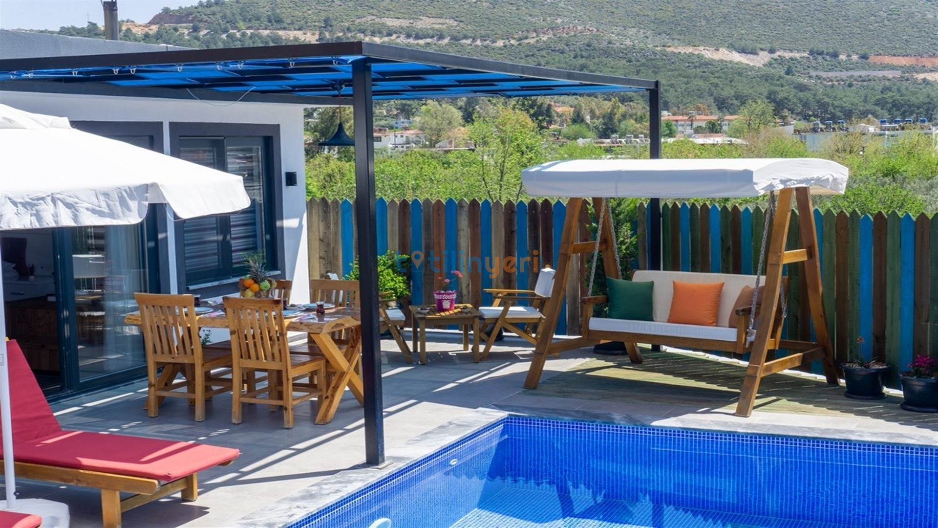 Özel havuzlu ve havuz alanı korunaklı villamız oldukça şirin bir dekorasyona sahiptir.Villamız özellikle balayı çiftlerine hitap etmekte ve villa içinde çiift kişilik jakuzi de yer almaktadır.