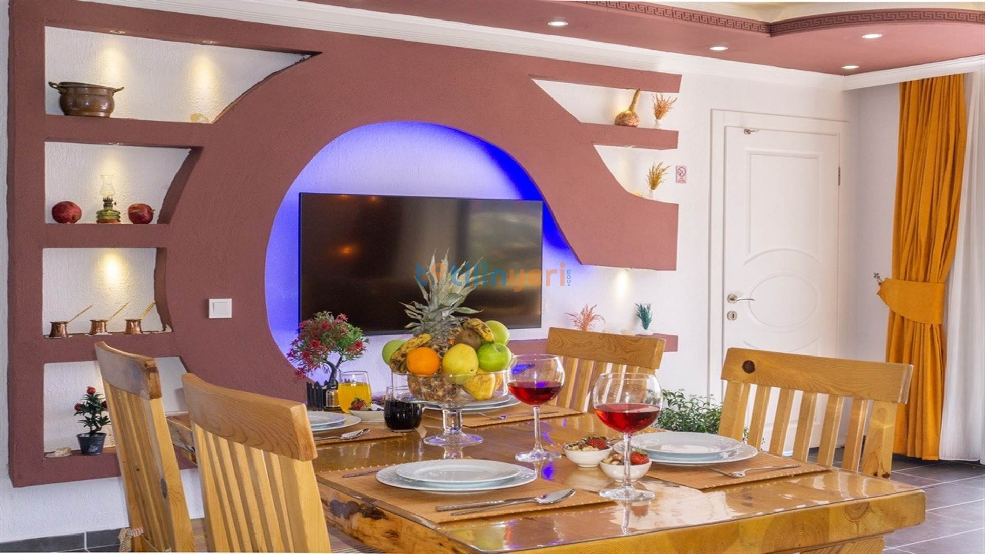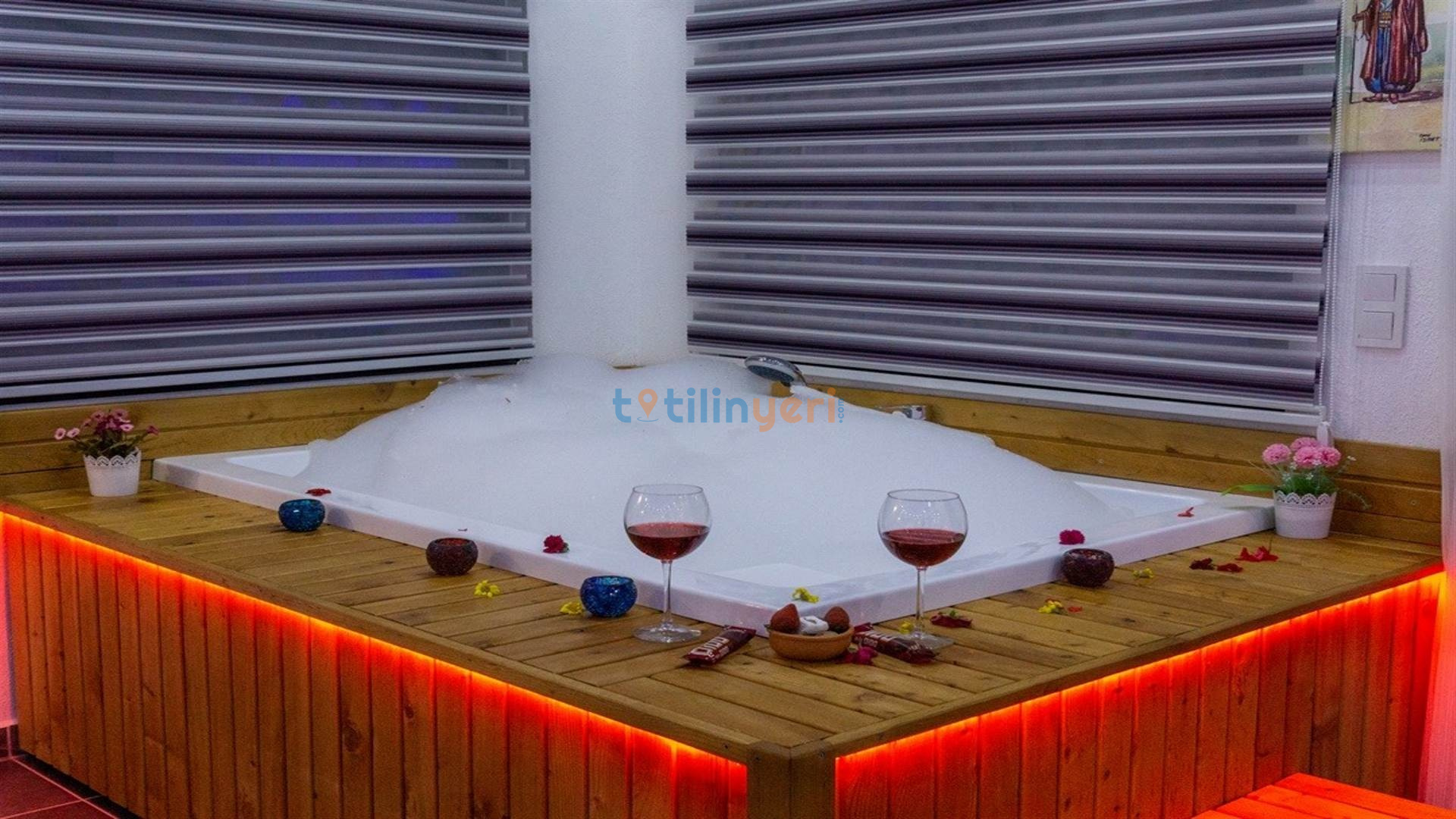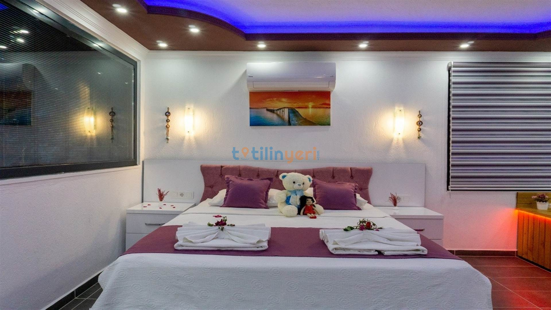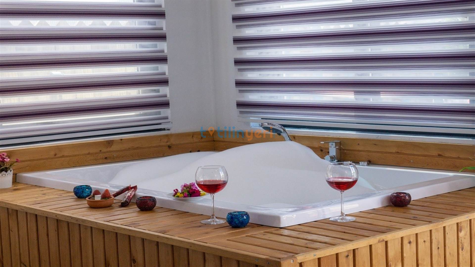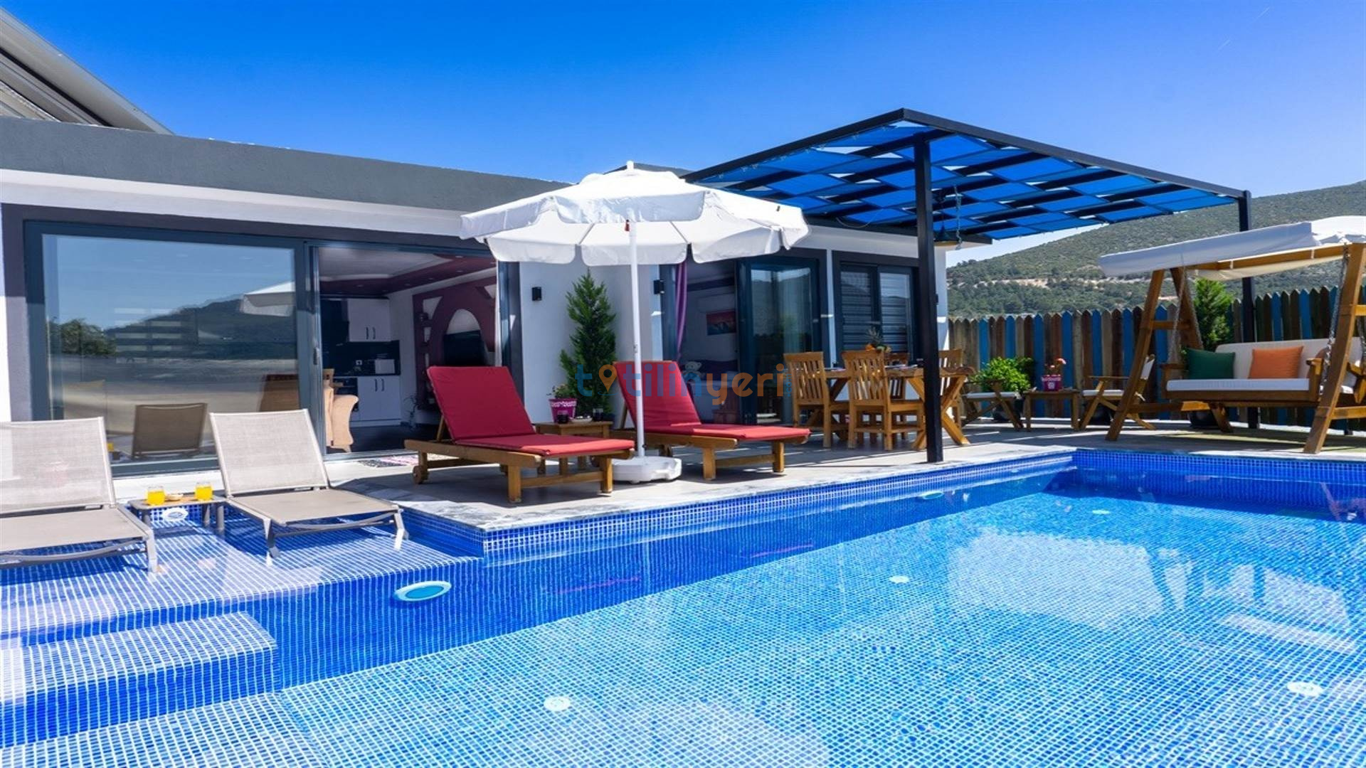 Özel havuzlu ve havuz alanı korunaklı villamız oldukça şirin bir dekorasyona sahiptir.Villamız özellikle balayı çiftlerine hitap etmekte ve villa içinde çiift kişilik jakuzi de yer almaktadır.