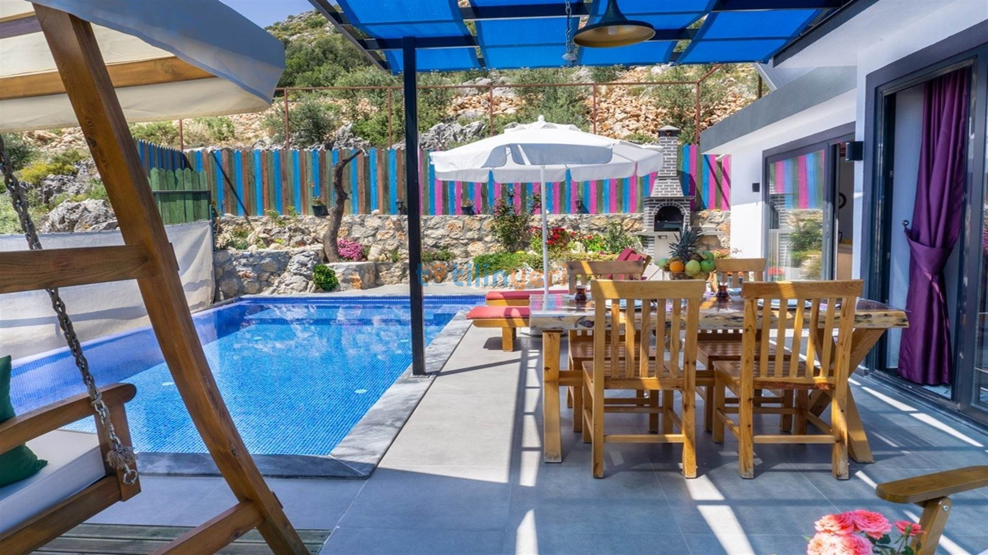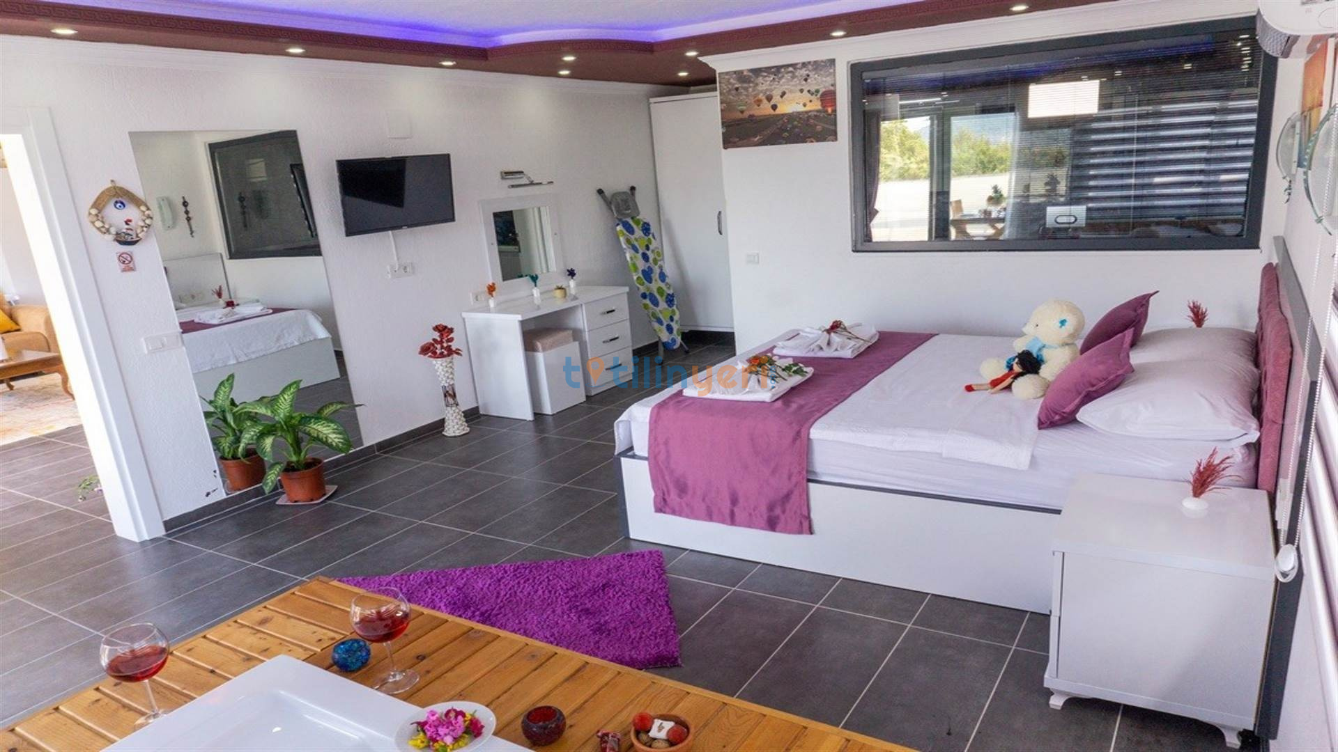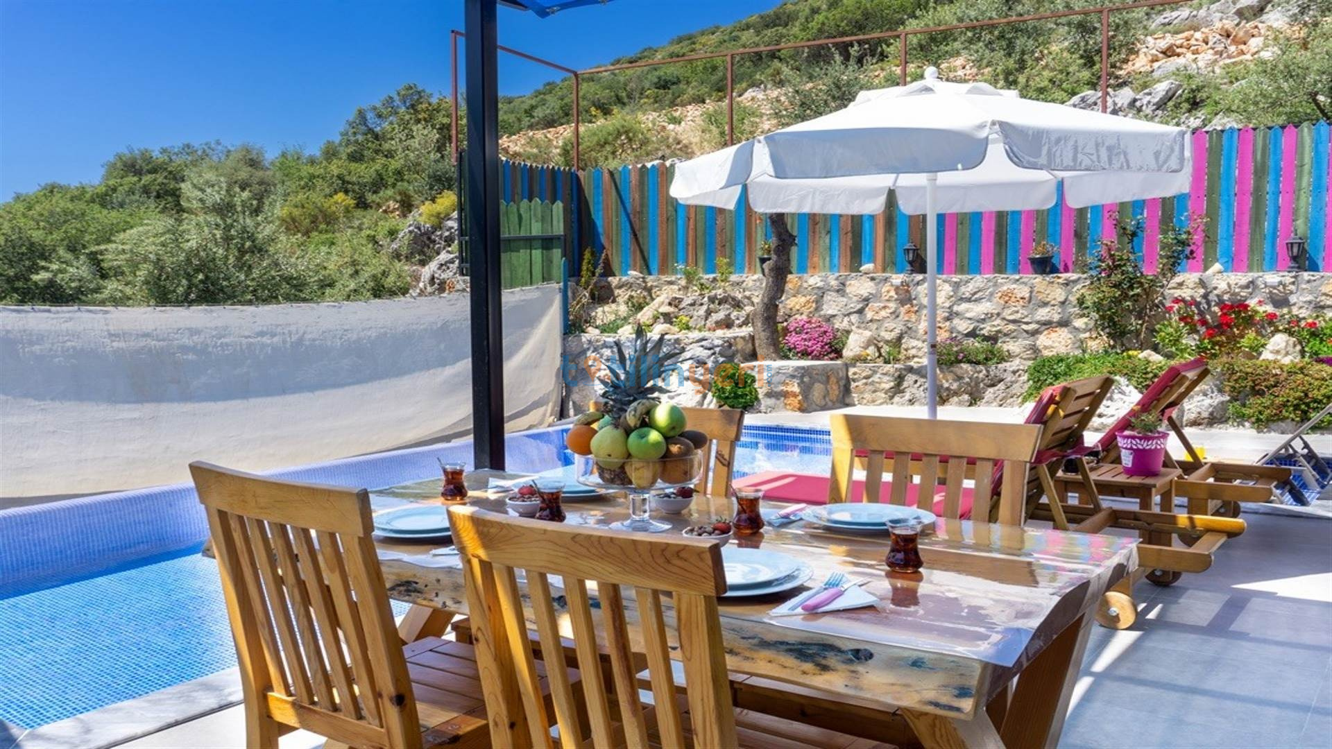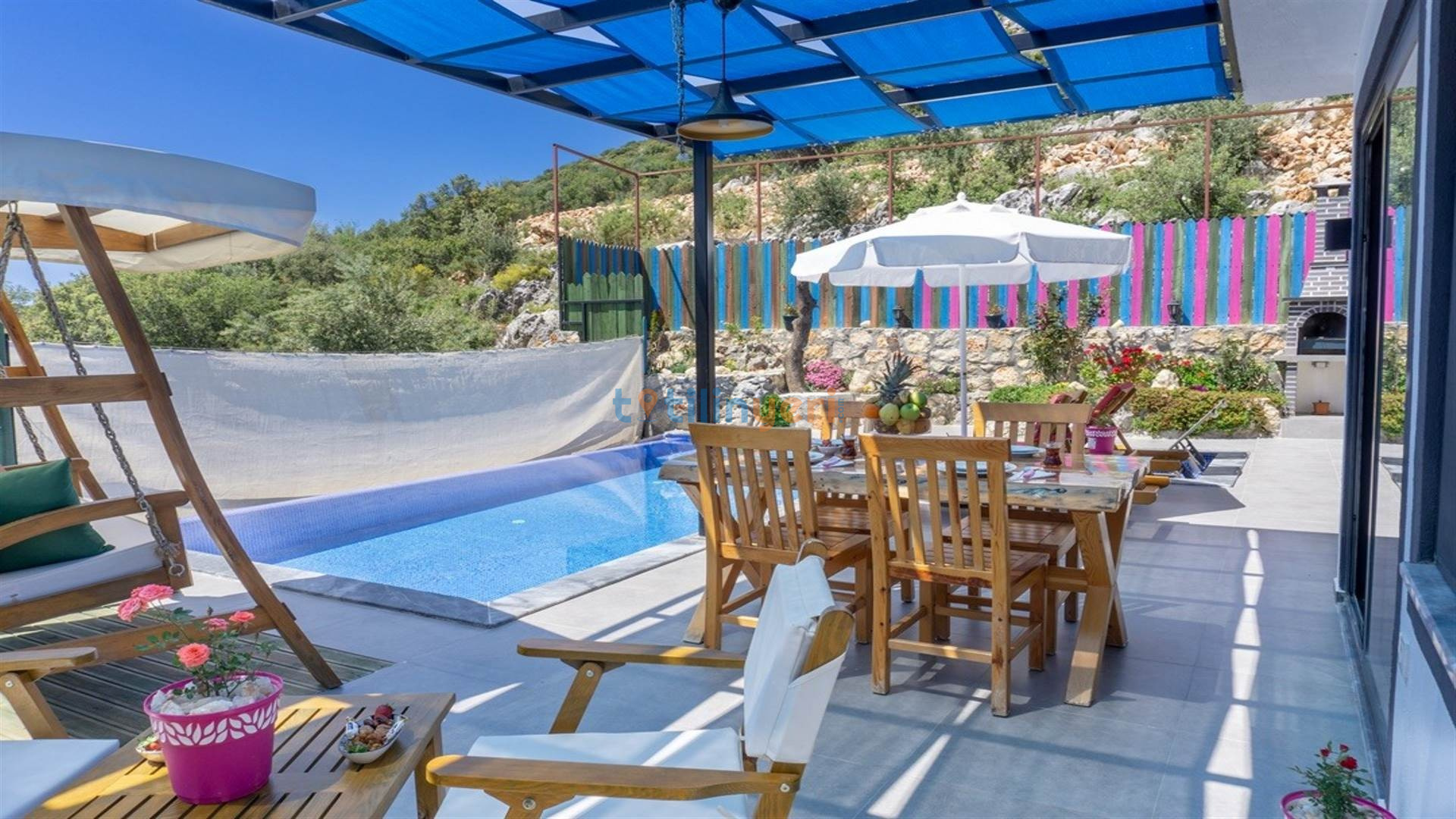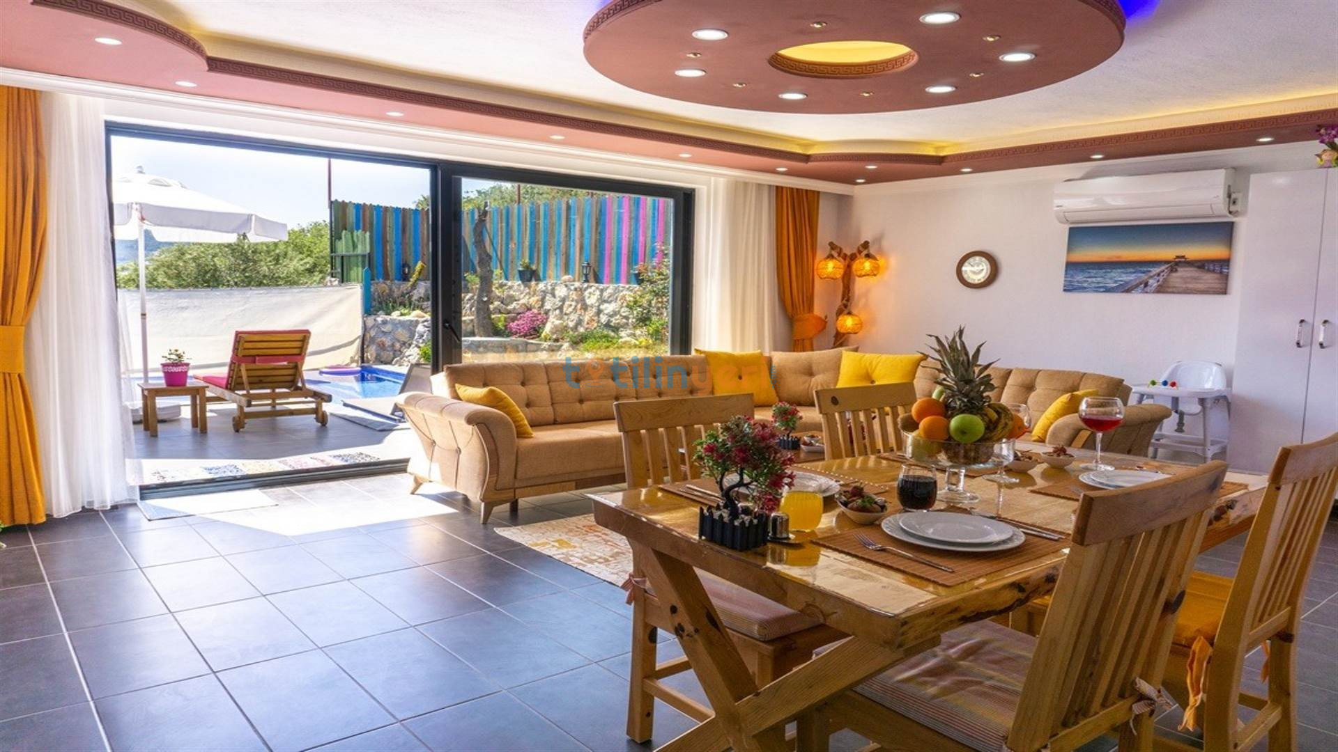 Özel havuzlu ve havuz alanı korunaklı villamız oldukça şirin bir dekorasyona sahiptir.Villamız özellikle balayı çiftlerine hitap etmekte ve villa içinde çiift kişilik jakuzi de yer almaktadır.