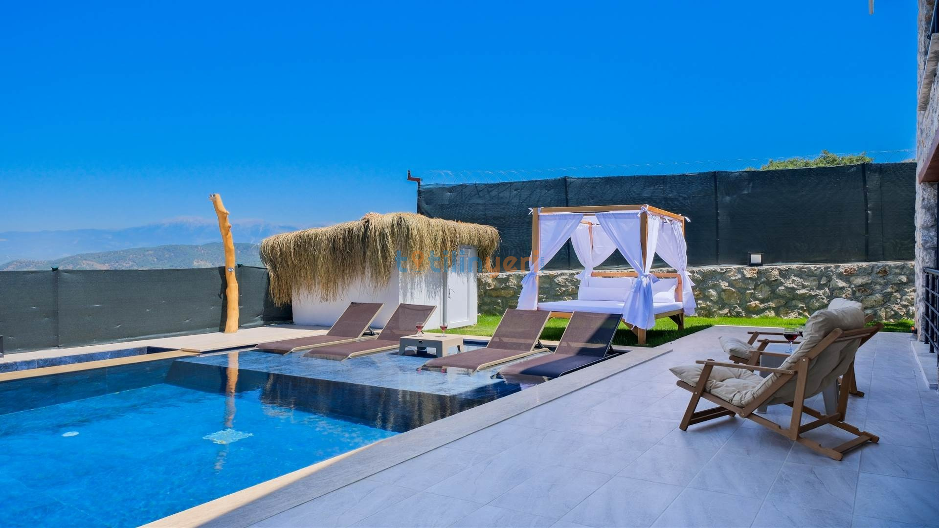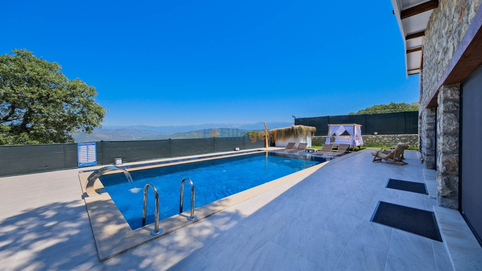 Villamız Fethiye Bozyer bölgesinde , doğa içerisinde Mendos dağının eteğinde, çam ağaçları ve zeytin ağaçlarının bulunduğu bir bölgede konumlanmış bir tatil villamızdır. Sezsizlik, sakinlik arayanlar için eşsiz bir yerdir. 2 yatak odası ve 4 kişi konaklama kapasitesine sahiptir. Açık mutfaklı, modern ve kullanışlı bir salon ve salondan havuz kenarına direkt çıkış bulunmaktadır. Keyifli bir tatil geçirebilmeniz için her türlü detayın düşünüldüğü villamızın kendine ait özel yüzme havuzu ve bahçesi bulunmaktadır. Köy yerleşim alanına 500 mt. mesafededir. Çevre yoluna 3 km mesafededir.