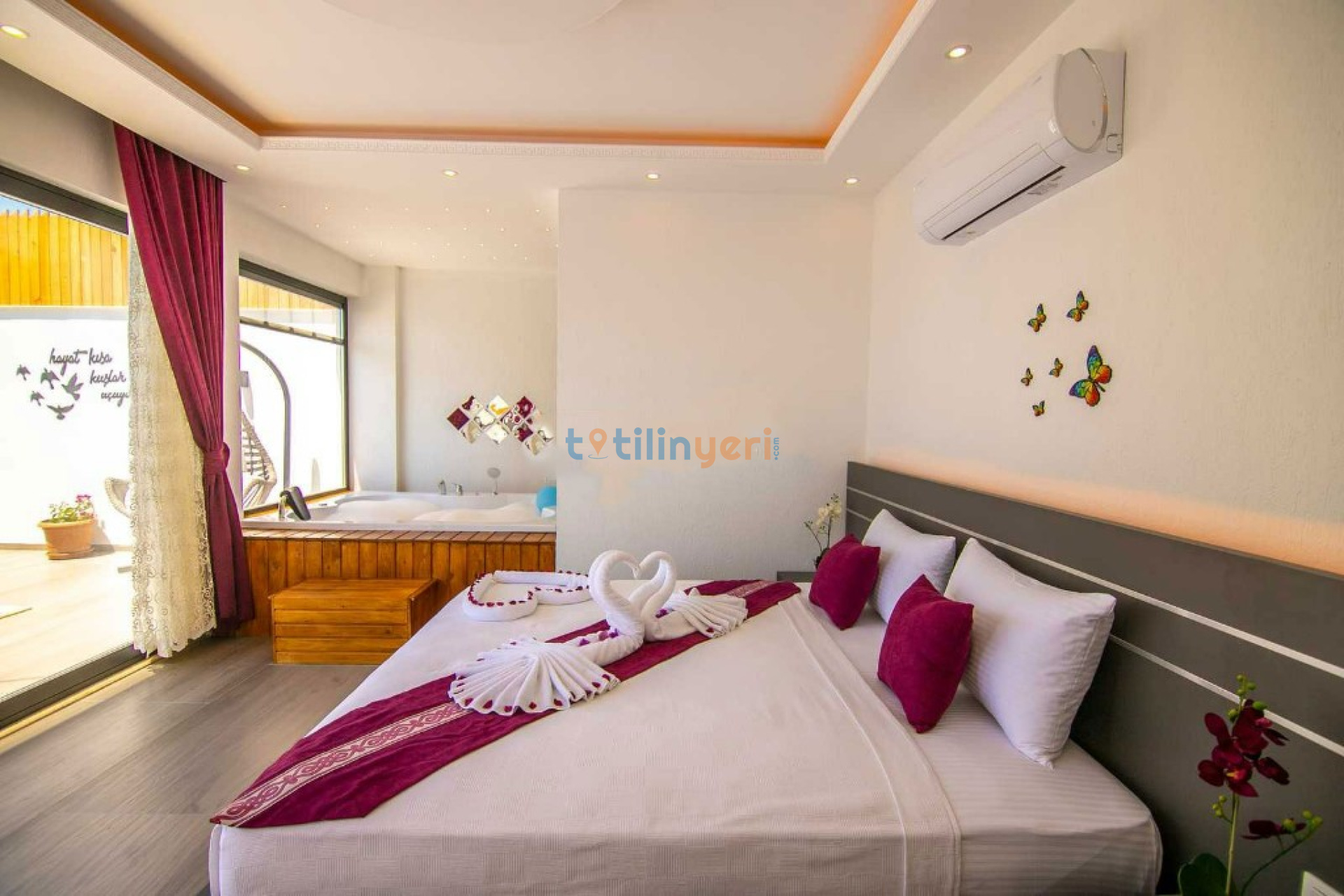 Villa Şanlı Kalkan Üzümlü mevkisinde bulunan kiralık muhafazakar villa, doğa içinde , sessiz sakin bir konumda tatil isteyen çiftlerimiz ve ailelerimiz için oldukça uygun bir seçenektir. Villa Şanlı, 2 yatak odası ile 4 kişilik konaklama kapasitesine sahiptir. Villa Şanlı, muhafazakar aileler için tam korunaklı havuz terasına sahiptir. Ayrıca balayı çiftlerimize suit yatak odasında jakuzi konforu sunmaktadır.Ayrıca bu villamız, sinema odası ve oyun aktiviteleri sayesinde siz değerli misafirlerimize keyifli bir tatilin kapılarını aralıyor.