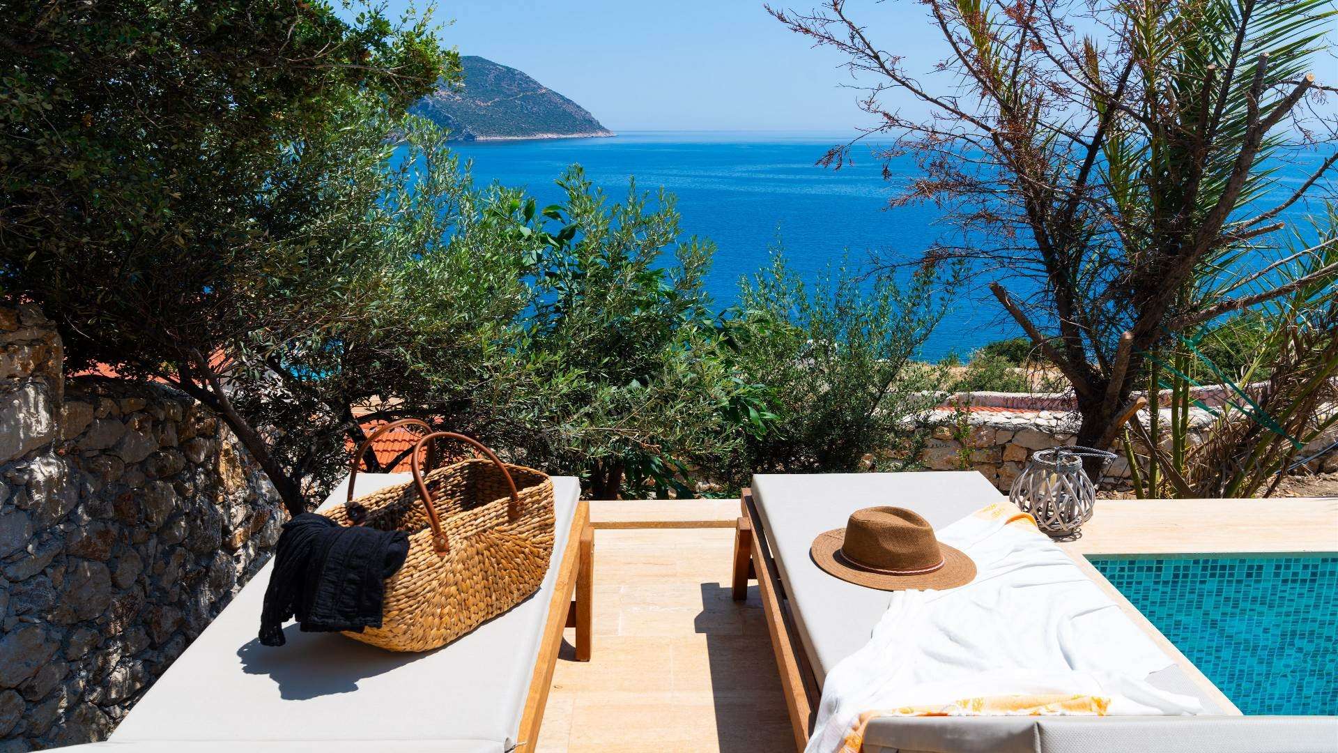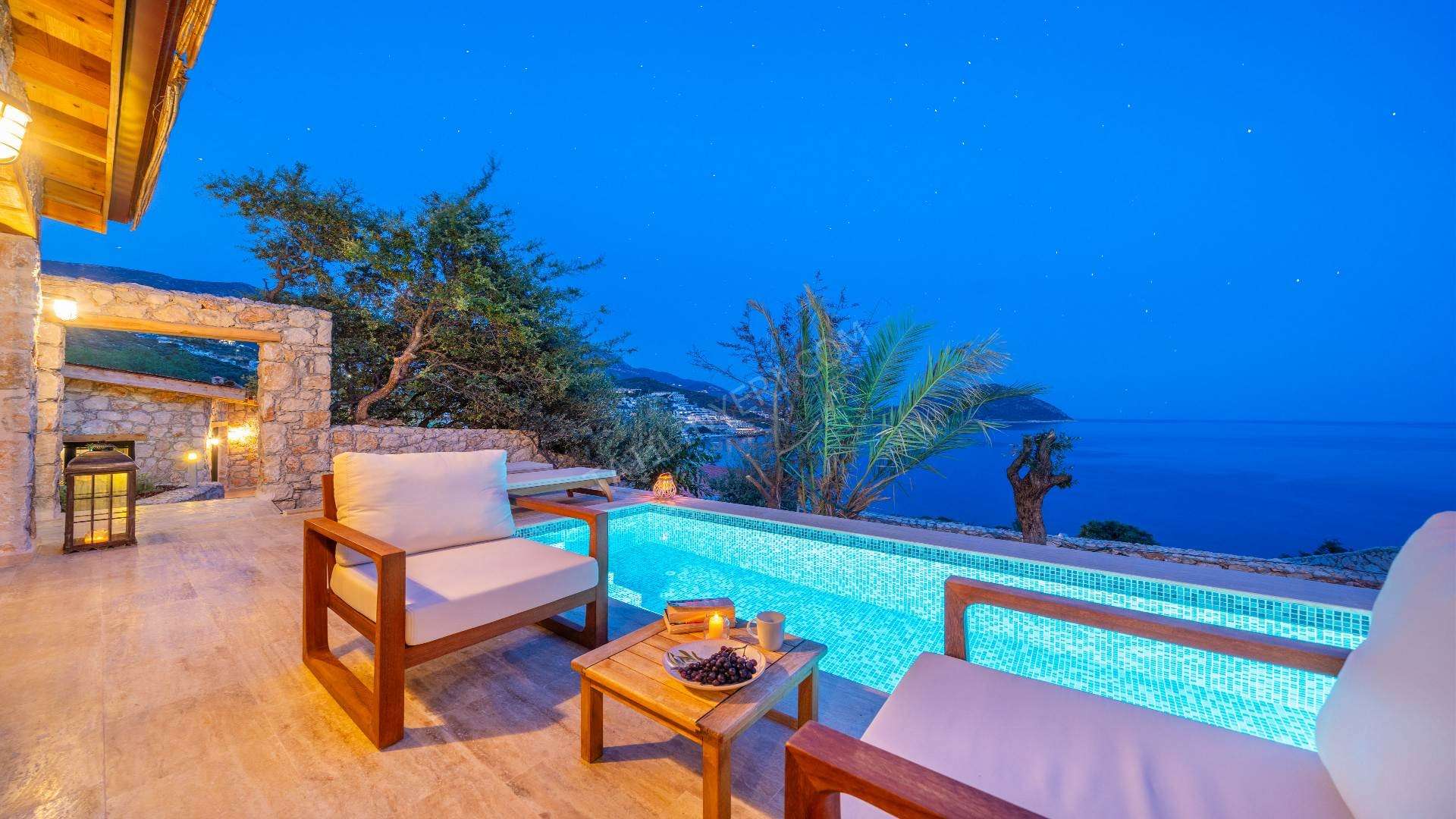 Villa Sea Edge 5 Kalkan Kalamar bölgesinde tek yatak odalı iki kişilik özel yüzme havuzlu kiralık villamız taş ve ahşap mimariye sahip 2023 yılında hizmete açılan yeni villamızdır. Villamız muhteşem deniz manzarasına sahip olup modern lüks mobilyalarla dizayn edilmiş balayı çiftleri için ideal bir seçenktir.
