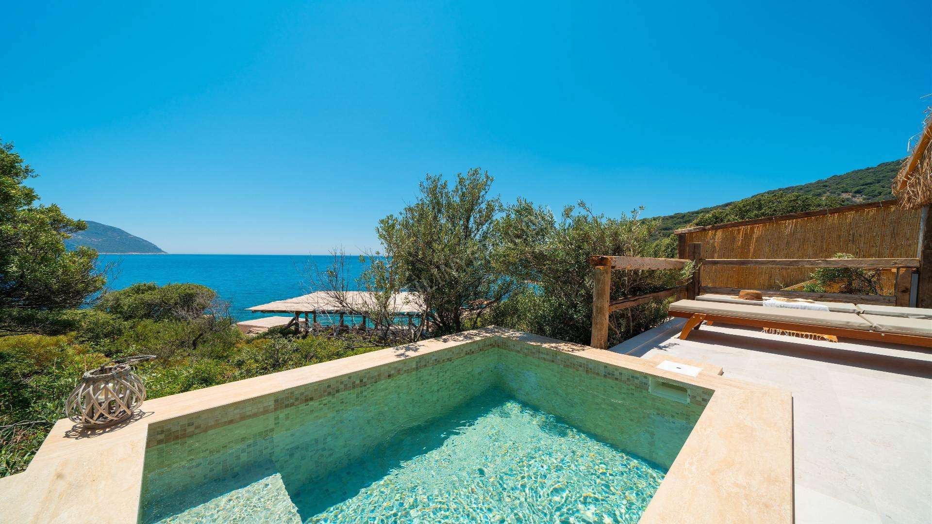 Villa Sea Edge 6, Kalkan Kalamar bölgesinde tek yatak odalı iki kişilik özel yüzme havuzlu kiralık villamız taş ve ahşap mimariye sahip 2023 yılında hizmete açılan yeni villamızdır. Villamız muhteşem deniz manzarasına sahip olup modern lüks mobilyalarla dizayn edilmiş balayı çiftleri için ideal bir seçenktir.