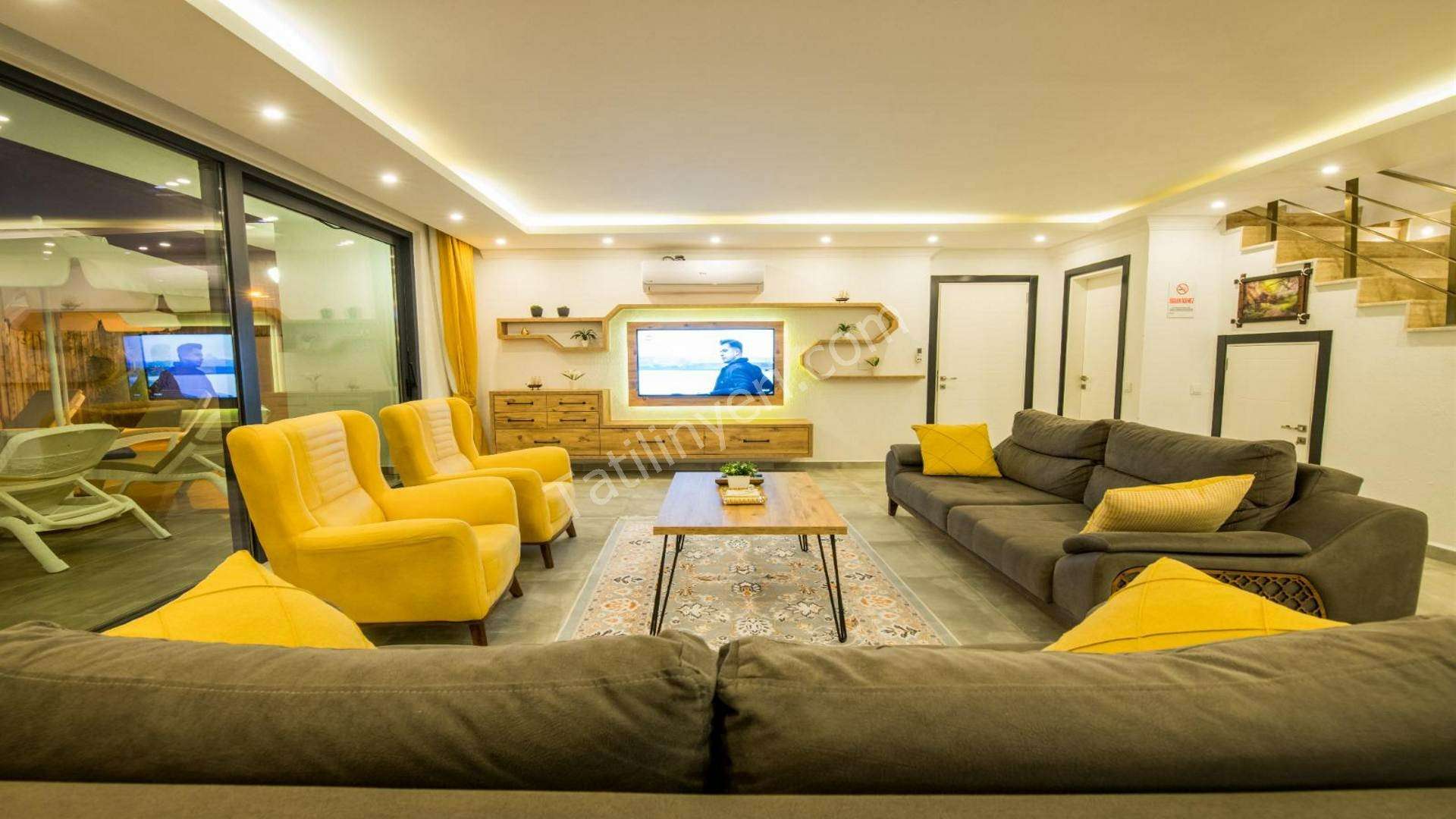 Villa Seydam Kalkan Üzümlü Köyünde bulunan, 6 kişi konaklama kapasitesine sahip, jakuzi, sauna, bahçe alanı  ile tatilinizin konforlu geçmesi için tüm detayların düşünüldüğü modern tatil villamızdır.