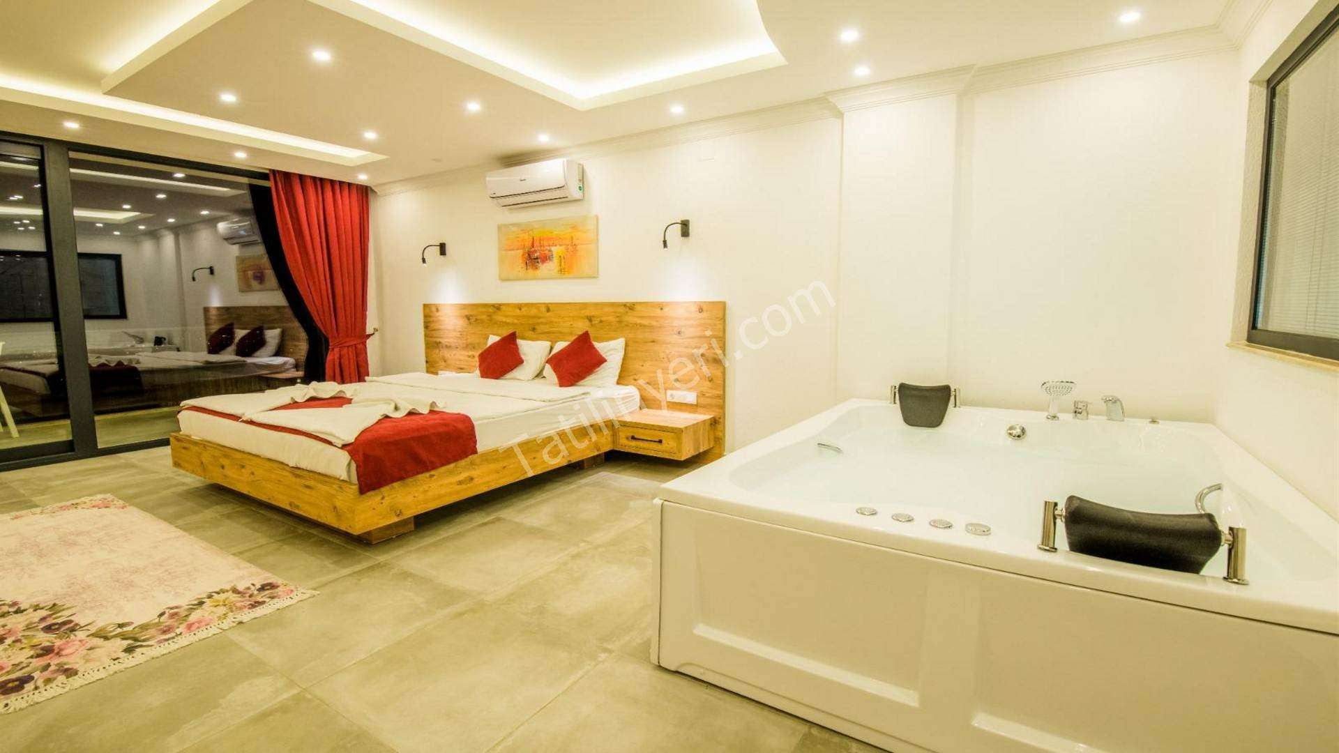1. Yatak Odası: Çift kişilik yatak, klima, elbise dolabı, televizyon, makyaj masası, komodin, jakuzi, ebeveyn banyosu bulunmaktadır.