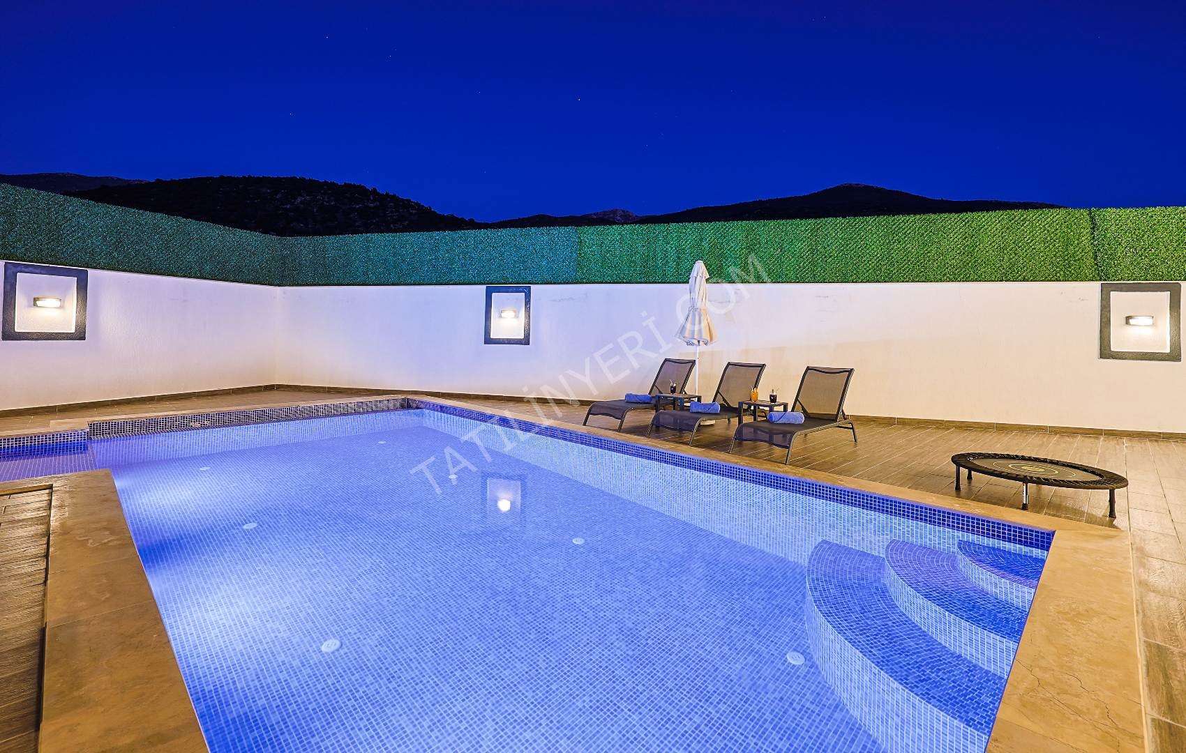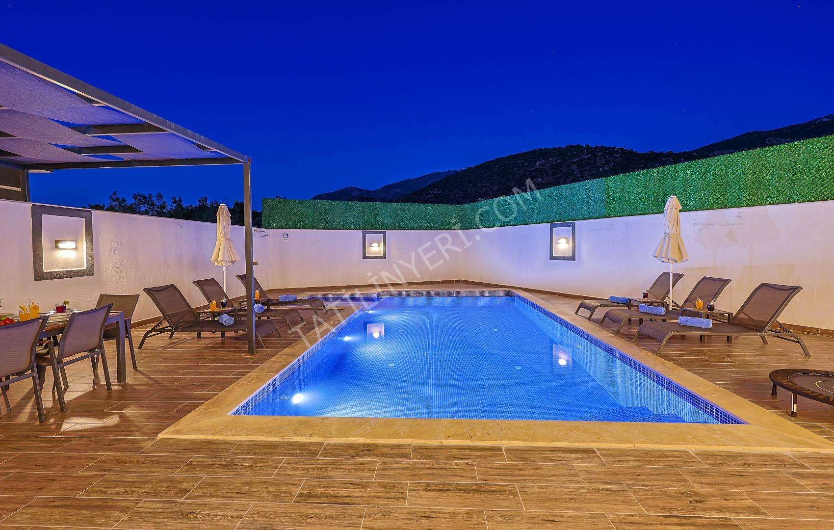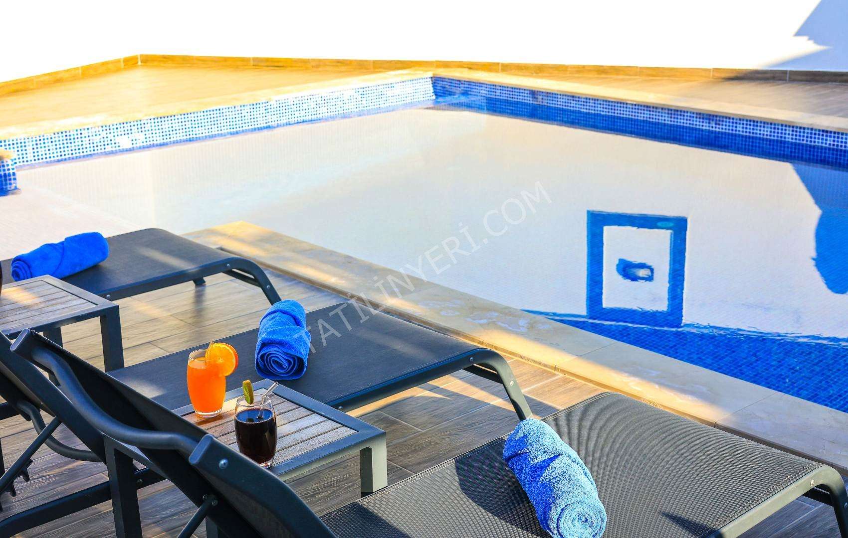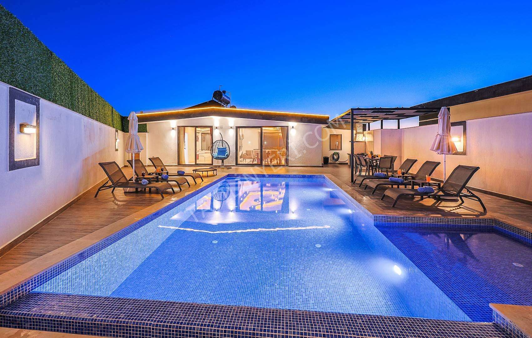 Mahremiyete önem veren misafirlerimiz için villanın özel havuzu korunaklı yapıdadır ve havuz terası dışarıdan görünmez şekilde tasarlanmıştır. Ayrıca manzaralı alanda konumlanan 2 kişilik jakuzi ile konforlu bir tatil deneyimi sunar.