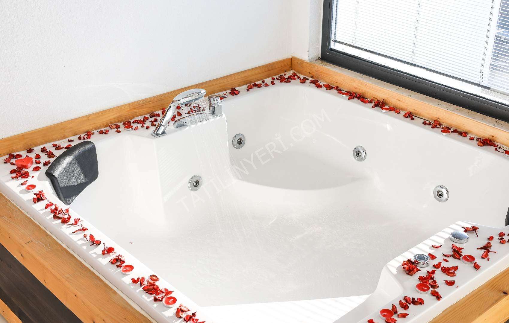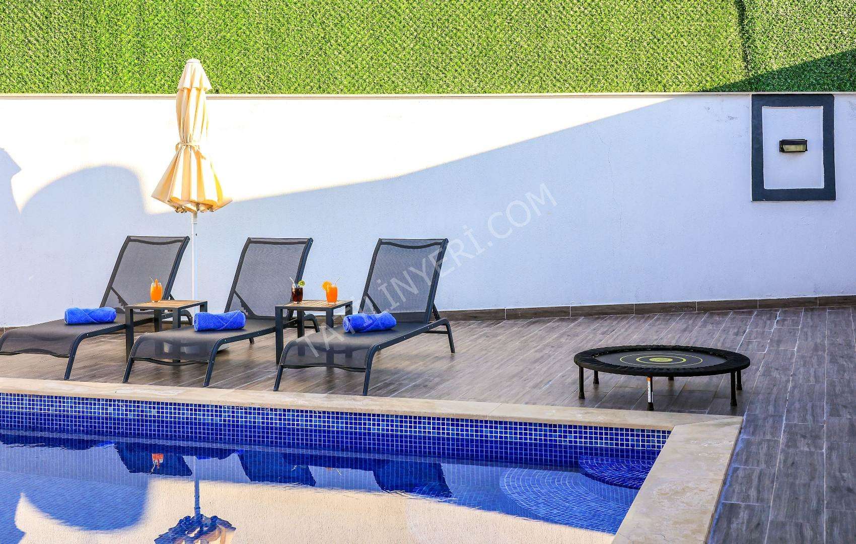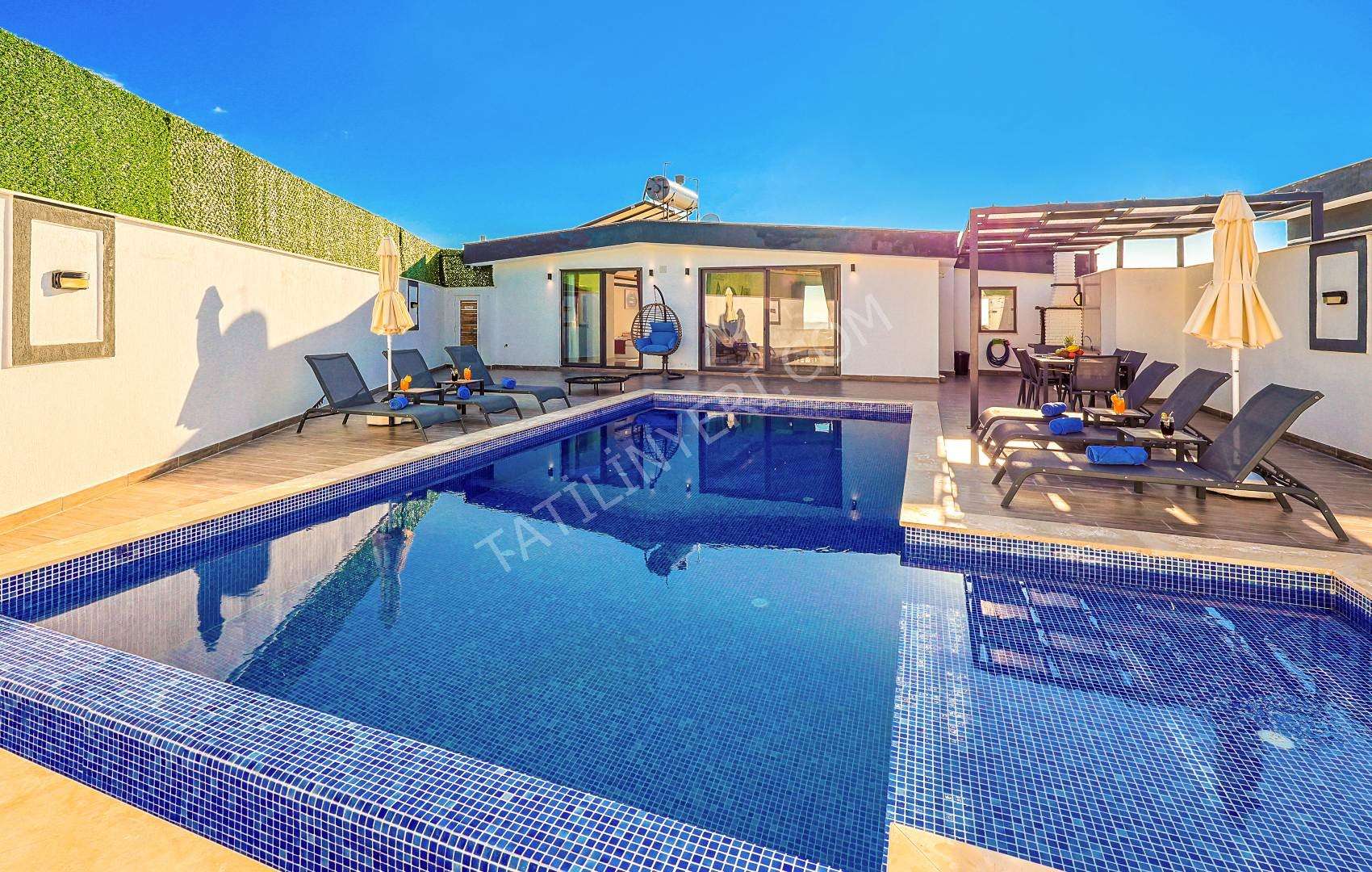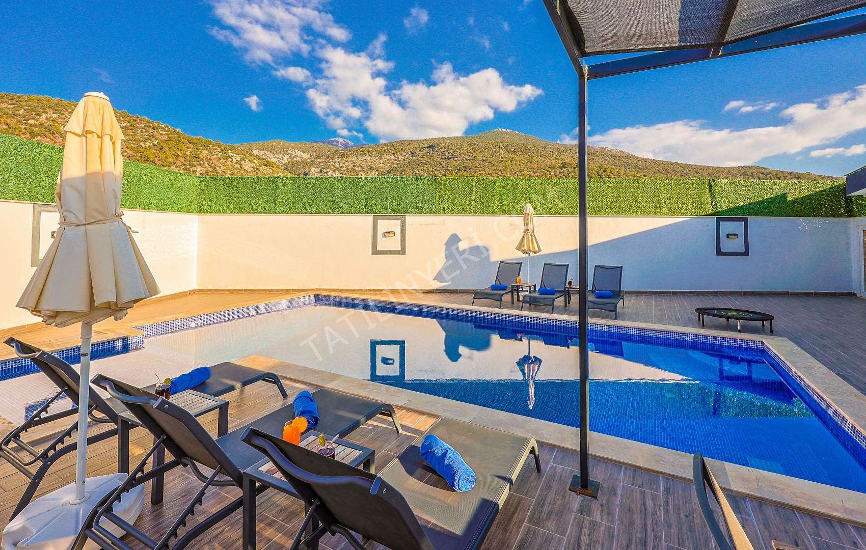 Mahremiyete önem veren misafirlerimiz için villanın özel havuzu korunaklı yapıdadır ve havuz terası dışarıdan görünmez şekilde tasarlanmıştır. Ayrıca manzaralı alanda konumlanan 2 kişilik jakuzi ile konforlu bir tatil deneyimi sunar.