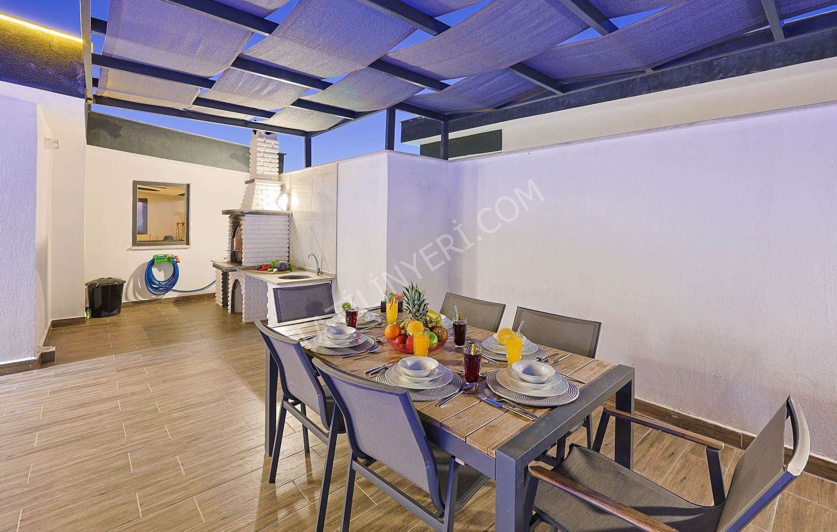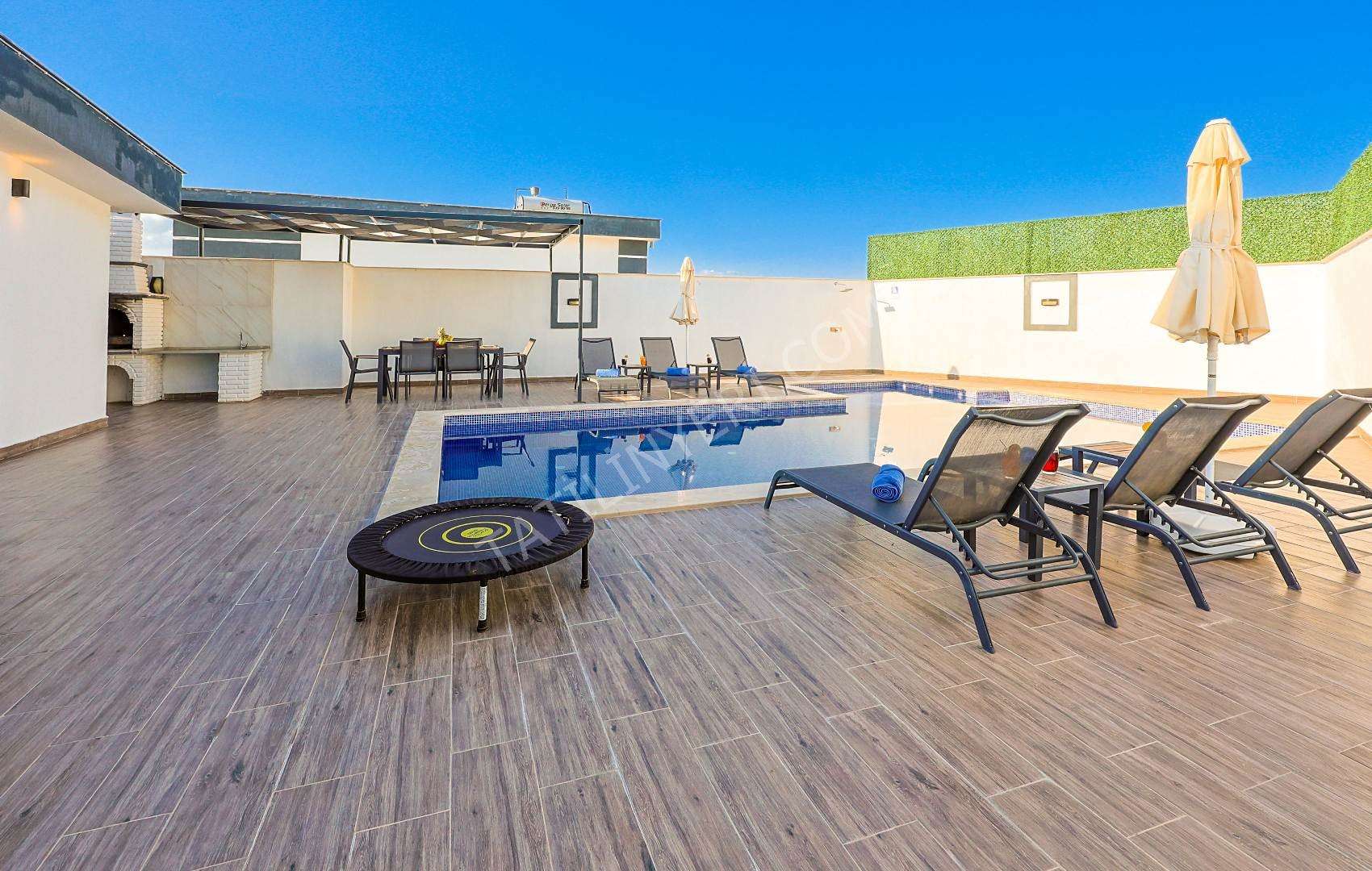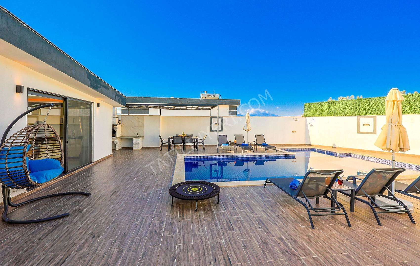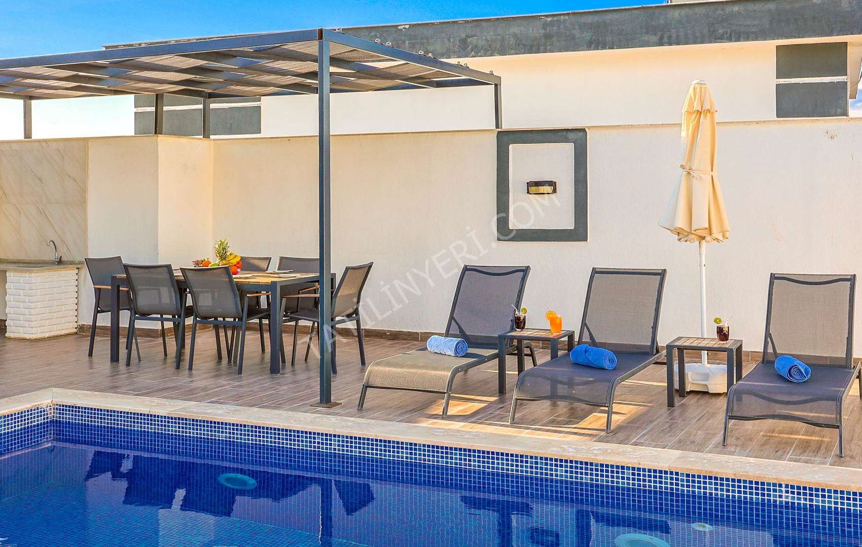 Mahremiyete önem veren misafirlerimiz için villanın özel havuzu korunaklı yapıdadır ve havuz terası dışarıdan görünmez şekilde tasarlanmıştır. Ayrıca manzaralı alanda konumlanan 2 kişilik jakuzi ile konforlu bir tatil deneyimi sunar.