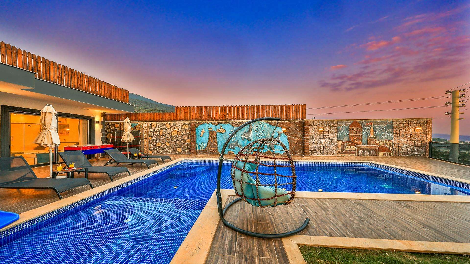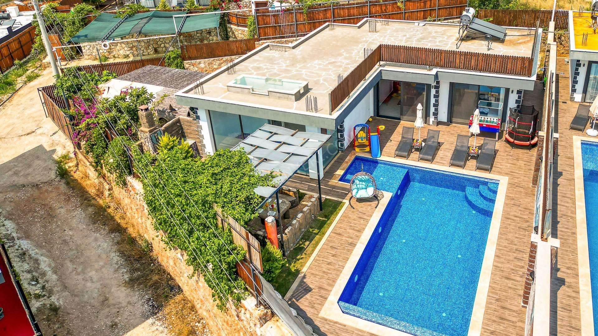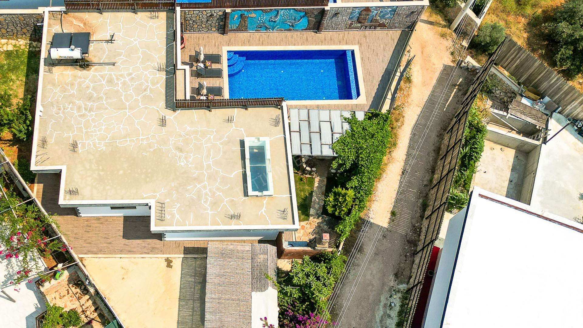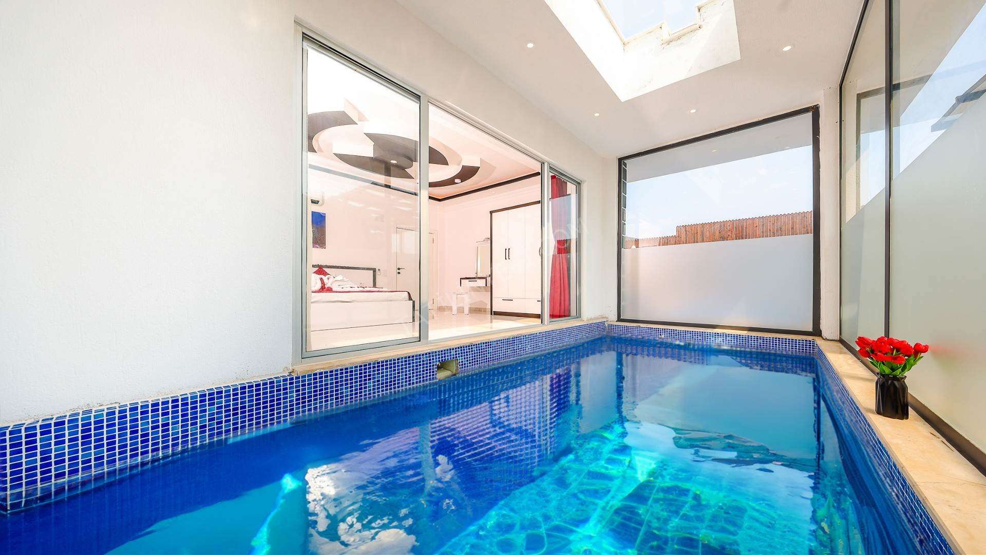 Korunaklı havuz alanına sahip olan villanın, havuz terasında kapasiteye uygun şezlong takımı, oturma grubu ve barbekü alanı bulunan villanın; yine havuz terasına açılan konforlu oturma odası ve tam donanımlı açık mutfağı; birinci yatak odasında çift kişilik yatak, ebeveyn banyosu; ikinci yatak odasında ise iki tek kişilik yatak ve ebeveyn banyosu bulunmaktadır. Ayrıca kapalı ısıtmalı havuzu bulunan villa, dört mevsim tatil planlarınıza ev sahipliği yapmaya adaydır.