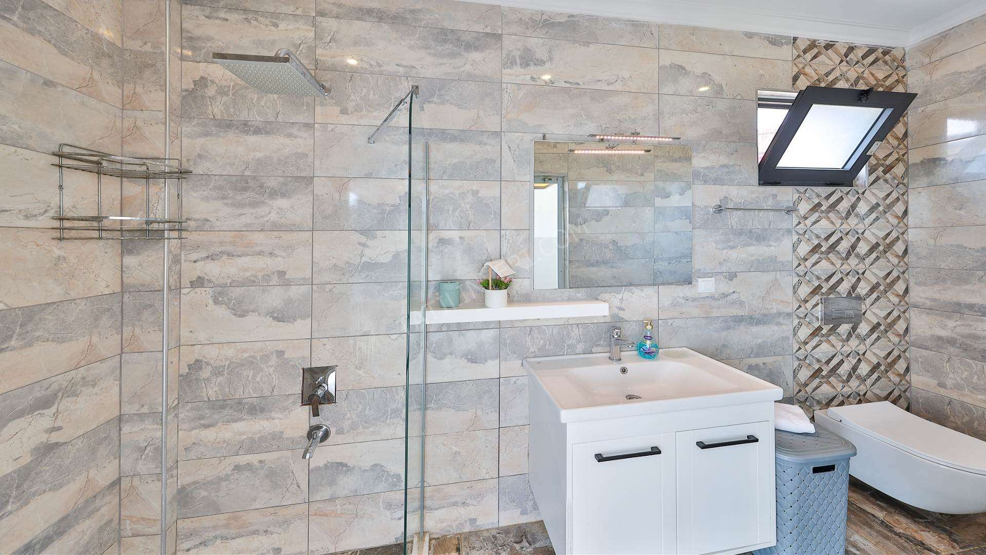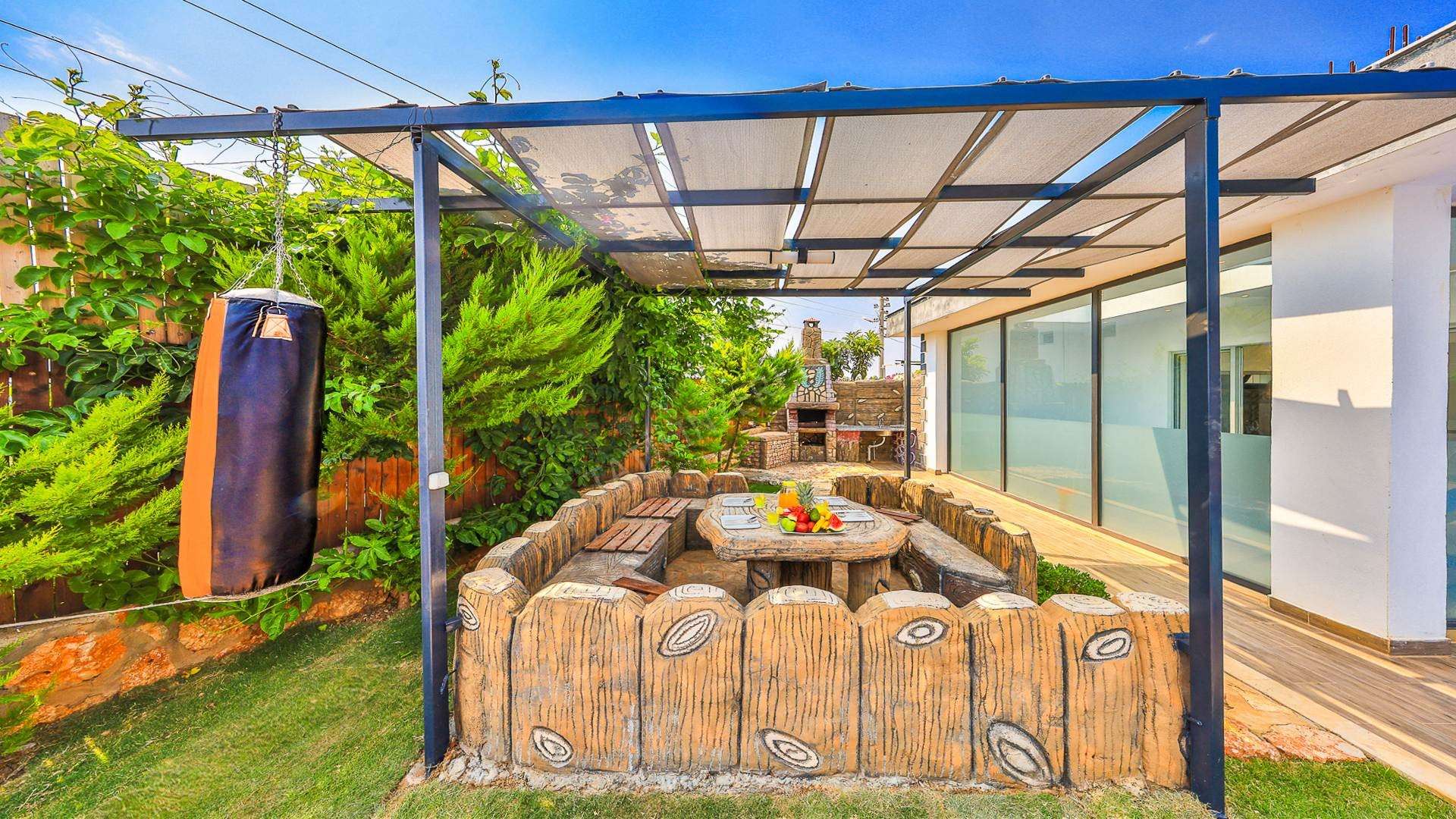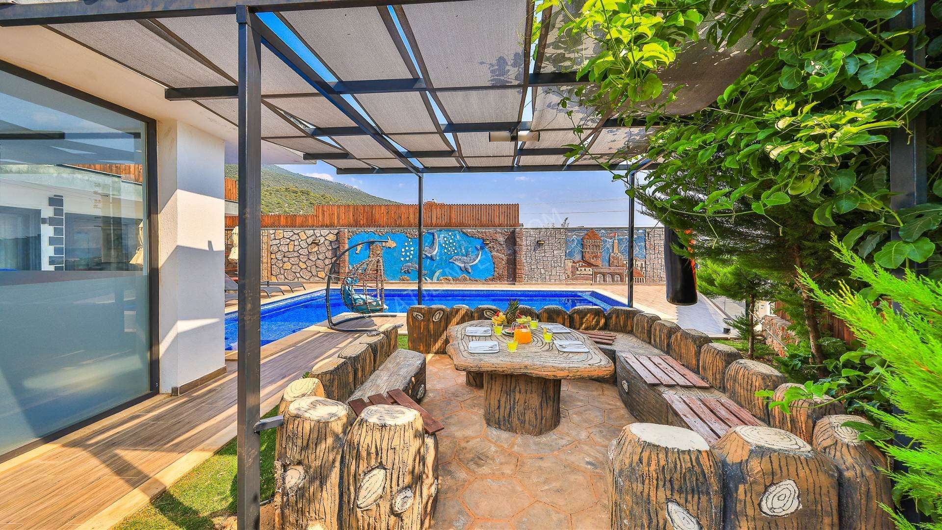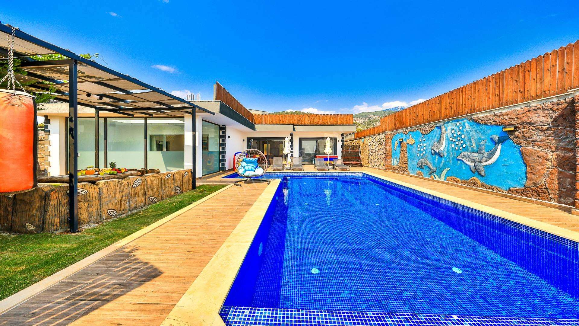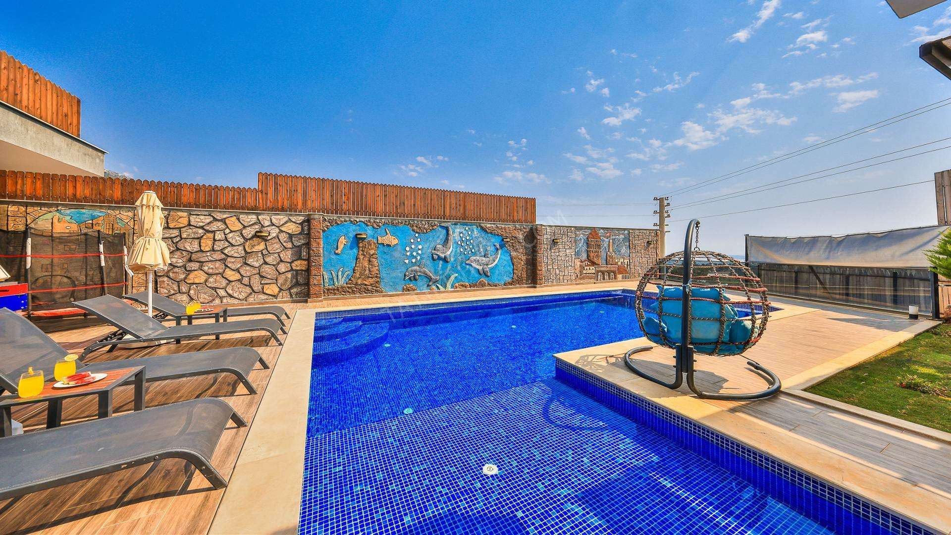 Korunaklı havuz alanına sahip olan villanın, havuz terasında kapasiteye uygun şezlong takımı, oturma grubu ve barbekü alanı bulunan villanın; yine havuz terasına açılan konforlu oturma odası ve tam donanımlı açık mutfağı; birinci yatak odasında çift kişilik yatak, ebeveyn banyosu; ikinci yatak odasında ise iki tek kişilik yatak ve ebeveyn banyosu bulunmaktadır. Ayrıca kapalı ısıtmalı havuzu bulunan villa, dört mevsim tatil planlarınıza ev sahipliği yapmaya adaydır.