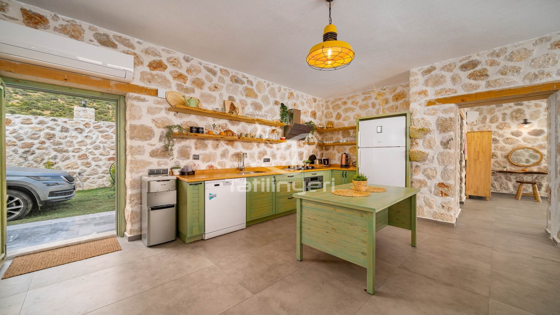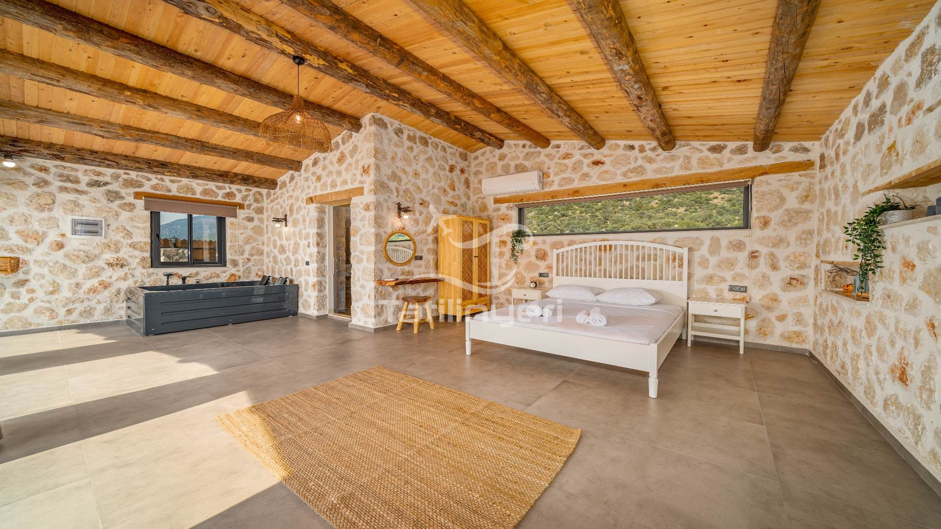 Villa White Stone 2, yoğun yollardan geri çekilmek ve kırsal bir ortam arayan çiftler ve aileler için uygun bir yer olan Çavdır adlı bir köyde yer almaktadır. Villa kırlara karşı güzel bir manzaraya sahiptir, ancak bu villa bilerek tenha bir villa olarak yapılmıştır. Akşamın geç saatlerinde güneşin doğuşunu ve gün batımını izlemenin keyfini çıkarabilirsiniz.